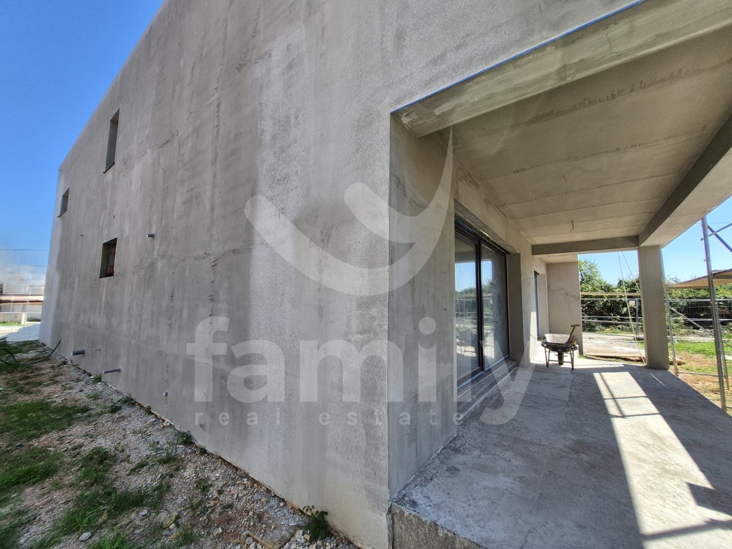 A house under construction with a total living area of 243 m2 is for sale in Šišan. It is located on a plot of land of 506 m2 as a detached building consisting of the ground floor and the first floor. It is of modern construction, top quality materials and PVC windows were used in the construction. The ground floor is open, where there is a kitchen with a dining room and a living room with access to the terrace and pool, two bedrooms and a bathroom.