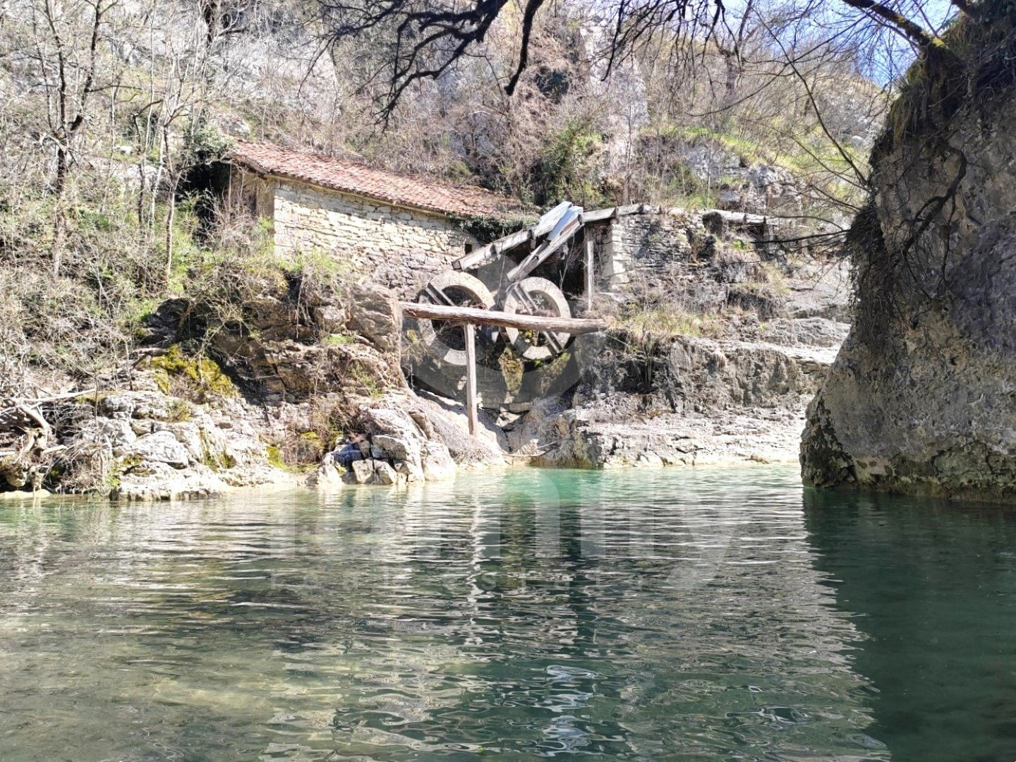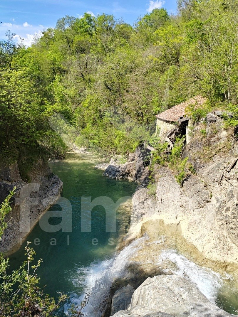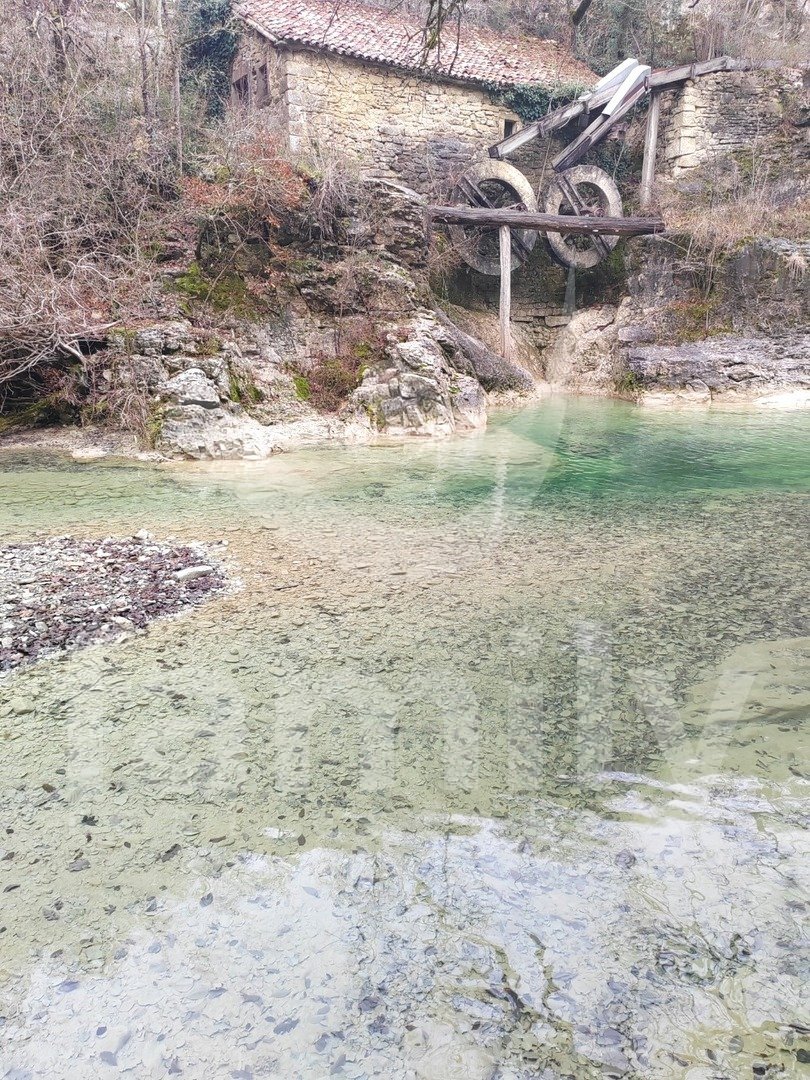 Right in the immediate vicinity of the city of Buzet, in a small settlement along the Mirna River called Kotli, there is a rare example of an old mill over 400 years old, namely an economic building with an area of 51 m2 and a spacious land area of 3087 m2. The property consists of one large room with very high ceilings and a smaller part of the space in the basement. The building is managed as an economic building and has great potential for future owners in terms of investment in it in a way that it can be used for business in various purposes and certainly attract great interest from visitors with its rich historical significance. In addition to the attractive property, the subject of our sale is a large plot of land with an area of 3087 m2, which allows us maximum privacy, and only has pedestrian access to a high water level that is very suitable for swimming and enjoying the combination with natural beauties. Energy sources are nearby, water at the entrance, and electricity about thirty meters from the entrance to the land.