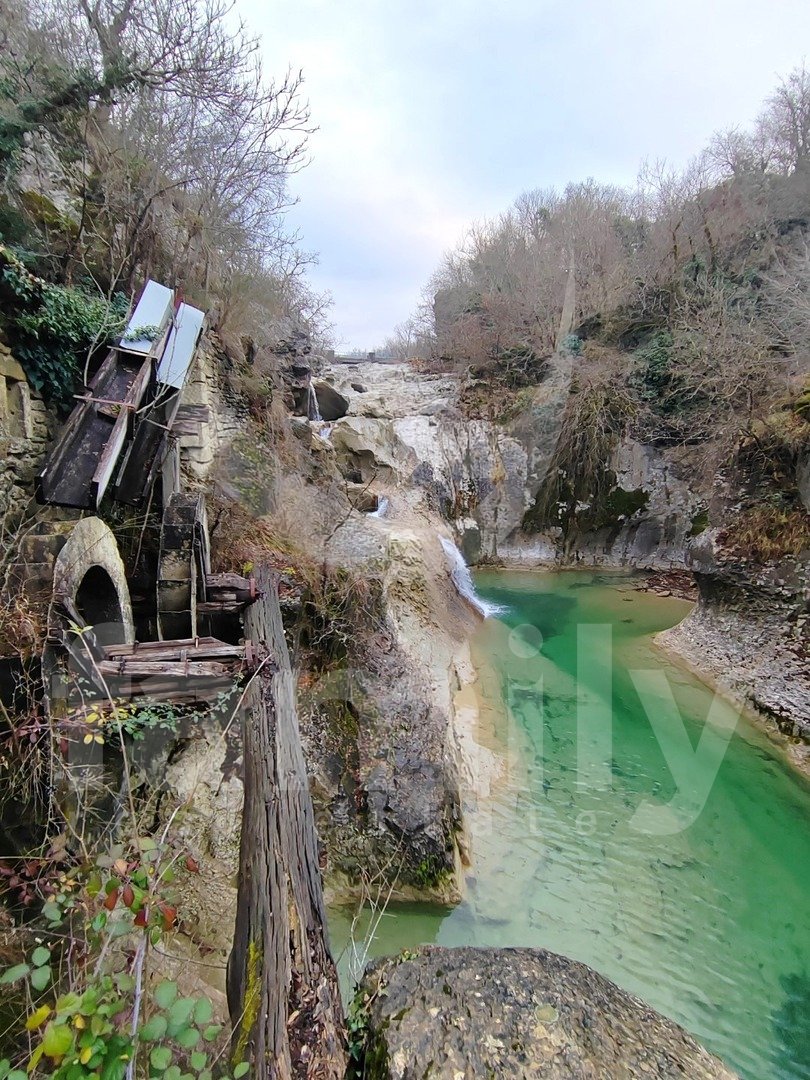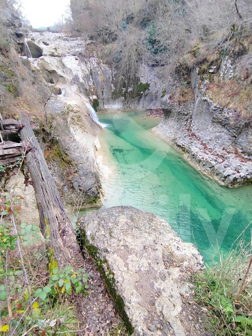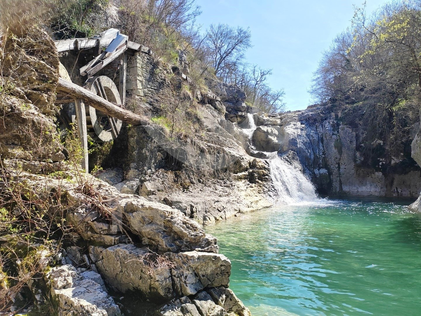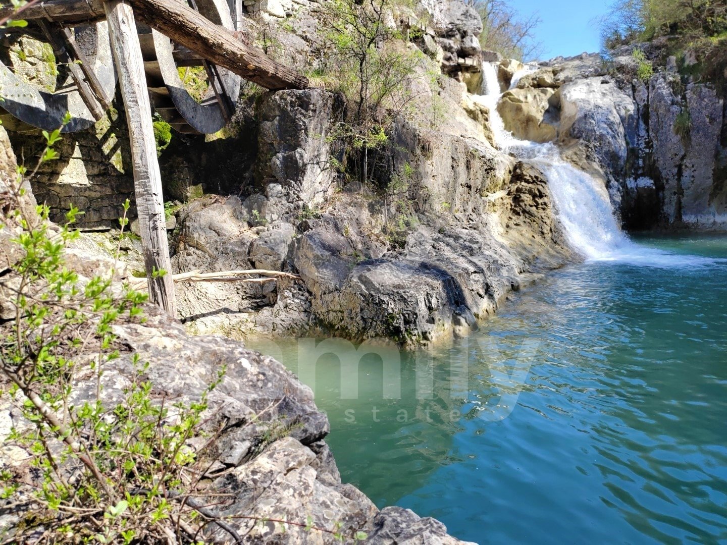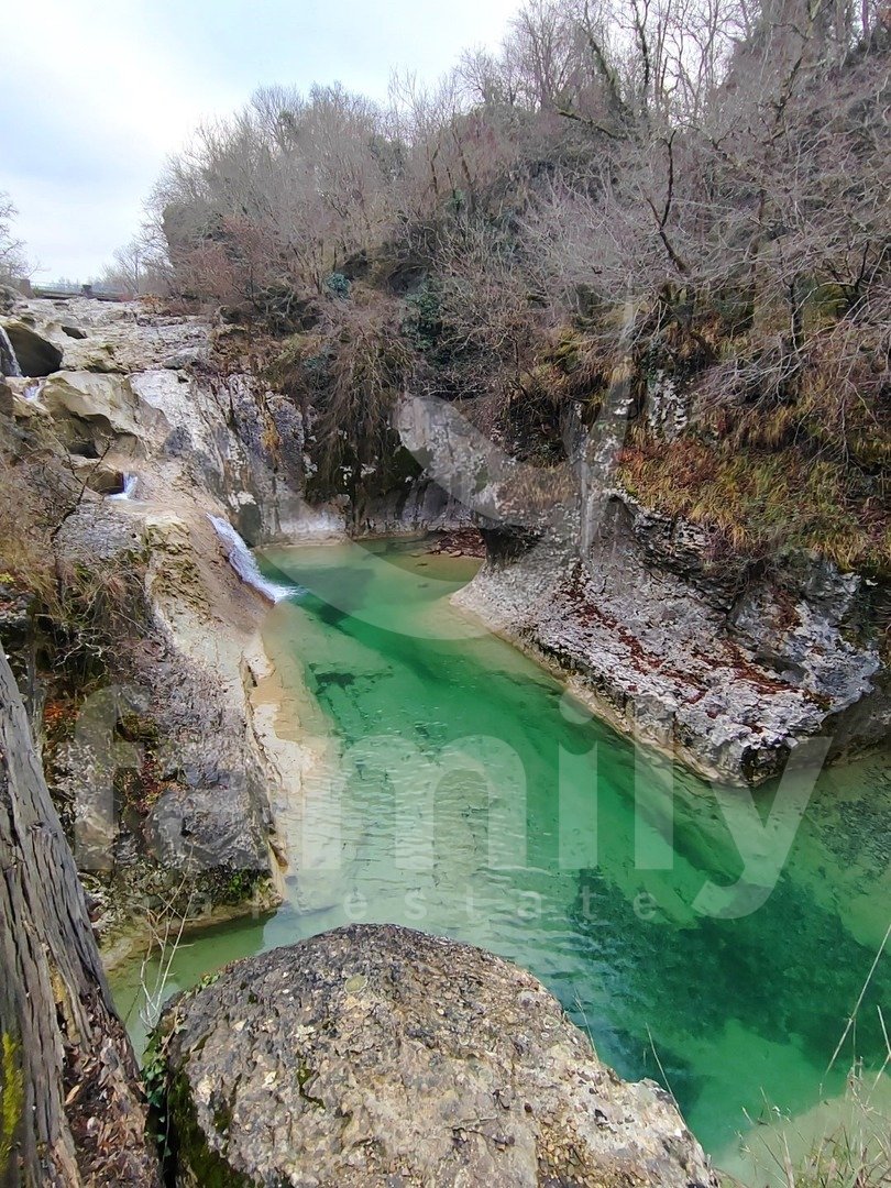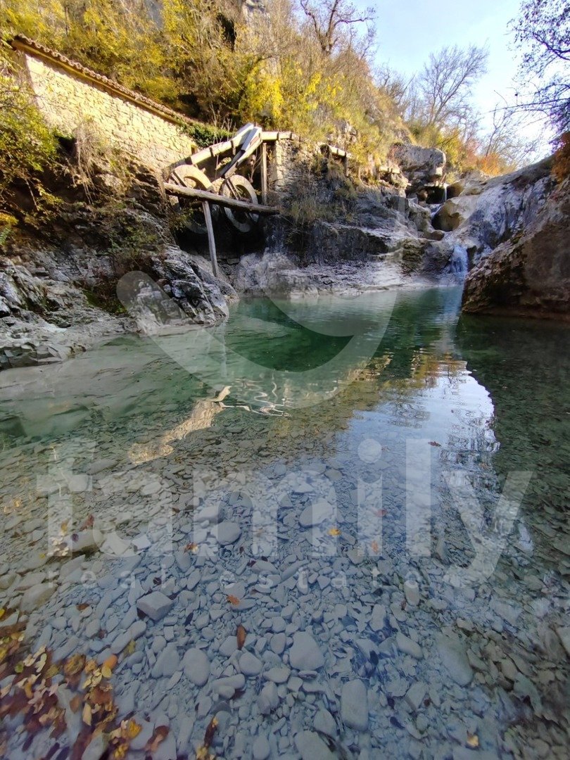 Right in the immediate vicinity of the city of Buzet, in a small settlement along the Mirna River called Kotli, there is a rare example of an old mill over 400 years old, namely an economic building with an area of 51 m2 with a spacious land area of 3087 m2. The property consists of one large room with very high ceilings and a smaller part of the space in the basement. The special feature is about 150 meters of its own shore and the fact that access to the waterfalls goes directly across the land, which gives it additional value because it is a very visited natural location. Another advantage is that the building was removed from the cultural heritage register in 2022, so future adaptations or reconstructions are much simpler. Although the land is agricultural, such locations in Istria are often used for tourist facilities such as agrotourism or smaller retreat projects. Additional value is provided by the fact that there is no registered easement of passage, which means that the owner in practice controls access to the waterfalls. Energy sources are nearby, water at the entrance, and electricity about thirty meters from the entrance to the land. It is very important to emphasize that the land itself borders the 7 waterfalls trail and is located in a very frequent location where tens of thousands of people from various countries pass by annually, practically offering real estate in a top destination in Istria, which increases its value and business potential.