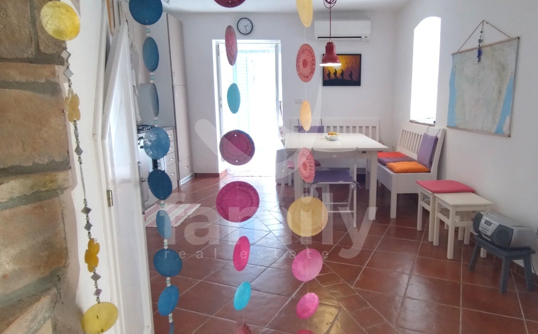 Pritličje sestavljajo hodnik, kuhinja z jedilnico z dostopom na dvorišče, stranišče in shramba s pralnim strojem. Iz pritličja vodijo notranje stopnice v prvo nadstropje, ki služi kot dnevna soba/soba za goste in kopalnica. V zadnjem nadstropju v mansardi se nahaja spalnica, ki je delno delovna soba, in stranišče. Hiša je preprosto in zadostno opremljena po konceptu, da ima vsako nadstropje svoj ločen namen. Vsaka podrobnost je bila skrbno izdelana z veliko ljubezni. Bodoči lastniki imajo veliko prostora za preureditev in prilagoditev svojim potrebam. Vsako nadstropje ima klimatsko napravo, PVC stavbno pohištvo, tla so prekrita s keramiko in parketom. Dvorišče je kamnito in ponuja veliko možnosti za okrasitev po vašem okusu. Na dvorišču se nahaja tudi prenovljen pomožni objekt velikosti 21 m2, ki ga sestavlja ena soba z galerijo.