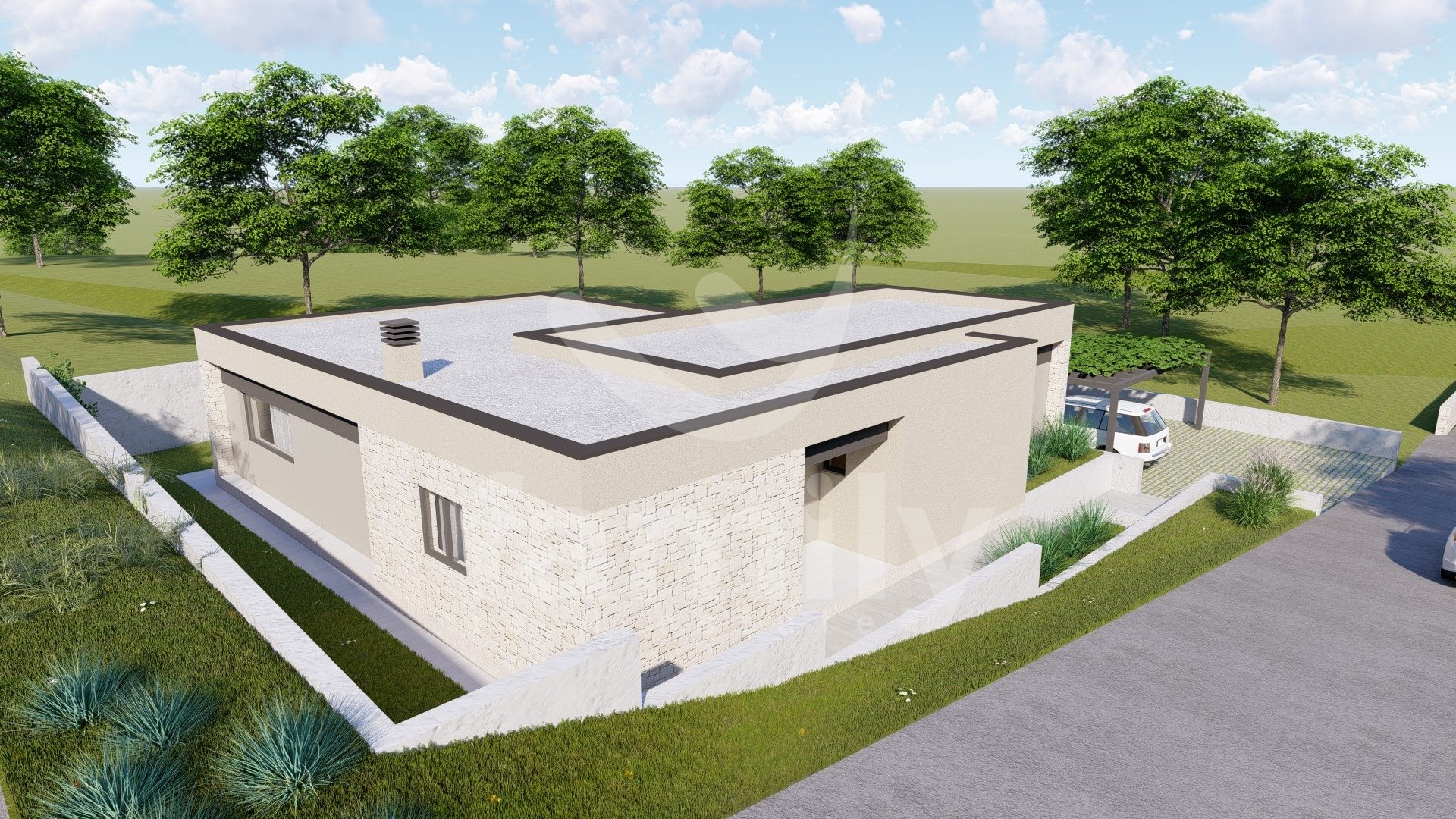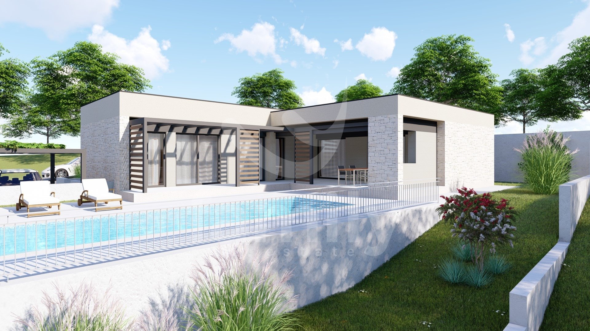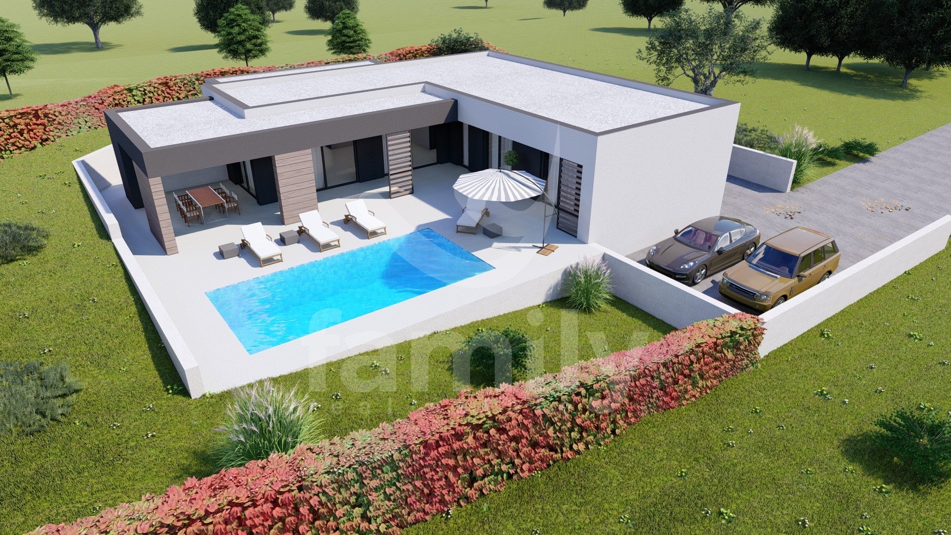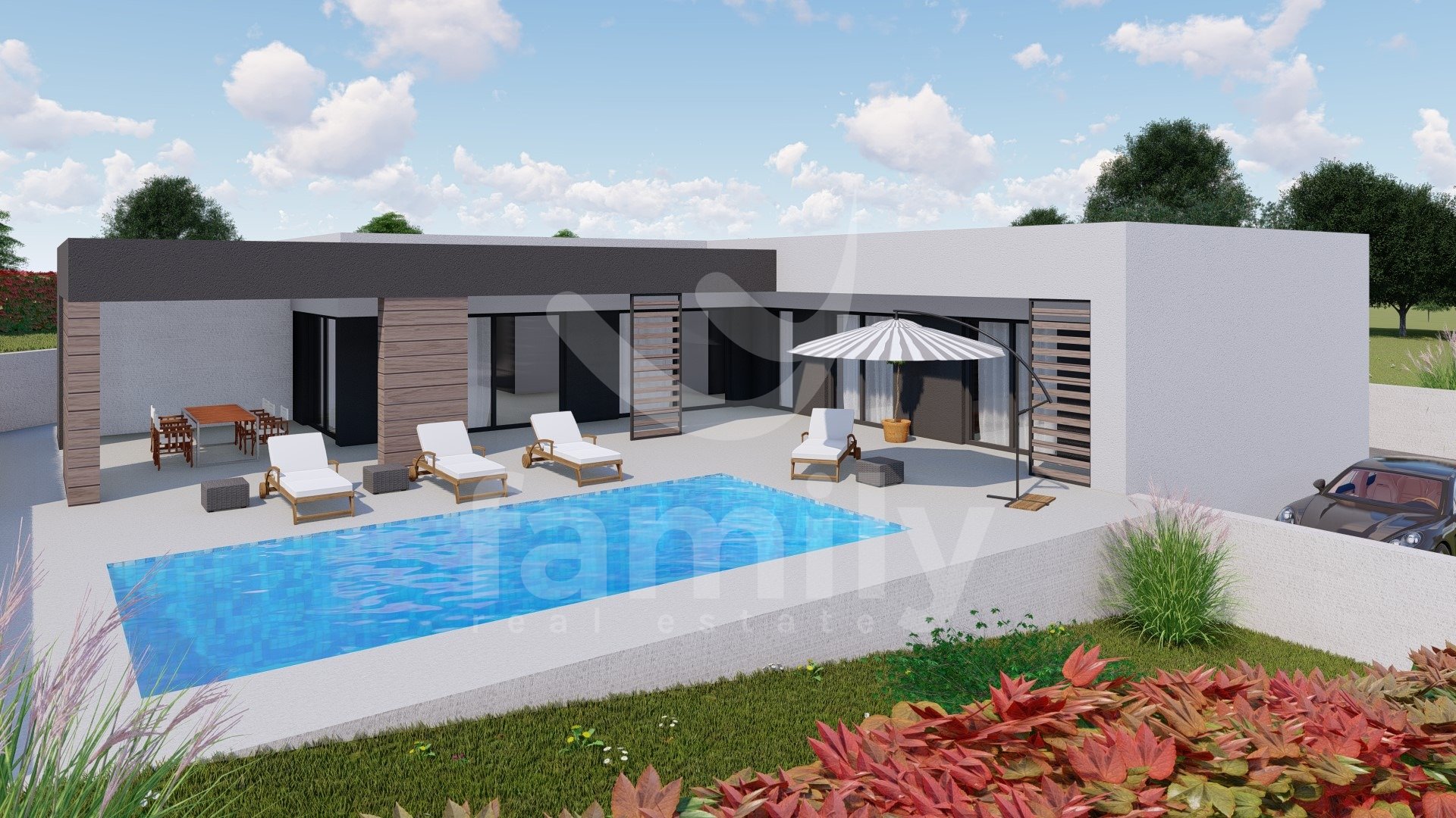 Zemljišče ima veljavno gradbeno dovoljenje za gradnjo družinske hiše z bazenom.