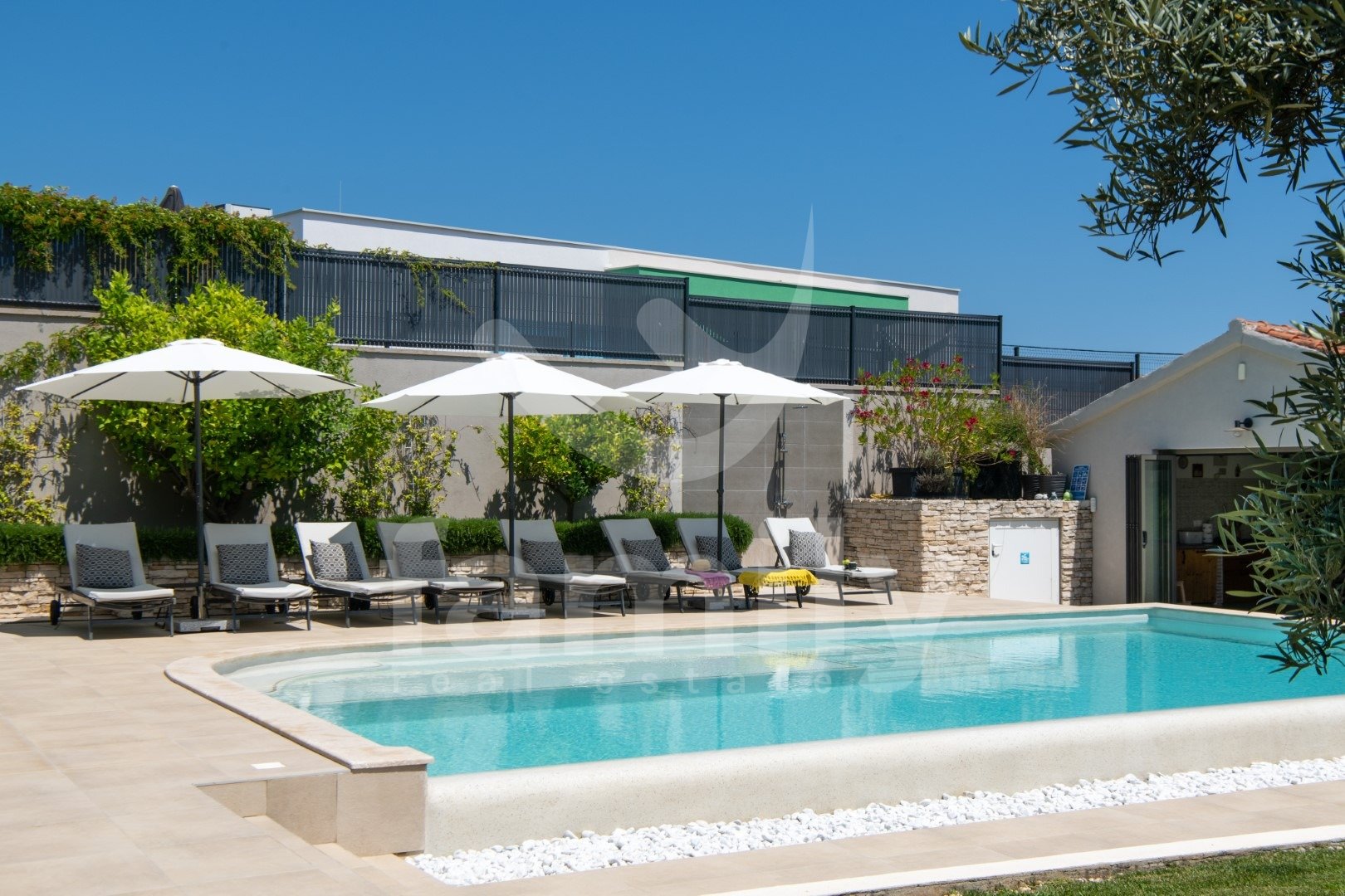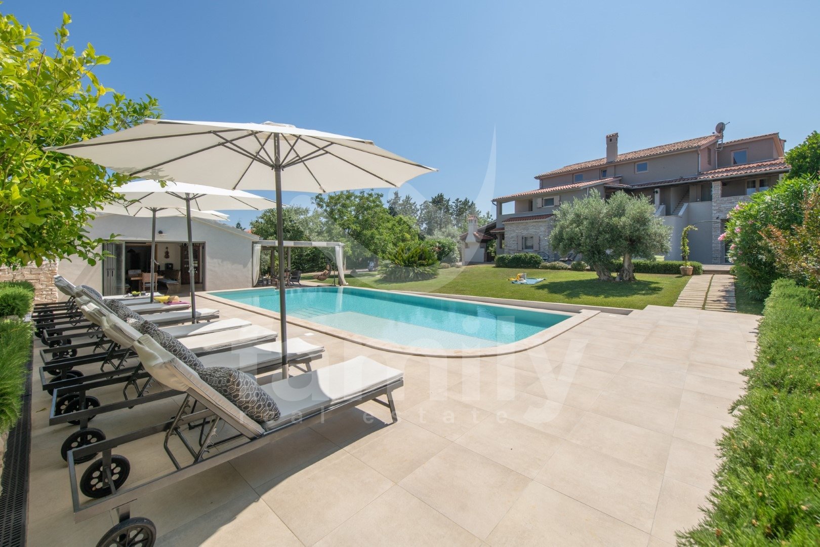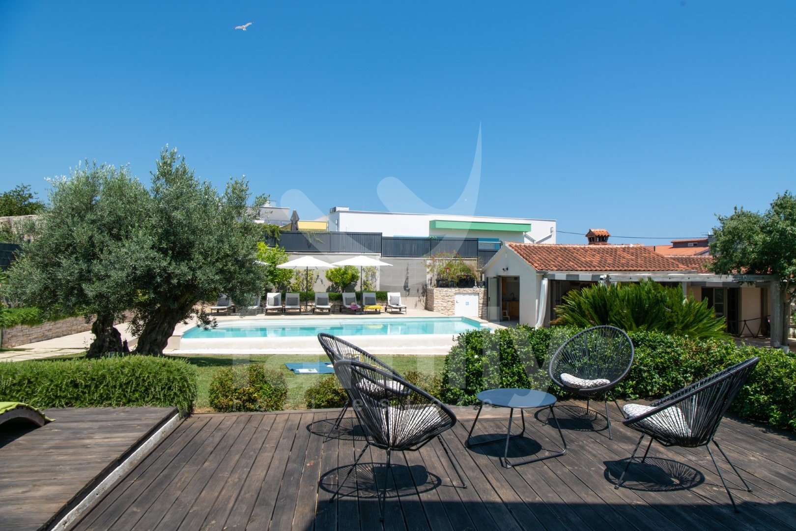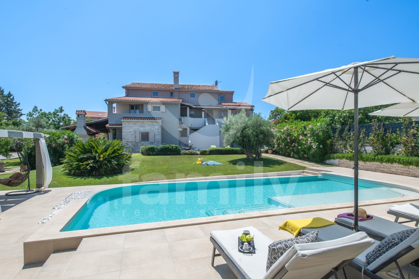 Diese komfortable Villa in Ližnjan mit 450 m² Wohnfläche in Meeresnähe bietet die perfekte Kombination aus Eleganz, Funktionalität und absoluter Privatsphäre. In ruhiger Lage auf einem 2368 m² großen Grundstück gelegen, bietet sie ideale Bedingungen zum Entspannen und Genießen das ganze Jahr über. Dank großer Glasflächen, die Innen- und Außenbereich miteinander verbinden, ist der großzügige Innenraum lichtdurchflutet. Die Villa verfügt über ein modern gestaltetes Erdgeschoss mit einem offenen Wohnbereich und Zugang zu einer überdachten Terrasse, einer voll ausgestatteten Küche mit Essbereich sowie zwei komfortablen Schlafzimmern und einem Badezimmer, die höchsten Wohnkomfort bieten. Jedes Zimmer wurde sorgfältig gestaltet, um ein großzügiges und behagliches Wohngefühl zu vermitteln.
