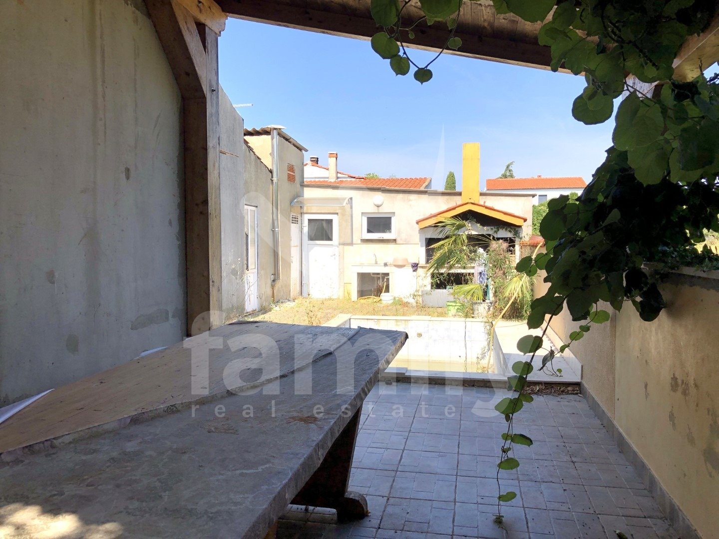 Upravo na području Grada Pule u mirnom okruženju se nalazi obiteljska kuća koja se proteže na dvije etaže, sveukupne površine od 158 m2 i dvorišta 218 m2. Prizemlje navedene nekretnine se sastoji od ulaznog predprostora, komfornog dnevnog boravka sa otvorenim kuhinjskim prostorom i blagovaonom, kao i dvije spavaće sobe te kupatilom. Na katu se nalazi galerija, tri spavaće sobe i toalet. U cijeloj kući je sprovedena izolacija za centralno grijanje putem lož ulja ili čvrstog ogrijva preko kamina, kao i postavljenim klima jedinicama. Na ulaznom prostoru su postavljene pločice, kao i u hodnicima i kupatilu, toaletu, dok su dnevni boravak i spavaće sobe obložene laminatom. Navedena nekretnina posjeduje PVC stolariju. Vanjski dio kuće se sastoji od tri prostorije koje su se koristile za vrcanje i skladištenje meda. Također posjeduje konobu, natkrivenu terasu, roštilj, bazen i tri parkirna mjesta.