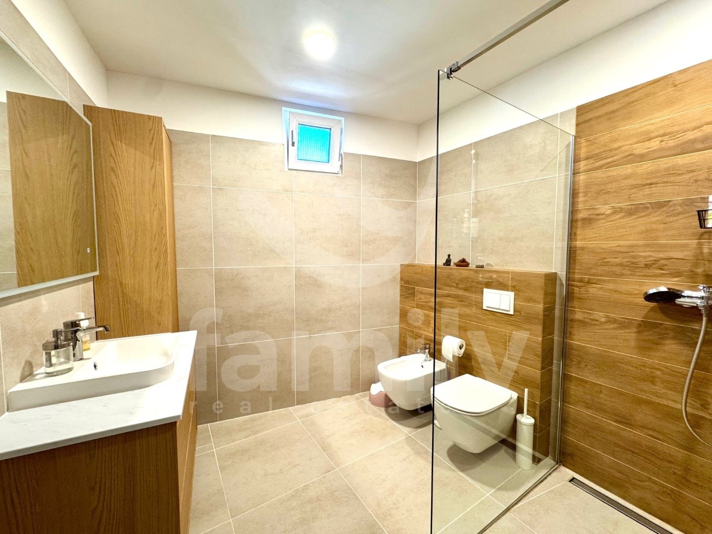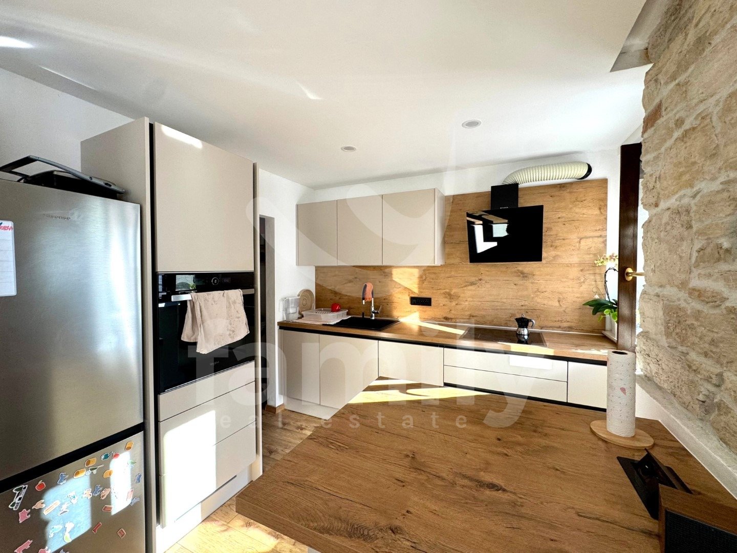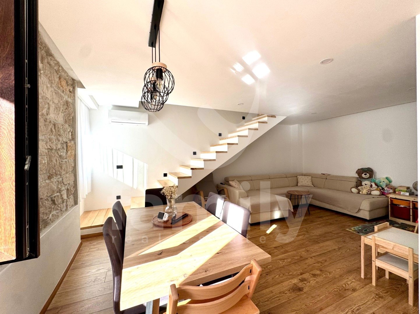 Upravo u jednom od najatraktivnijih dijelova grada Pule na Kaštanjeru, smješten je ovaj predivan renovirani dvoetažni stan površine 115 m2 smješten u prizemlju stambene zgrade. Prizemna etaža stana se sastoji od ulaznog prostora, kupatila, osvijetljenog dnevnog boravka, kuhinje rađene po mjeri, blagavaonice, ostave kao i vešeraja. Betoniranim stepeništem koje je obloženo drvenim gazištem se prilazi drugoj etaži navedenog stana gdje su smještene tri komforne spavaće sobe, jedna soba koja trenutno služi kao teretana s tim da postoji mogućnost prenamjene u četvrtu spavaću sobu kao i kupatilo koje je opremljeno ugradbenim vodokotlićem i bideom. Stolarija stana je PVC sa ugrađenim komarnicima i roletama dok je sustav grijanja i hlađenja reguliran putem dvije jedinice klima uređaja. Također je postavljeno podno grijanje u svakoj sobi sa zasebnim termostatom. Podovi u navedenoj nerkretnini su obloženi kvalitetnim laminatom i keramikom. Velika prednost ove nekretnine su i popratni sadržaji od pošte, banke, škole, vrtića, parka, igrališta, tržnice, plaže, gradskog bazena, trgovačkog centra, šetnice itd.