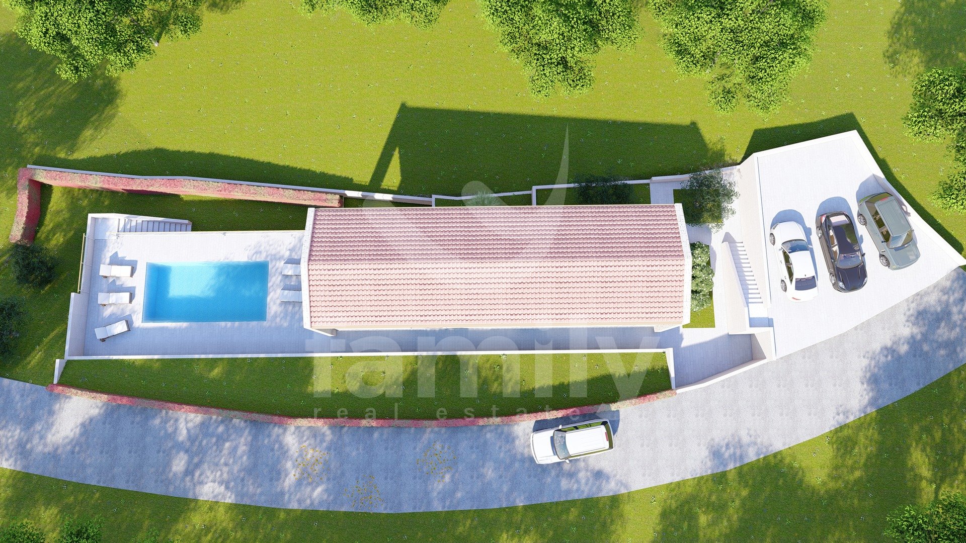Zemljište ima pravovaljnu građevinsku dozvolu za izgradnju obiteljske kuće sa bazenom.