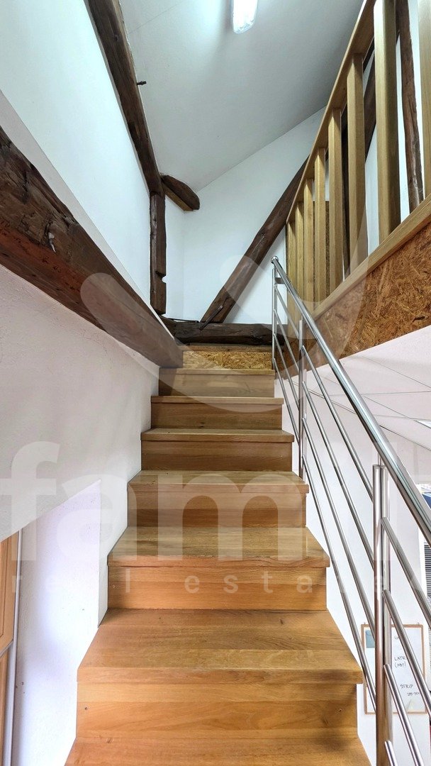 Lo spazio è suddiviso in due piani. Al piano terra si trova un open space più ampio con servizi igienici. Gli infissi sono in alluminio-legno e vetro a tre strati. I pavimenti sono rivestiti in pietra di alta qualità. Al primo piano si trovano due locali che possono essere utilizzati come deposito, ufficio o per qualsiasi altro scopo.