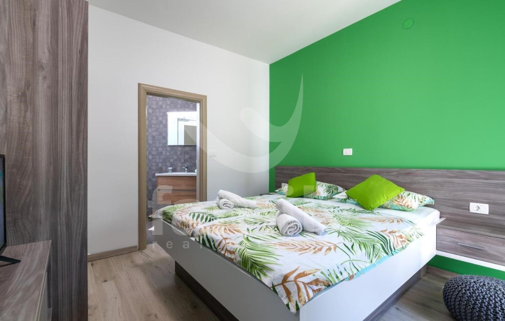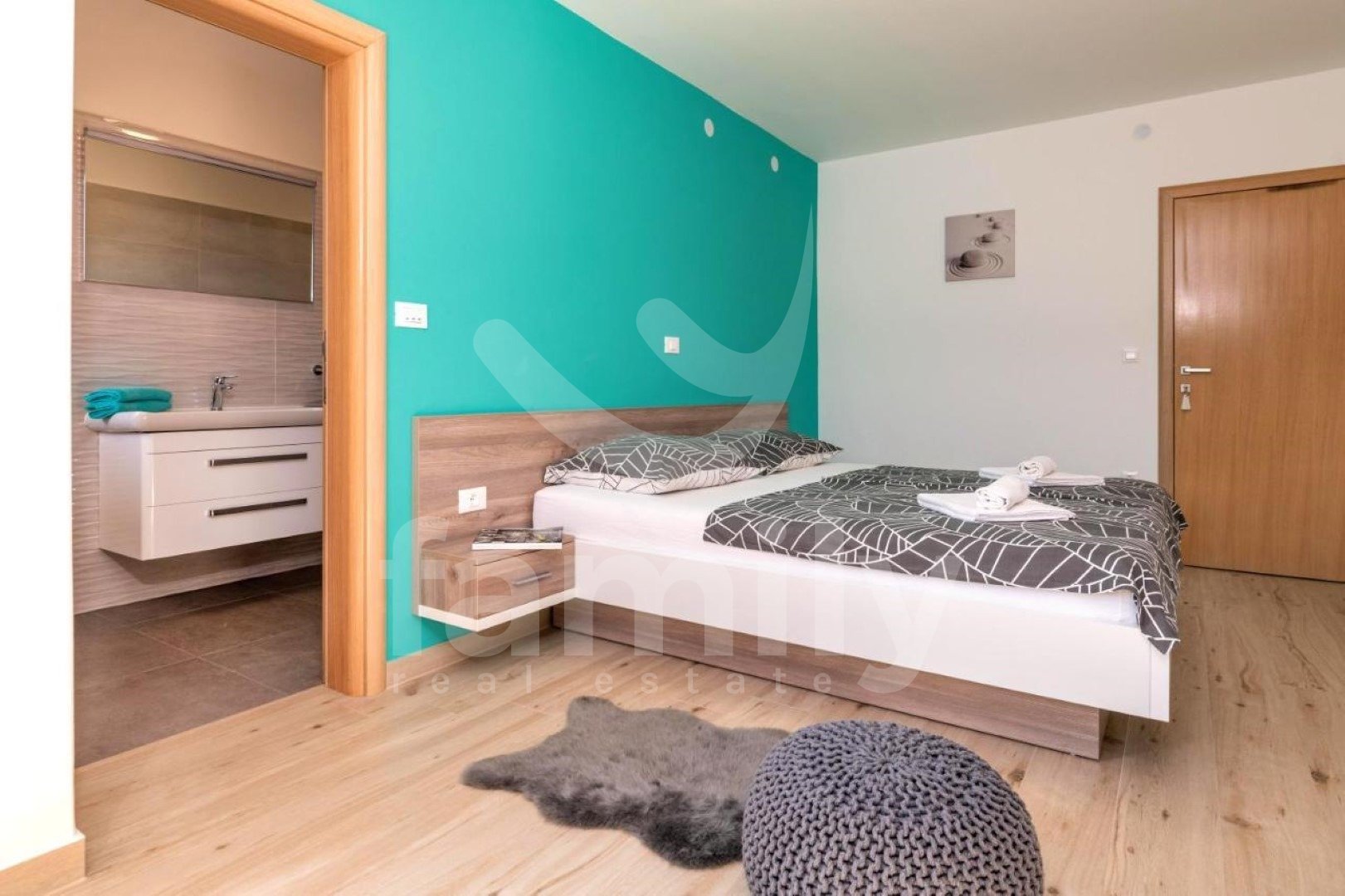 Al primo piano si trovano in totale cinque camere da letto matrimoniali, ognuna con TV, bagno privato e terrazza con una splendida vista. Inoltre, c'è una taverna con cucina e una terrazza con un grande tavolo.
