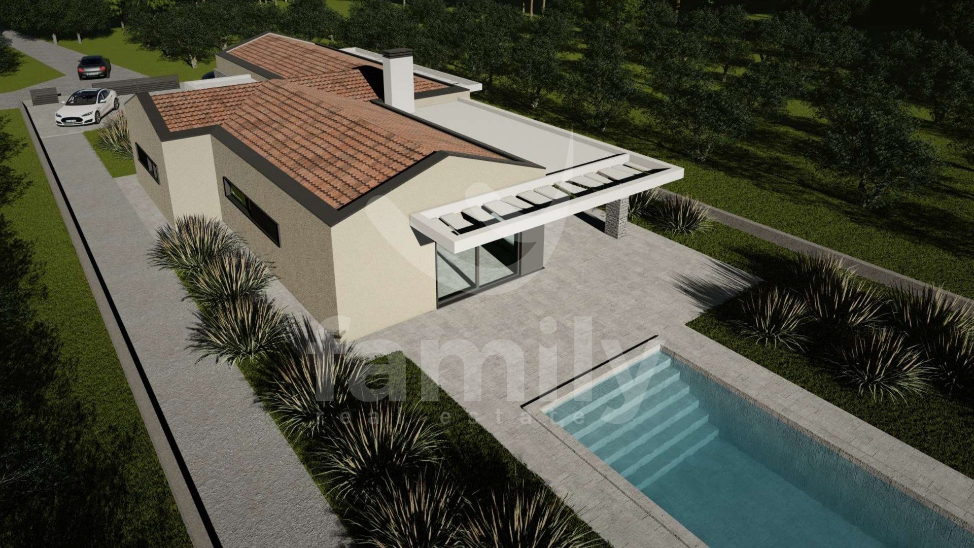 Non lontano da Rakalj e Marčana, in un tranquillo villaggio, si trova questo spazioso terreno edificabile di 2841 m². Il terreno ha una forma regolare e dista solo 80 metri dalla strada principale asfaltata. È stato ottenuto un permesso di costruire per la costruzione di una casa residenziale indipendente a un piano con piscina e una superficie lorda di 228 m². Il vantaggio di questa proprietà è un permesso di costruzione valido con utenze regolarmente pagate e impianti predisposti per l'allacciamento a tutte le infrastrutture. Poiché il terreno edificabile è spazioso, il futuro proprietario ha la possibilità di utilizzare l'intera area e costruire diversi edifici residenziali grazie alla superficie sufficiente.