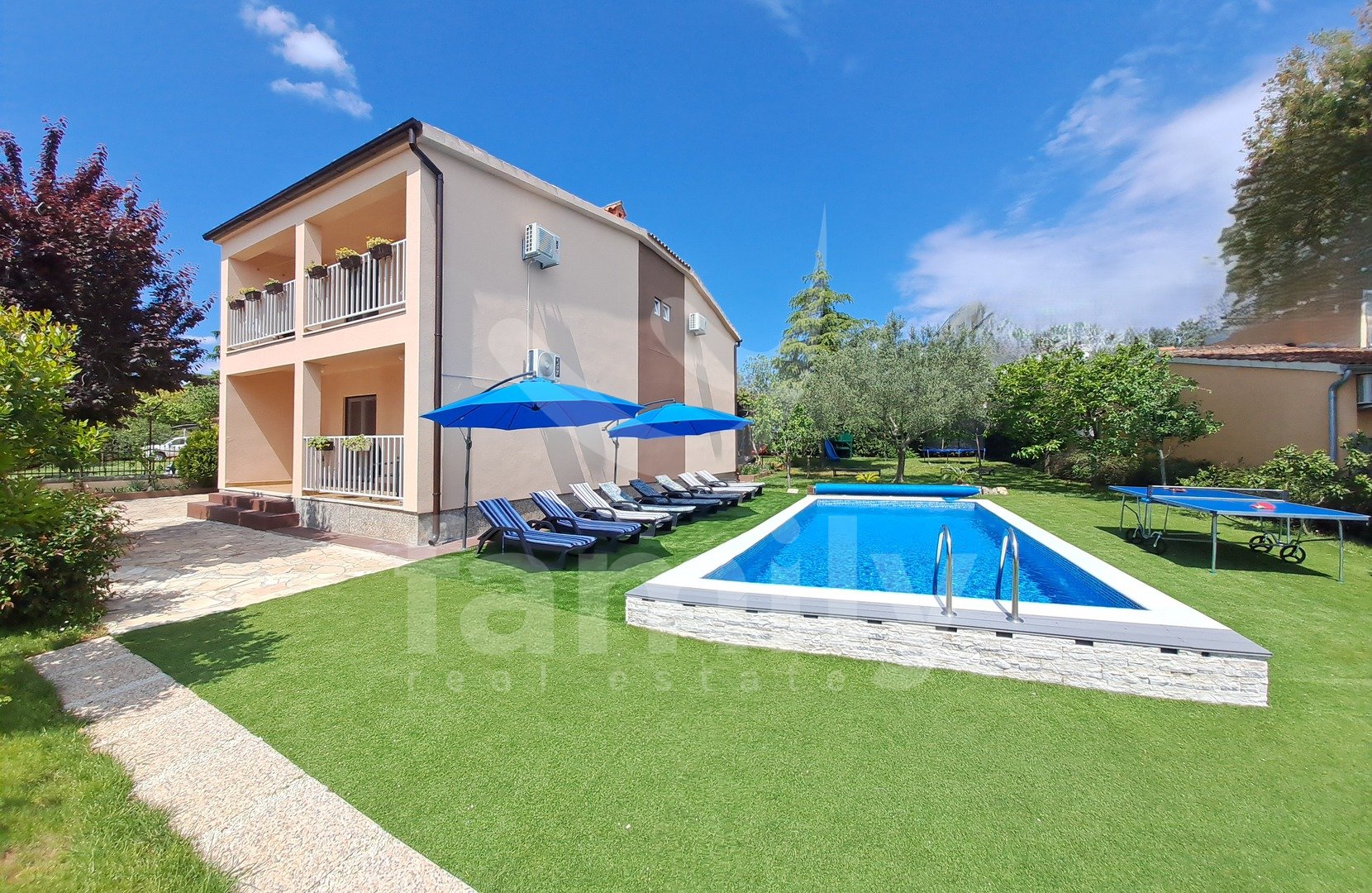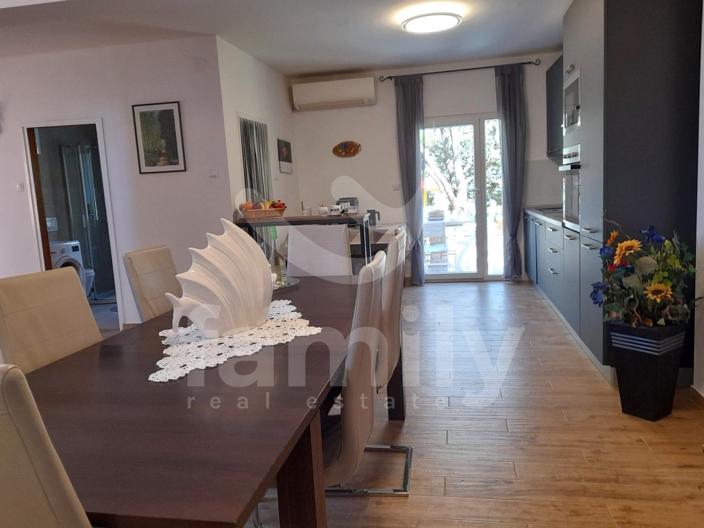 Questa splendida casa a due piani di 200 m² con un giardino di 815 m² si trova a Fasana. Si estende su due piani e al piano terra si trova un ingresso da cui si accede a un'ampia cucina con zona pranzo, bagno, dispensa e soggiorno. La cucina si apre su un'ampia terrazza di circa 12 m². Al primo piano di questa splendida casa si trovano due bagni e quattro camere da letto, due delle quali hanno accesso a un'ampia terrazza coperta con una fantastica vista aperta sul mare e sulle Isole Brioni. L'ultima ristrutturazione dell'immobile è stata effettuata nel 2022 e ha comportato l'installazione di ceramiche in tutto l'edificio, mentre il sistema di riscaldamento e raffreddamento è regolato da sei unità di aria condizionata, una in ogni stanza con unità esterne separate. Gli infissi sono di alta qualità: doppi vetri in PVC con zanzariere. Il giardino ospita una piscina 4x8 con una splendida area prendisole. Una parte del giardino, vicino alla terrazza coperta, ospita un barbecue, un lavello esterno e diverse tipologie di piante. La proprietà dispone di un garage con tettoia.