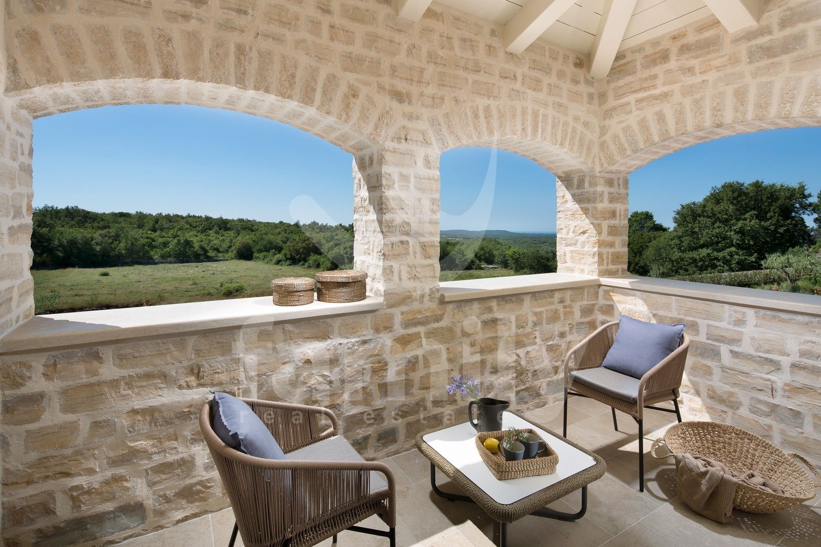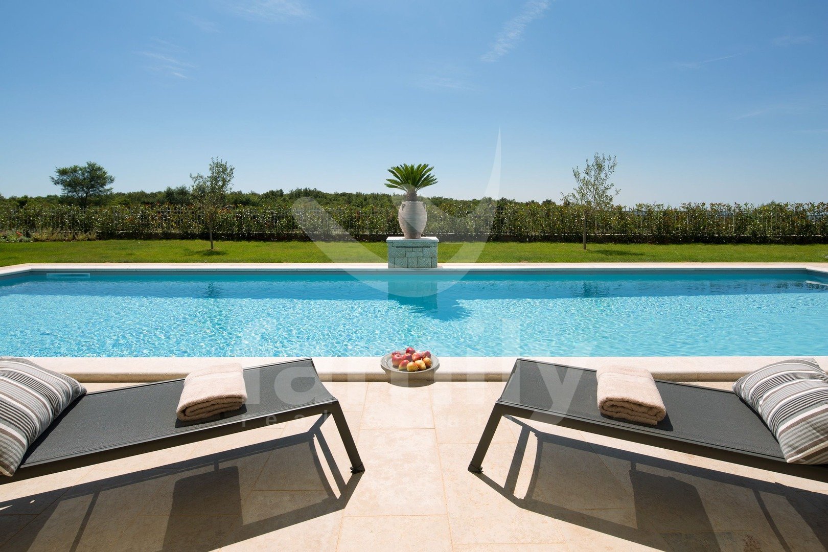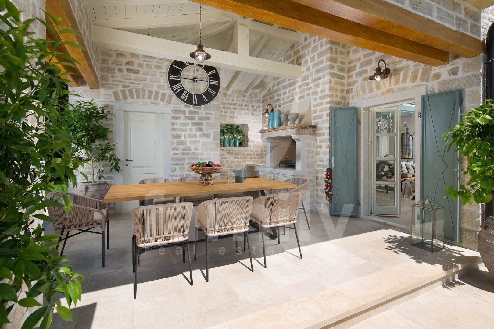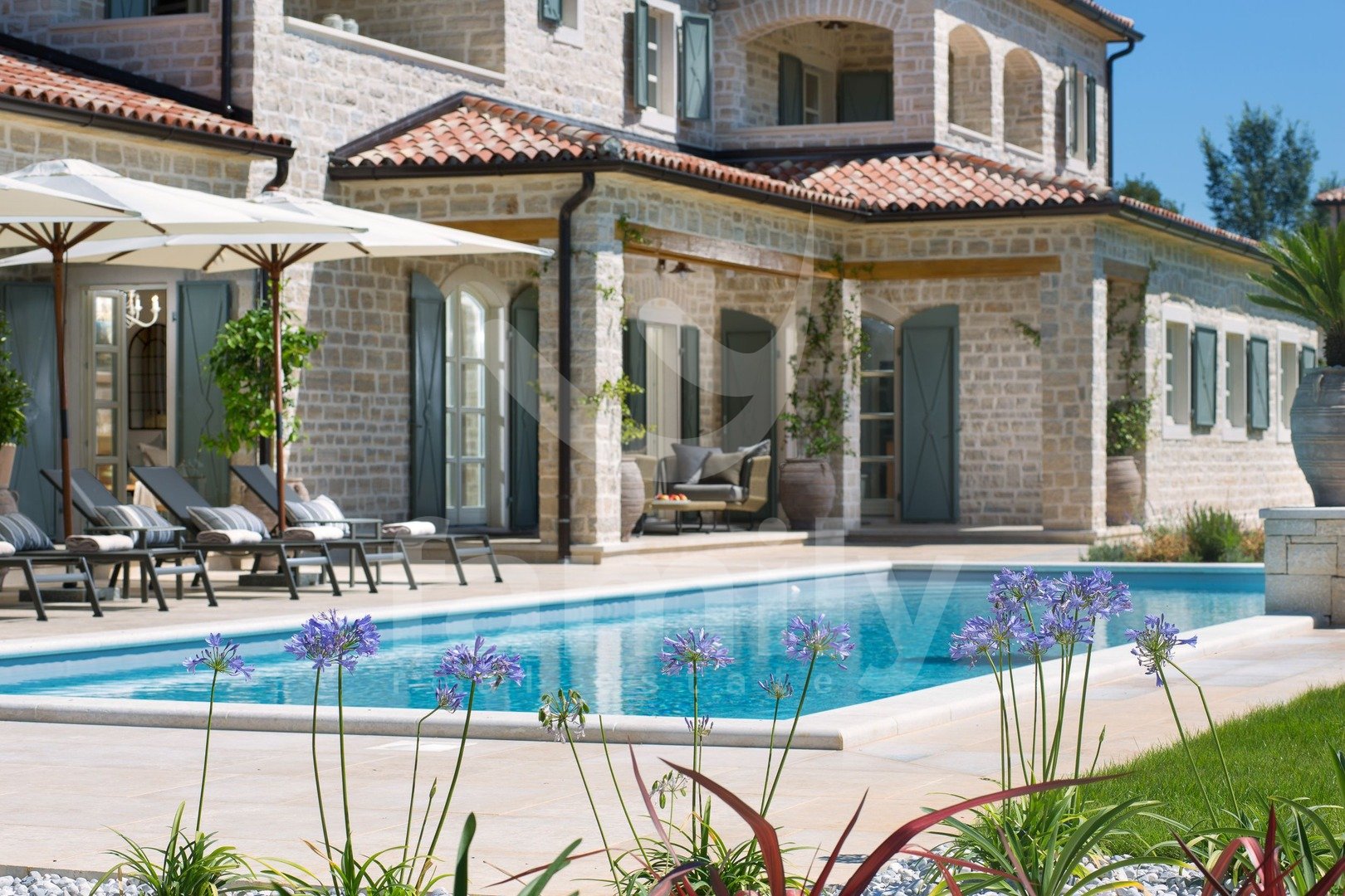 Non lontano da Canfanaro, in un piccolo villaggio, si trova questa splendida e lussuosa villa di 372 m² con un giardino di 1611 m². La villa si estende su due piani, piano terra e primo piano. Il piano terra ospita un soggiorno estremamente spazioso con camino, una sala da pranzo per un gran numero di ospiti, una cucina rustica e moderna completamente attrezzata, due camere da letto con bagno privato, mentre al primo piano si trovano altre tre camere da letto, ciascuna con il proprio bagno, due delle quali hanno accesso a una terrazza con una splendida vista sul mare e su Rovigno. Il giardino è imponente e dispone di una piscina di 67 m², una terrazza solarium, una cucina estiva, un bagno, una doccia solare e numerosi posti auto. Oltre a tutto quanto sopra, la proprietà comprende anche campi sportivi per pallamano, basket e calcio, un campo da pallavolo, due campi da tennis, una pista da bowling, un'area fitness all'aperto, un parco giochi per bambini e un orto ecologico con ingredienti freschi e genuini.