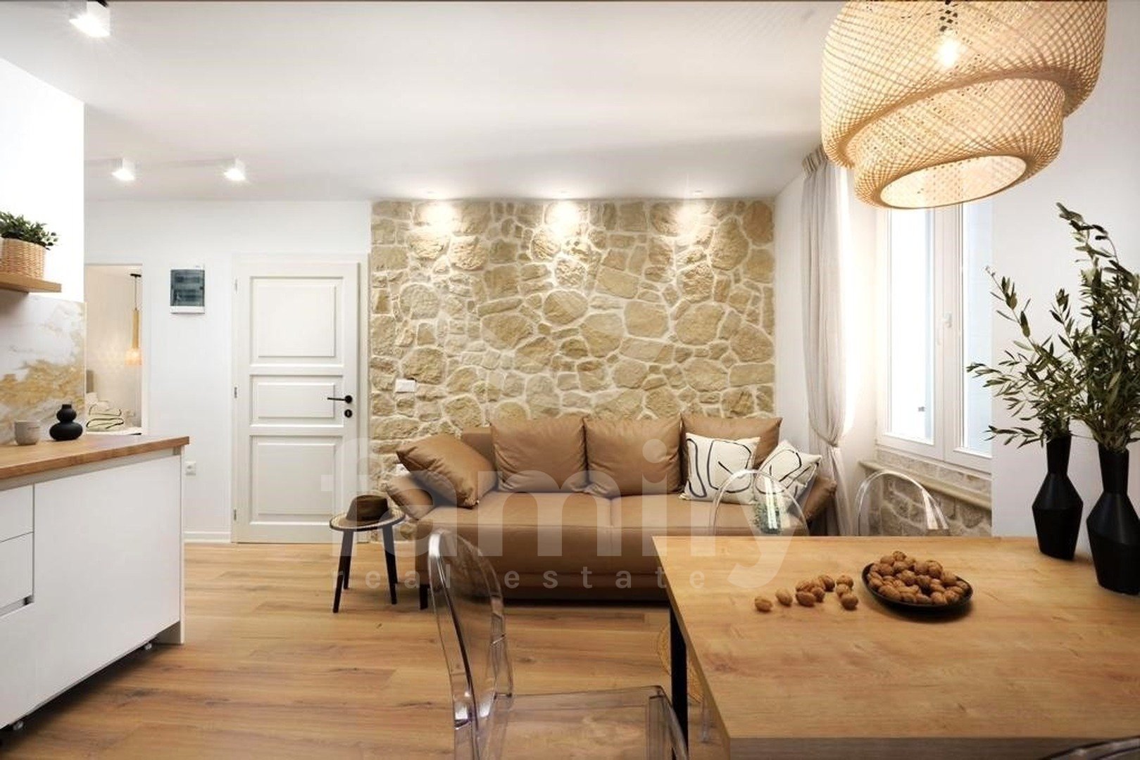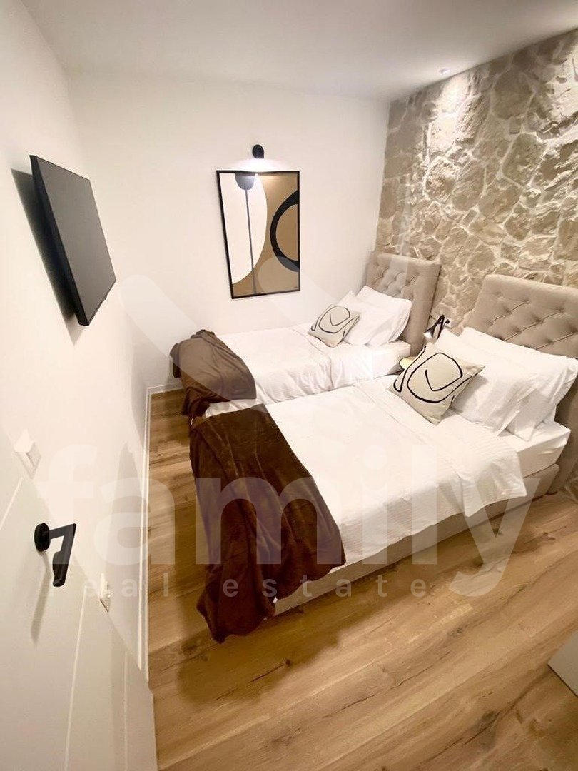 L'edificio ha un totale di 4 piani e l'appartamento si trova al secondo piano, su una superficie totale di 50 m². Il nuovo tetto e la facciata esterna sono in buone condizioni. L'intero appartamento è stato arredato e ristrutturato nel 2022. L'appartamento è composto da soggiorno, sala da pranzo, cucina, bagno e due camere da letto. L'intero appartamento è dotato di mobili eleganti e di alta qualità e di aria condizionata. I pavimenti sono in parquet e le finestre sono dotate di infissi in PVC con persiane esterne in ferro dalla forma piatta e moderna. I moderni mobili di design di cui è dotato impreziosiscono anche questa splendida proprietà, dotata di armadi a muro. L'appartamento è sicuramente elegante e arredato con cura, ogni dettaglio fa sicuramente la differenza e conferisce calore a questa casa, ed è per questo che è così speciale.