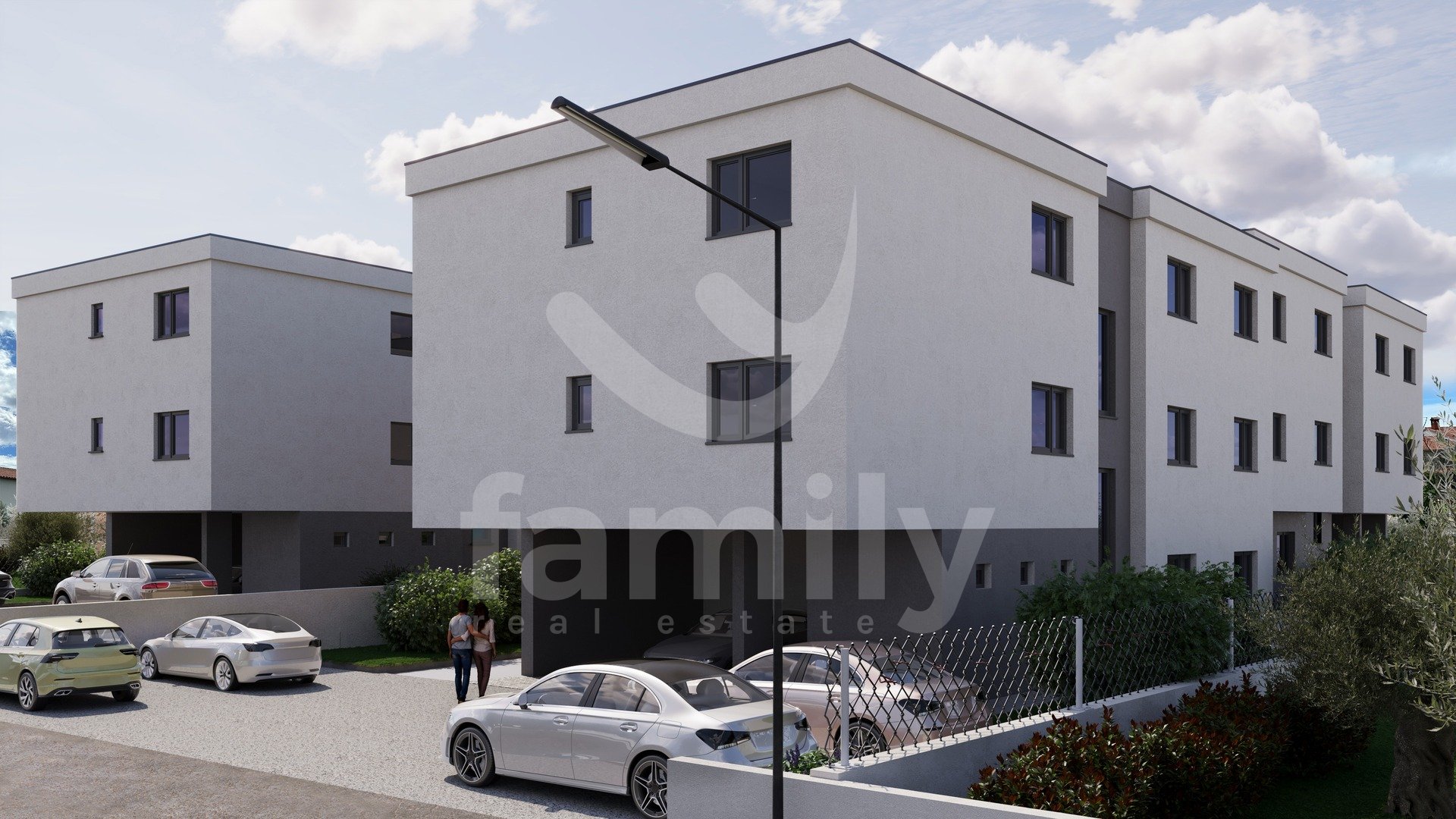 A Štinjan, non lontano dalla famosa spiaggia di Hidrobaza, è prevista la costruzione di un piccolo edificio residenziale con un totale di quattro appartamenti. Al primo piano di questo edificio di qualità in costruzione, sorgerà questo spazioso appartamento di 73 m². L'appartamento è previsto con un corridoio che separerà la zona notte dalla zona giorno, due ampie camere da letto, un ampio soggiorno con cucina e sala da pranzo e accesso a un'ampia terrazza coperta di 8,48 m², oltre a un bagno di servizio. L'appartamento dispone di due posti auto e di un ripostiglio, mentre l'appartamento è previsto con infissi in PVC di alta qualità a tre strati di colore antracite - grigio scuro, nonché zanzariere e tapparelle con sollevamento elettrico. L'impianto di riscaldamento e raffreddamento sarà regolato da unità di aria condizionata e sarà installato il riscaldamento elettrico a pavimento. La posizione di questo edificio residenziale è ideale in termini di vicinanza ai servizi di supporto necessari per la vita quotidiana come negozi, scuole, asili, farmacie e il centro di Pola, ed è anche molto vicina alla famosa spiaggia di Štinjan, l'Idroscalo, raggiungibile a piedi. L'immobile è di proprietà di una società e l'IVA è pagata sul prezzo indicato.