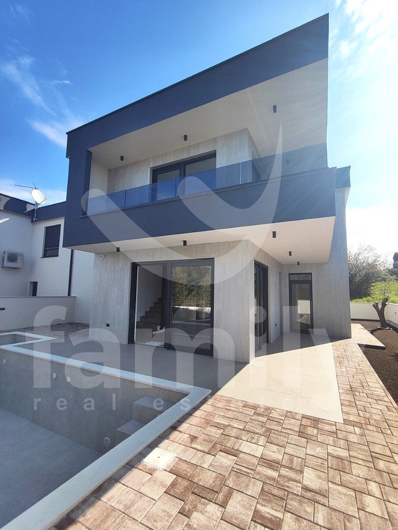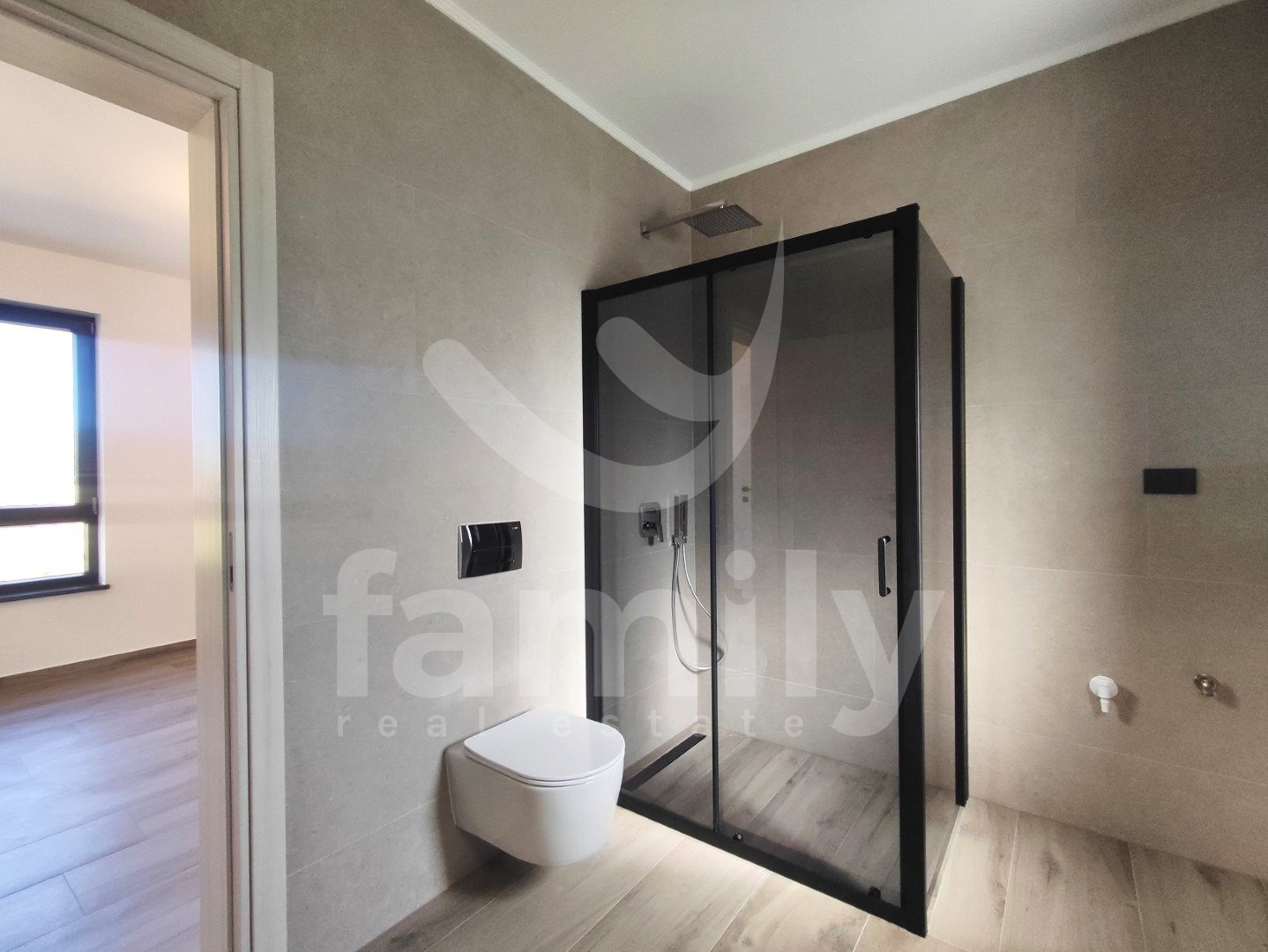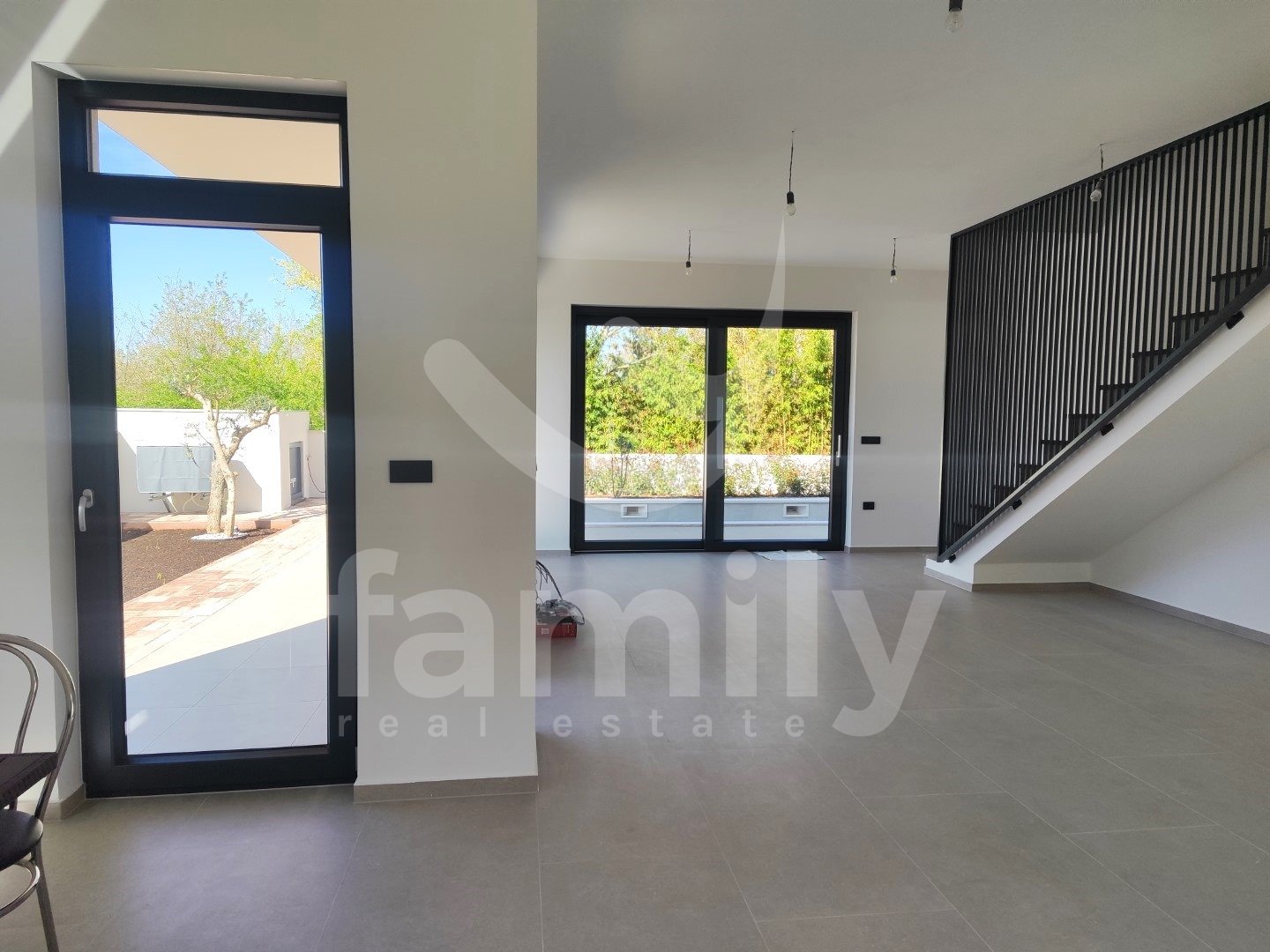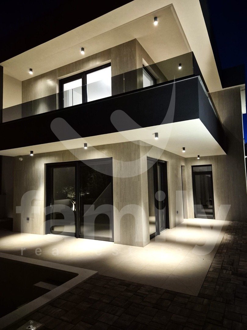 Il piano terra della proprietà è composto da un ambiente in cui sono previsti la cucina e il soggiorno, entrambi comunicanti e open space con accesso alla piscina e alla terrazza, oltre a un bagno per gli ospiti. Proprio accanto al muro si trova una moderna scala pavimentata in granito che conduce al primo piano. Al piano superiore si trova un ingresso alle camere, con un afflusso di luce dal tetto, una finestra e uno spazio previsto per un piccolo armadio a muro. Entriamo in tre camere da letto, ognuna con ingresso indipendente e bagno privato, aria condizionata inverter e tutte le stanze sono dotate di ampie finestre con zanzariere e tapparelle elettriche, oltre al riscaldamento a pavimento. Due delle tre camere da letto hanno anche accesso a una terrazza coperta di soli 18,69 m² da cui si gode una splendida vista.