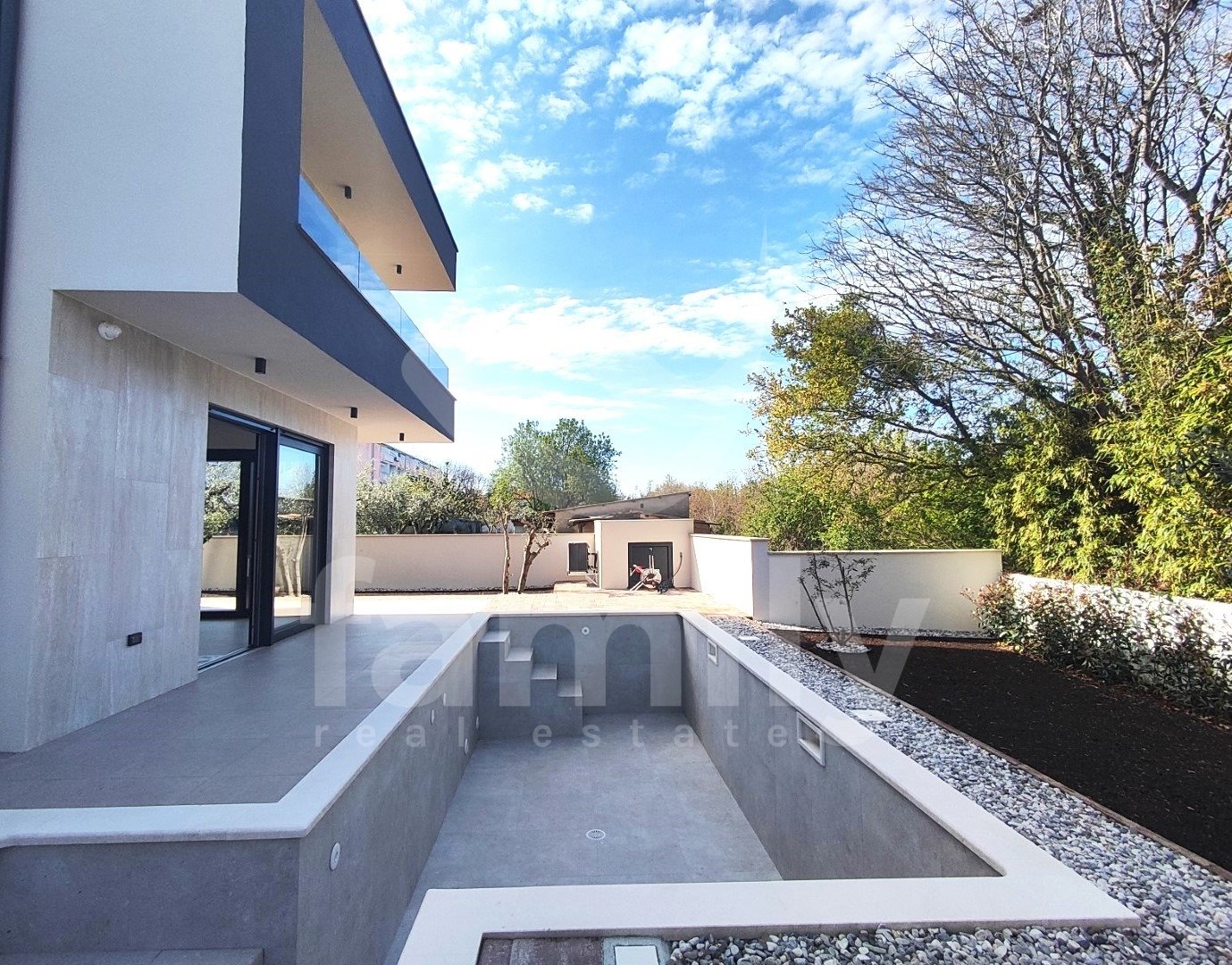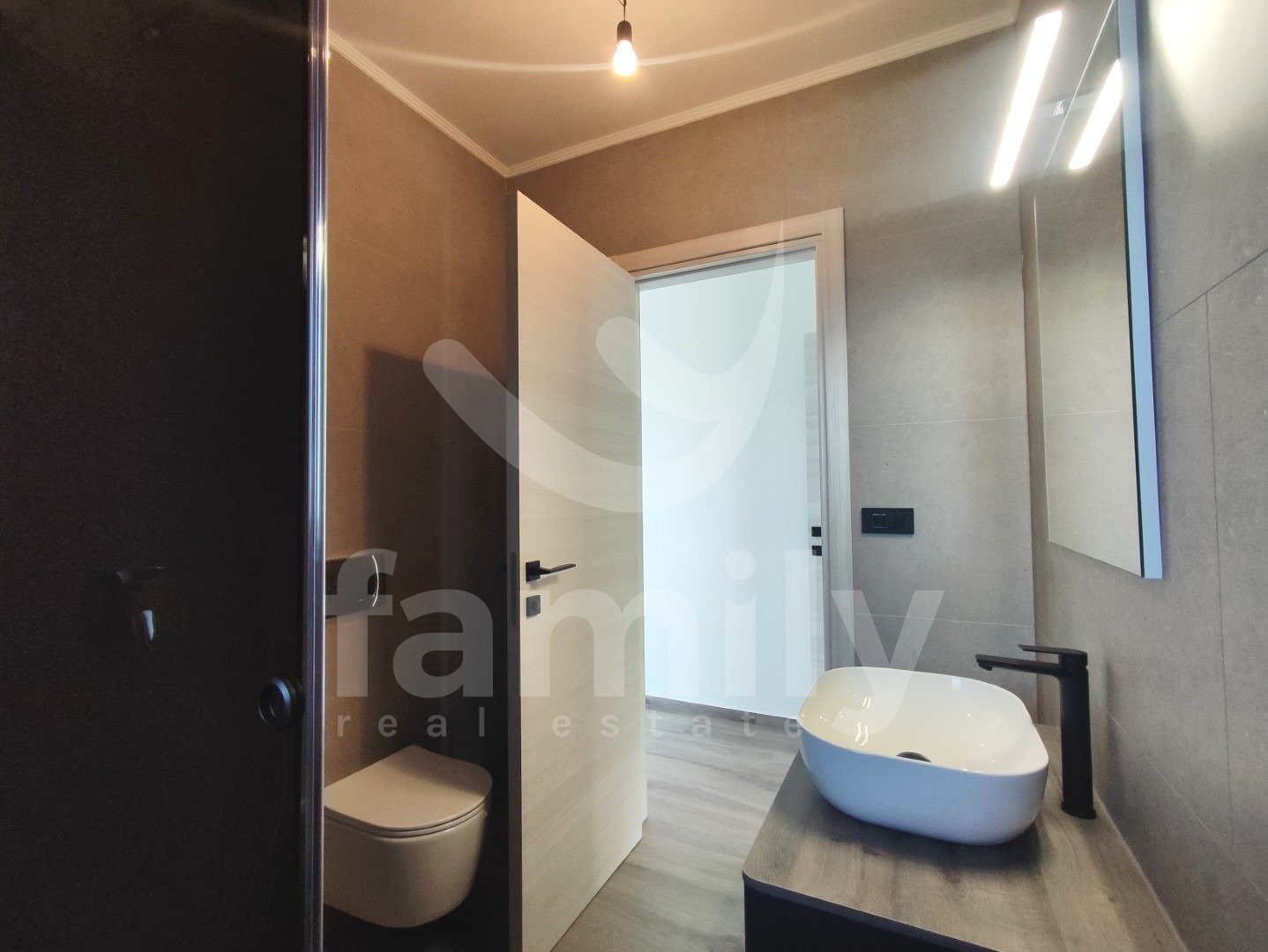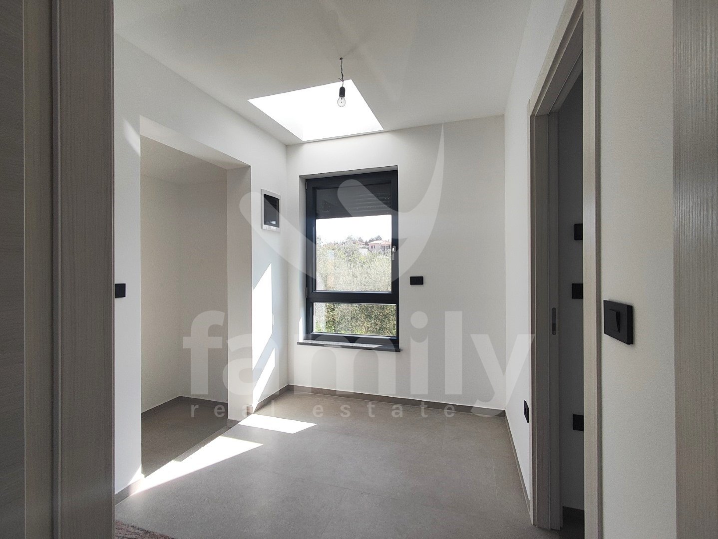 Il piano terra della proprietà è composto da un ambiente in cui sono previsti la cucina e il soggiorno, entrambi comunicanti e open space con accesso alla piscina e alla terrazza, oltre a un bagno per gli ospiti. Proprio accanto al muro si trova una moderna scala pavimentata in granito che conduce al primo piano. Al piano superiore si trova un ingresso alle camere, con un afflusso di luce dal tetto, una finestra e uno spazio previsto per un piccolo armadio a muro. Entriamo in tre camere da letto, ognuna con ingresso indipendente e bagno privato, aria condizionata inverter e tutte le stanze sono dotate di ampie finestre con zanzariere e tapparelle elettriche, oltre al riscaldamento a pavimento. Due delle tre camere da letto hanno anche accesso a una terrazza coperta di soli 18,69 m² da cui si gode una splendida vista.
