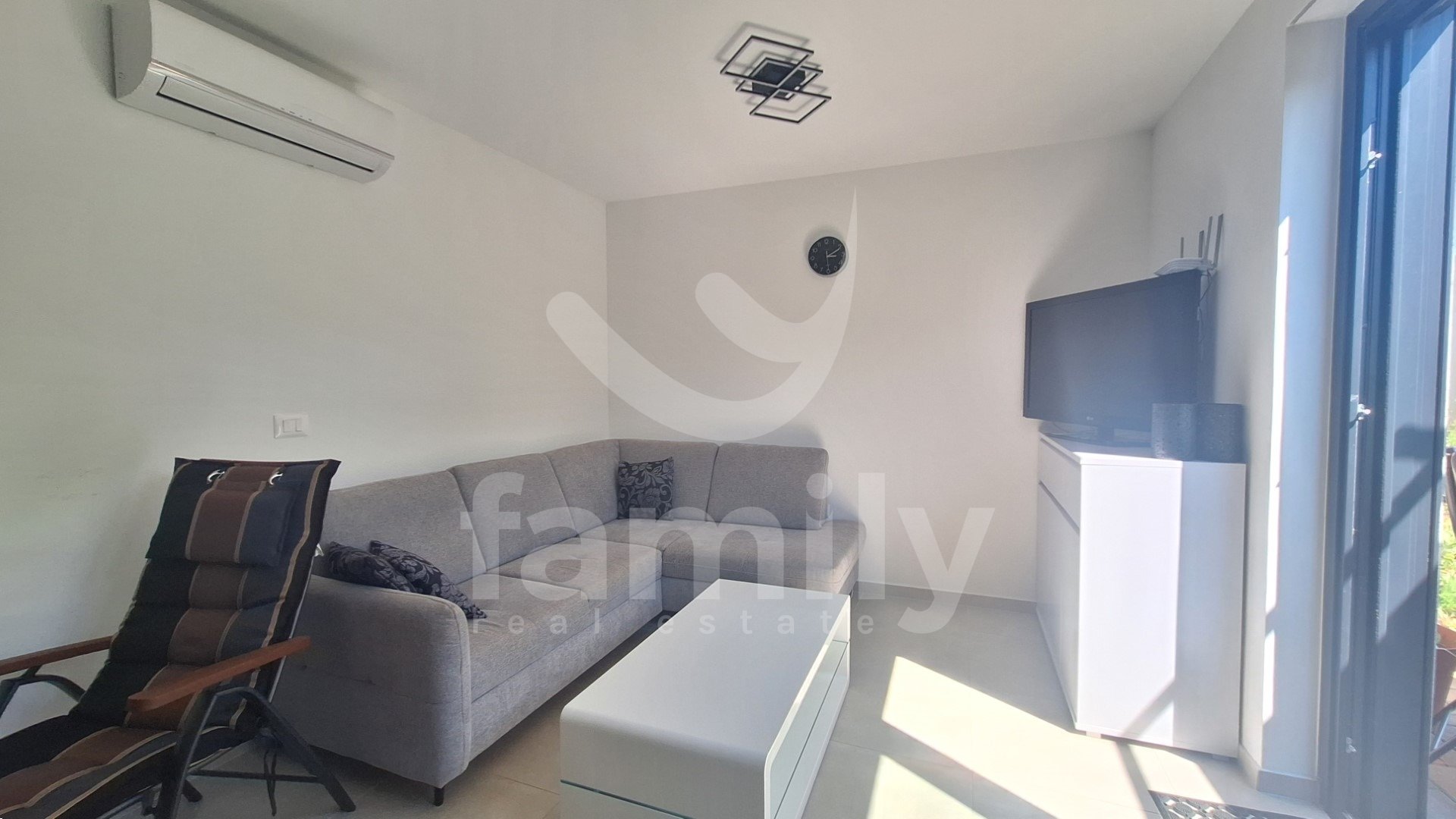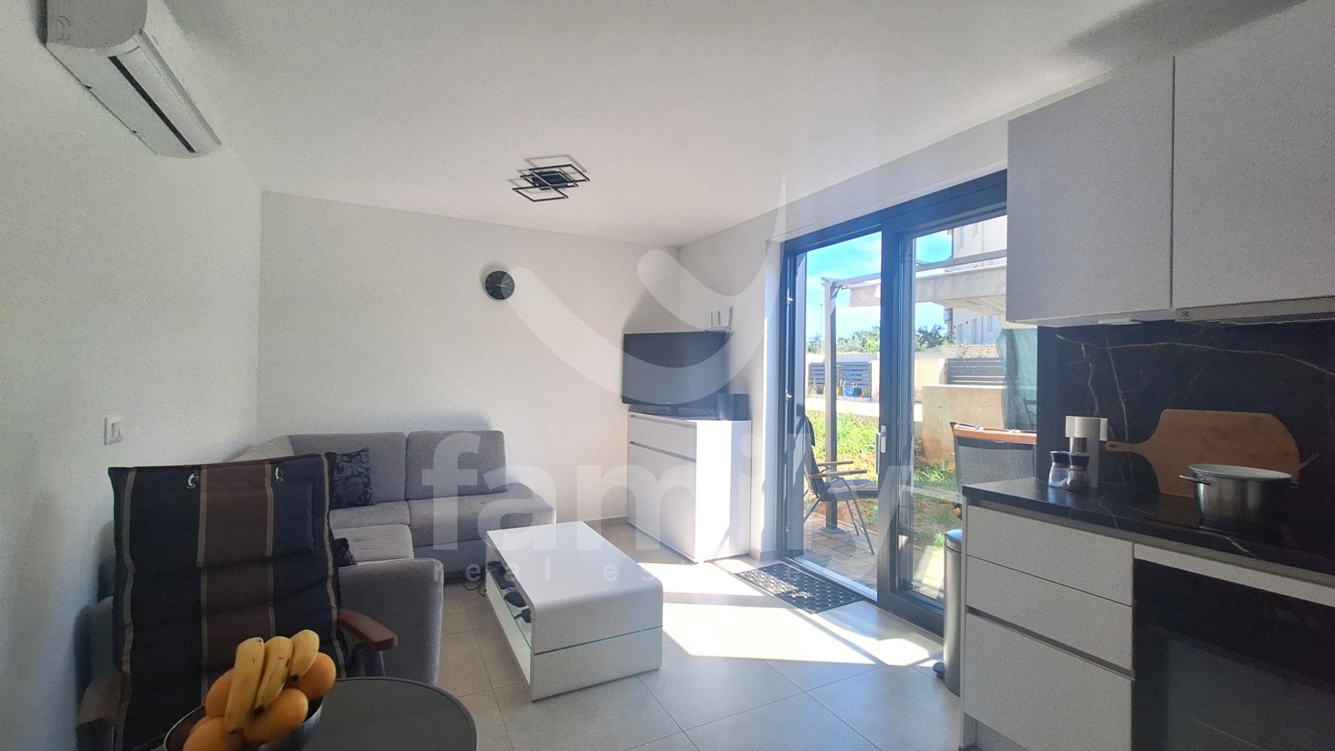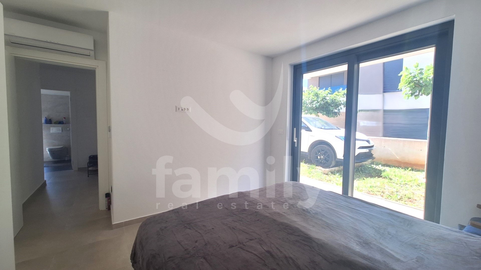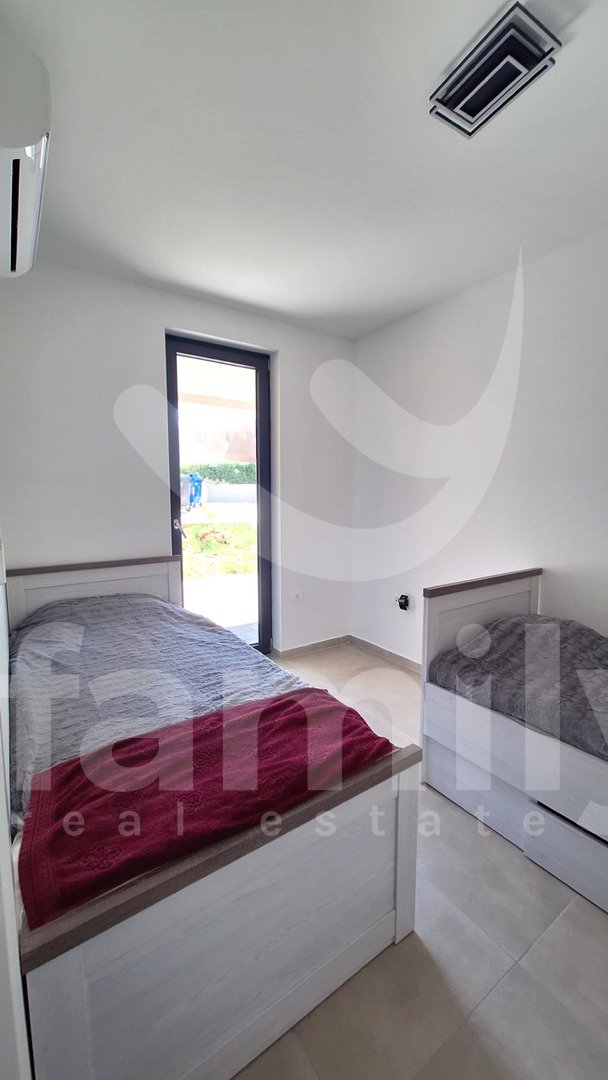 In una posizione molto ambita, a Štinjan, si trova l'appartamento sopra menzionato al piano terra di un piccolo edificio con un totale di quattro unità abitative, con una superficie di 70 m² e un giardino di 150 m². L'appartamento è composto da un luminoso soggiorno open space con cucina e accesso alla terrazza, due ampie camere da letto con accesso alla terrazza, un bagno e un ripostiglio di 4 m². Questo appartamento moderno e di alta qualità è dotato di infissi in PVC a tre strati color antracite con 9 camere a gas e ascensori elettrici con telecomando, porte d'ingresso di sicurezza in PVC color antracite e tutte le aperture esterne sono dotate di zanzariere. Il riscaldamento e il raffrescamento sono regolati da 3 unità di aria condizionata, una situata nel soggiorno e le altre due nelle camere da letto, mentre il bagno è dotato di riscaldamento elettrico a pavimento, cassetta di scarico integrata, caldaia e lavatrice. I pavimenti dell'intero edificio sono rivestiti con ceramiche di qualità. Il vantaggio dell'immobile, oltre ad essere immediatamente abitabile e con finiture di alta qualità, è la sua posizione in termini di vicinanza a tutti i servizi di supporto necessari alla vita quotidiana. L'appartamento dispone inoltre di 2 posti auto e viene venduto completamente arredato con tutti i mobili e gli elettrodomestici.