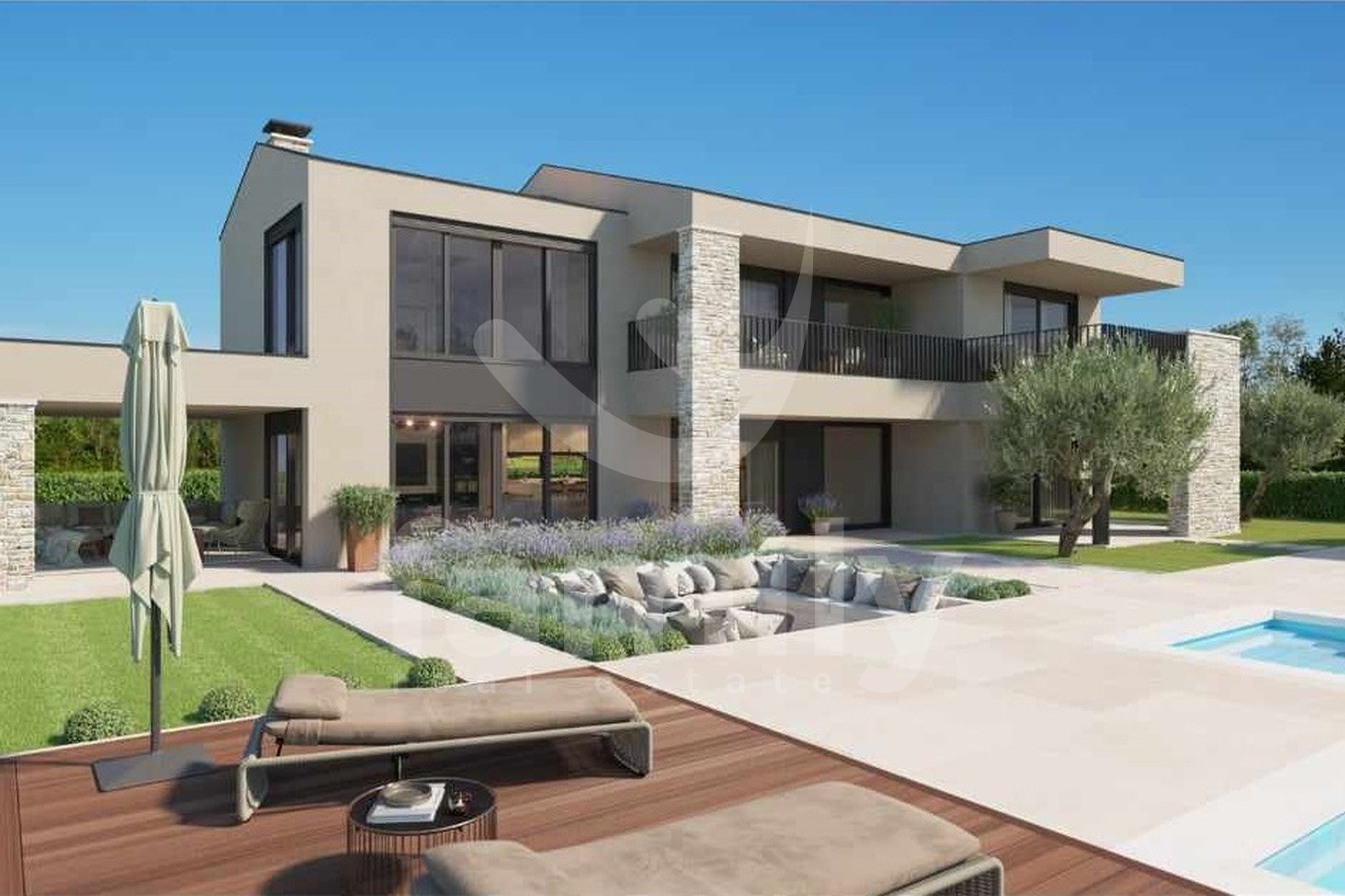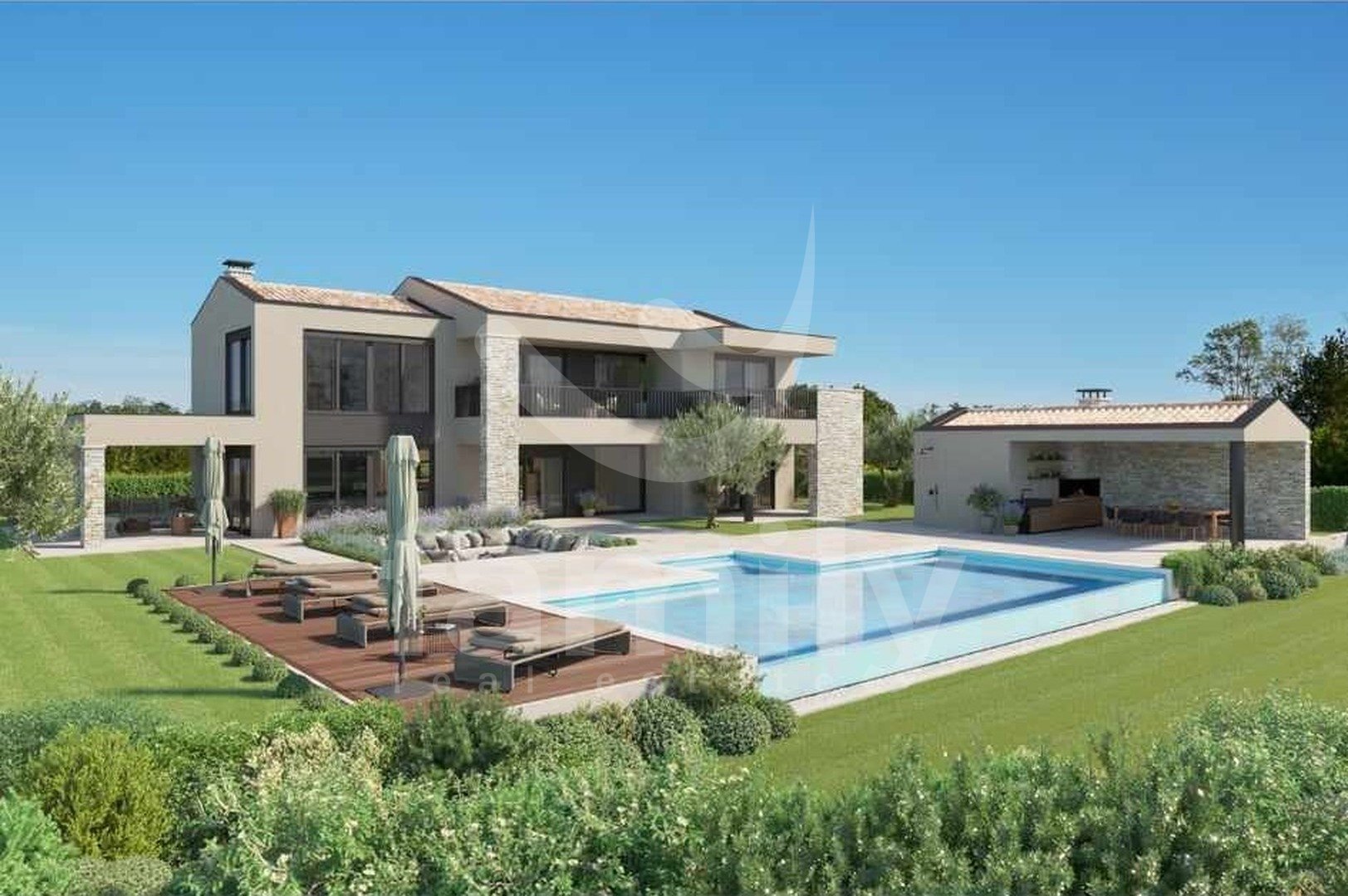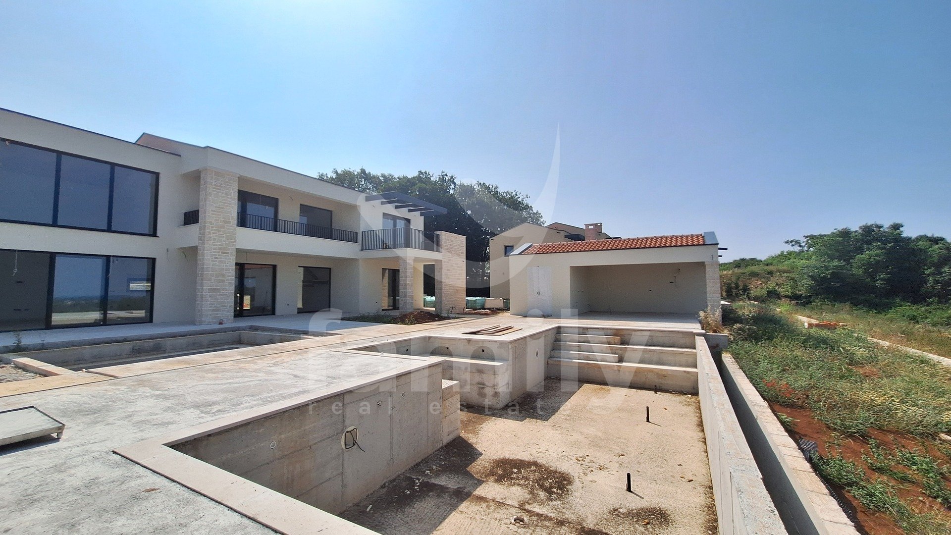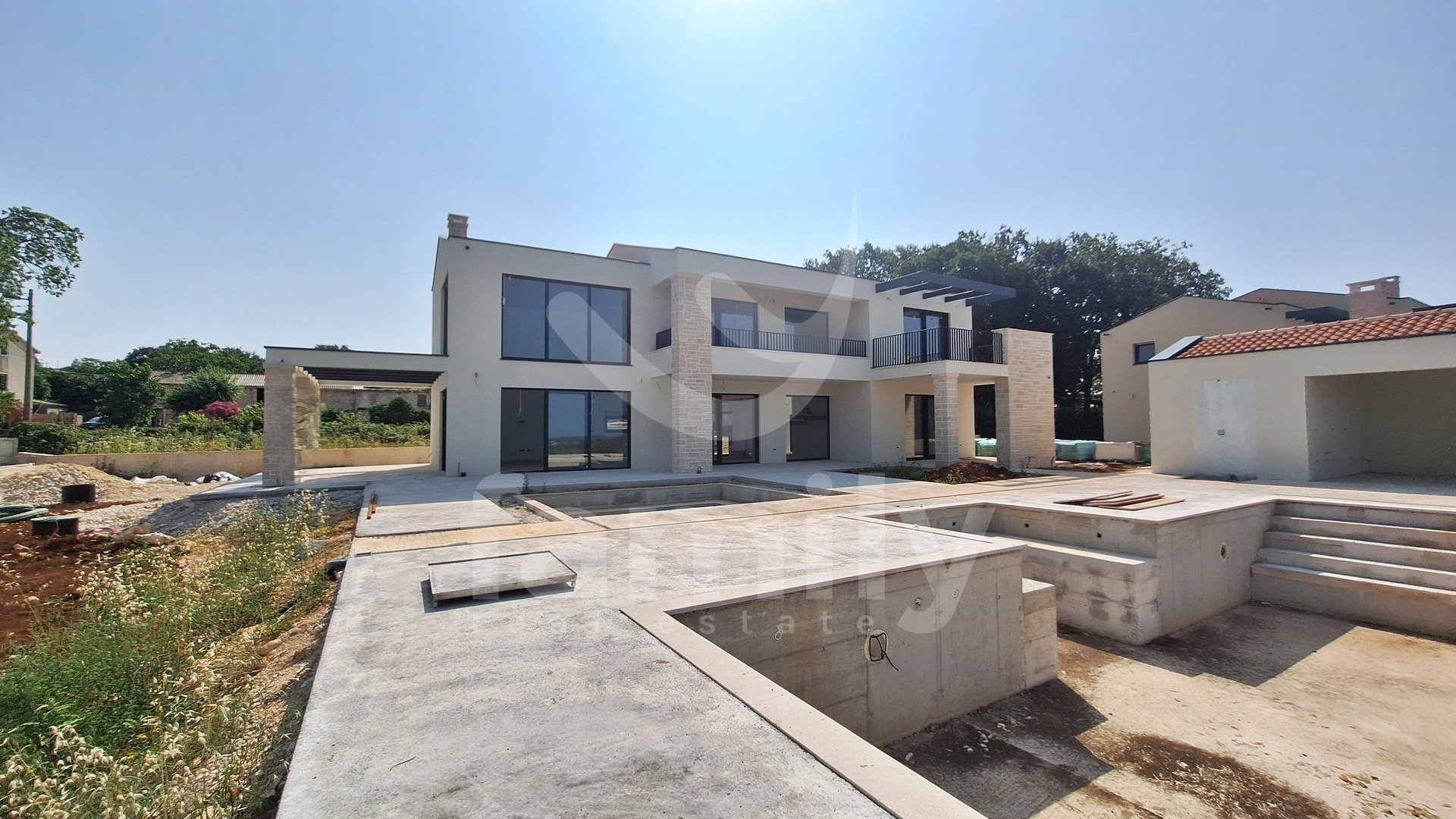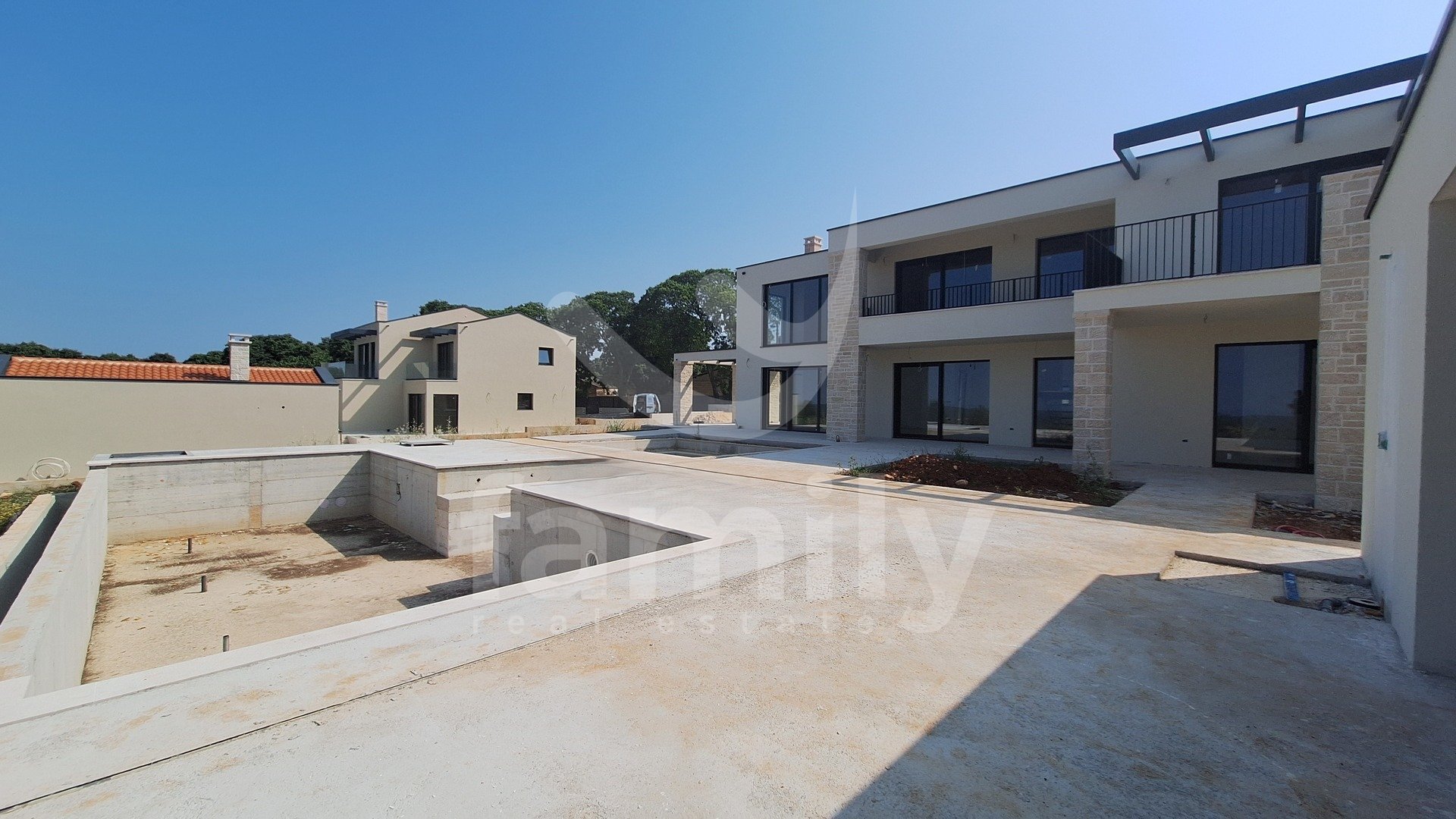 Non lontano dalla città di Parenzo, è in vendita un'imponente villa con vista mare. Si trova in un incantevole complesso residenziale con vista panoramica sul mare, sulle Alpi e sui dintorni, circondata dal verde, vigneti, uliveti, case unifamiliari e case vacanze, ed è stata costruita secondo i più alti standard per l'edilizia residenziale. L'elegante esterno della proprietà si integra perfettamente nel paesaggio circostante, mentre gli interni e gli spazi interni sono altrettanto armoniosi. Numerose vetrate garantiscono la massima penetrazione della luce esterna, enfatizzando lo spazio e creando al contempo un collegamento tra interno ed esterno. La villa è concepita come un'unica unità abitativa distribuita su due piani.