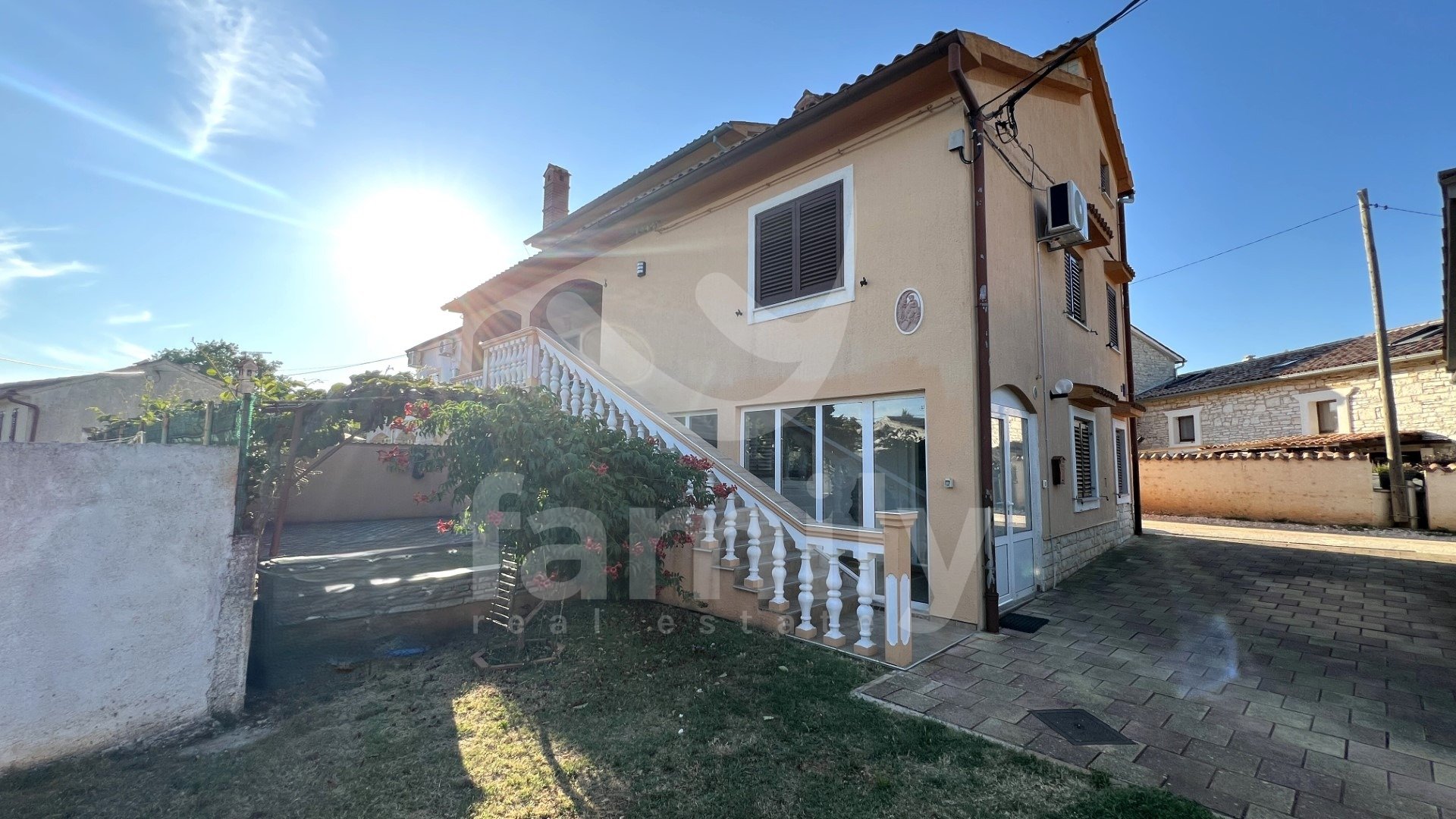 Questa splendida casa familiare si trova in un ambiente tranquillo nella zona del comune di Filipana, e si estende su tre piani, per una superficie totale di 300 m². Il piano terra della proprietà è composto da un ingresso, un confortevole soggiorno con cucina a vista e zona pranzo, oltre a due camere da letto e un bagno. Ogni piano ha una superficie di 100 m². Al secondo e terzo piano si trovano due ampie camere da letto e un bagno. La maggior parte della casa è dotata di riscaldamento centralizzato, mentre il riscaldamento più comunemente utilizzato è tramite stufe a legna e aria condizionata. Gli infissi sono in PVC e legno con persiane di qualità, mentre i pavimenti sono rivestiti in ceramica e laminato. Su ogni piano è possibile organizzare lo spazio secondo i propri desideri. L'edificio annesso ospita un garage di circa 50 m² e una taverna accogliente e ben progettata. Un giardino spazioso e di qualità impreziosisce ulteriormente la proprietà.