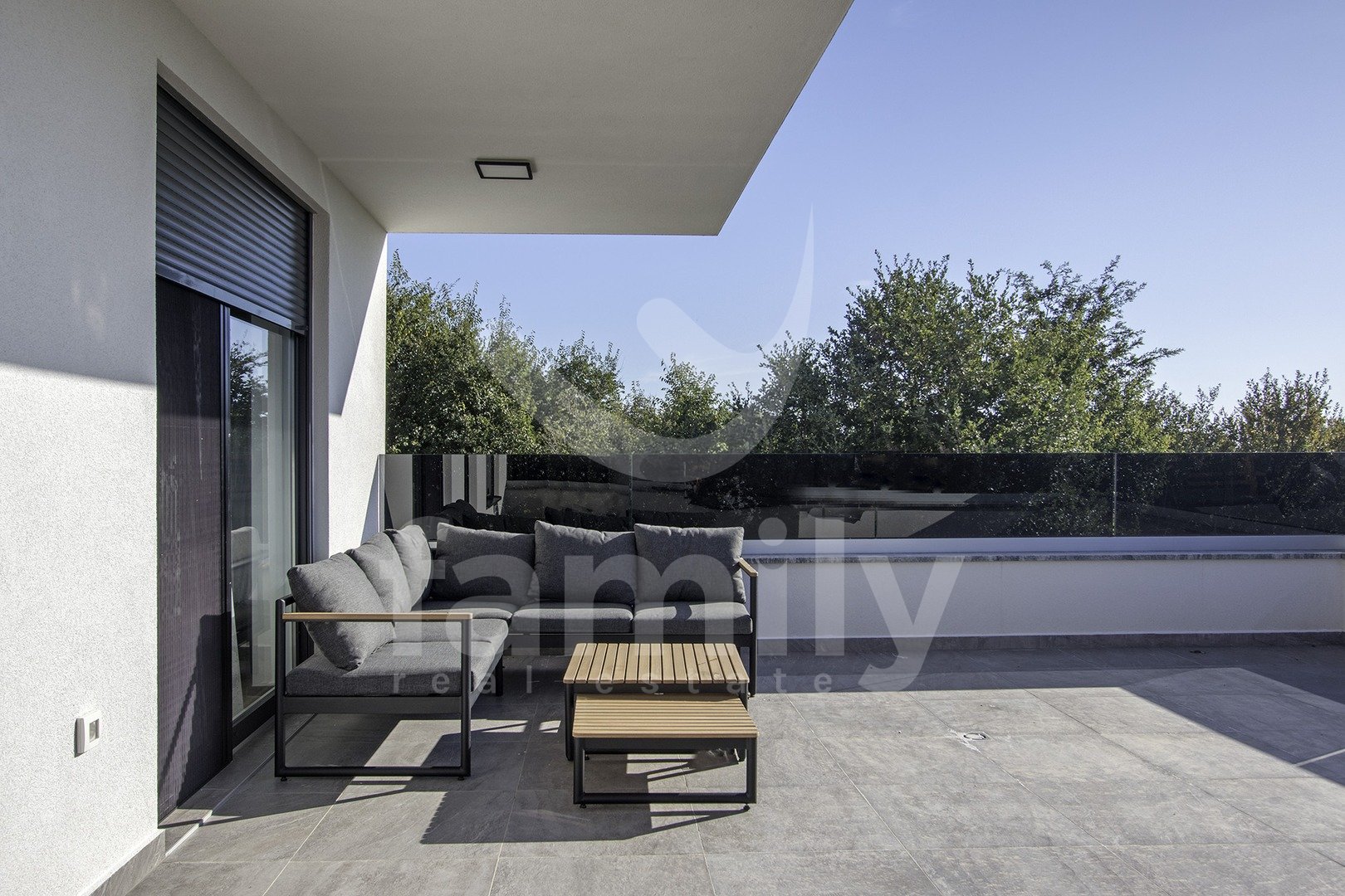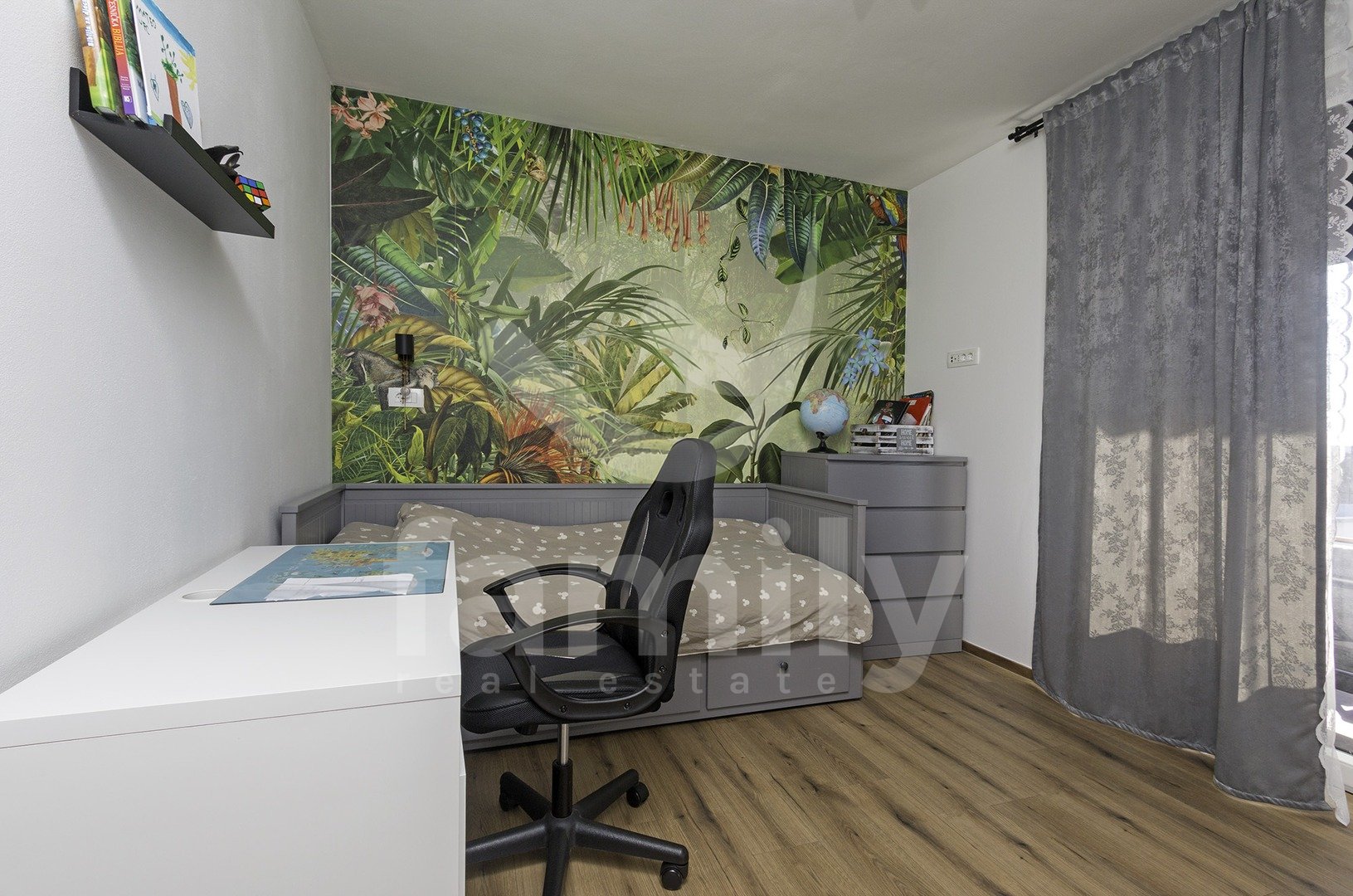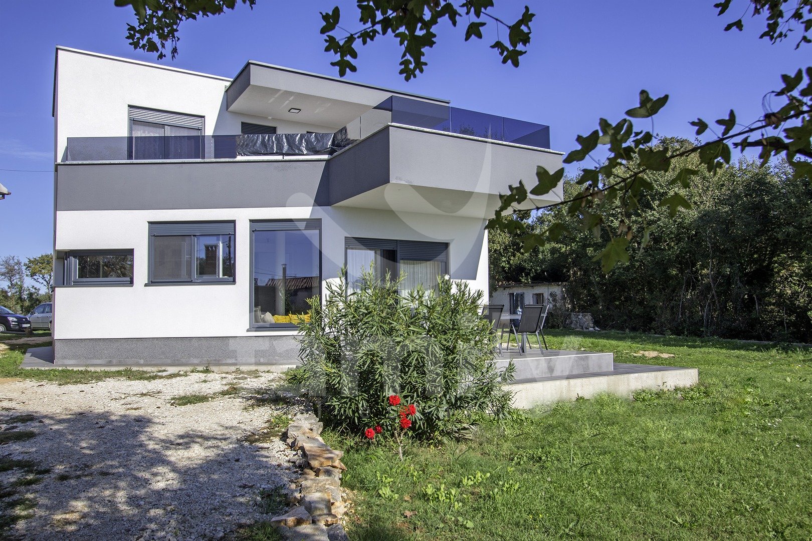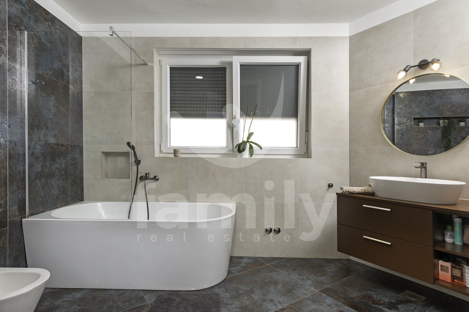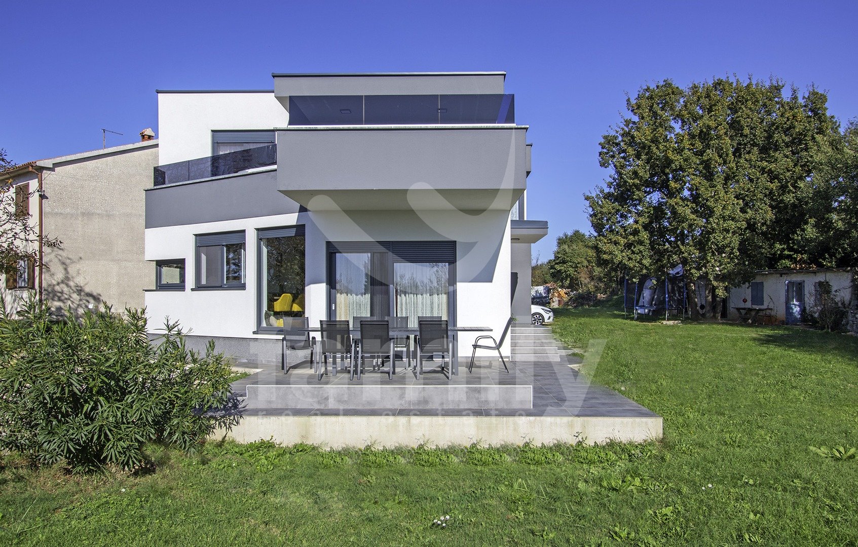 Non lontano da Marčana si trova questa casa indipendente di nuova costruzione, di alta qualità, su due piani, con garage e due ripostigli, situata su un terreno di 995 m². La superficie totale degli edifici è di 267 m², di cui 160 m² per la casa, ripostigli di circa 50 m² e 30 m² e un garage di 30 m². La casa si sviluppa su due piani, il piano terra di 90 m² e il primo piano di 70 m², ed è arredata in uno stile caldo e familiare. Il piano terra di questa proprietà di alta qualità è composto da un soggiorno open space con sala da pranzo e cucina DanKuchen, un ripostiglio, un bagno, una zona lavanderia e asciugatura, un locale caldaia e un'altra stanza che può essere utilizzata come studio o camera da letto, a seconda dei desideri del futuro proprietario. Al primo piano si trovano tre camere da letto con due bagni, ovvero una spaziosa camera da letto principale con bagno privato e cabina armadio, e due camerette con bagno in comune, e un'ampia terrazza di 20 m². La casa è dotata di finestre in PVC di alta qualità con doppi vetri, bianche all'interno e antracite all'esterno, con zanzariere e persiane, mentre il sistema di riscaldamento e raffrescamento è regolato da due condizionatori inverter e riscaldamento a pavimento installato in tutto l'edificio residenziale su una pompa di calore Fujitsu, e c'è la possibilità che, in caso di costruzione di una piscina, il suo riscaldamento possa essere collegato allo stesso sistema, mentre tutti i mobili sono realizzati su misura e di alta qualità, e gli elettrodomestici e l'elettronica sono accuratamente selezionati tra i rinomati marchi Bosch e Miele. L'immobile è dotato di un isolamento termico di 10 cm di spessore, che rappresenta un'ulteriore efficienza energetica. Il cortile è sufficientemente ampio per la costruzione di una futura piscina e al suo interno si trovano due ripostigli e un garage che necessitano di ristrutturazione e, data la loro superficie, possono essere convertiti in edifici residenziali.