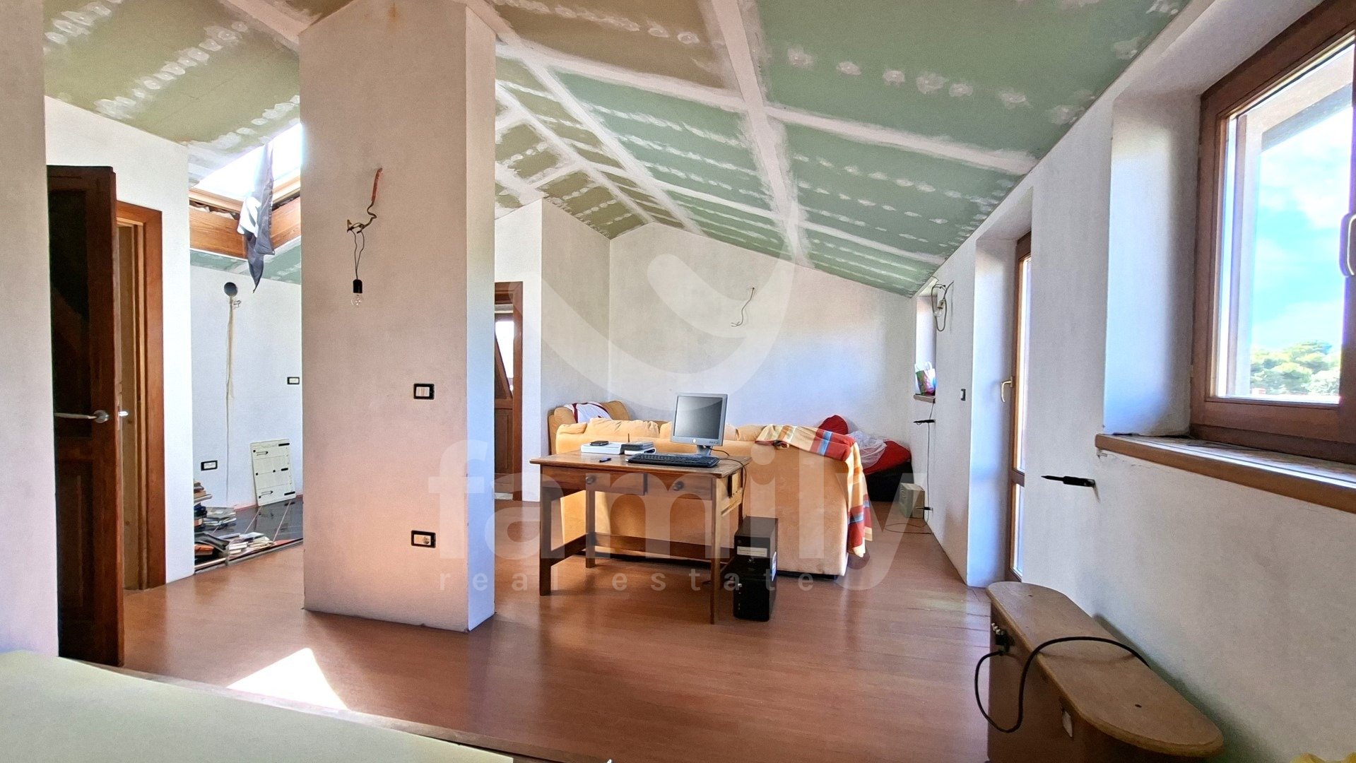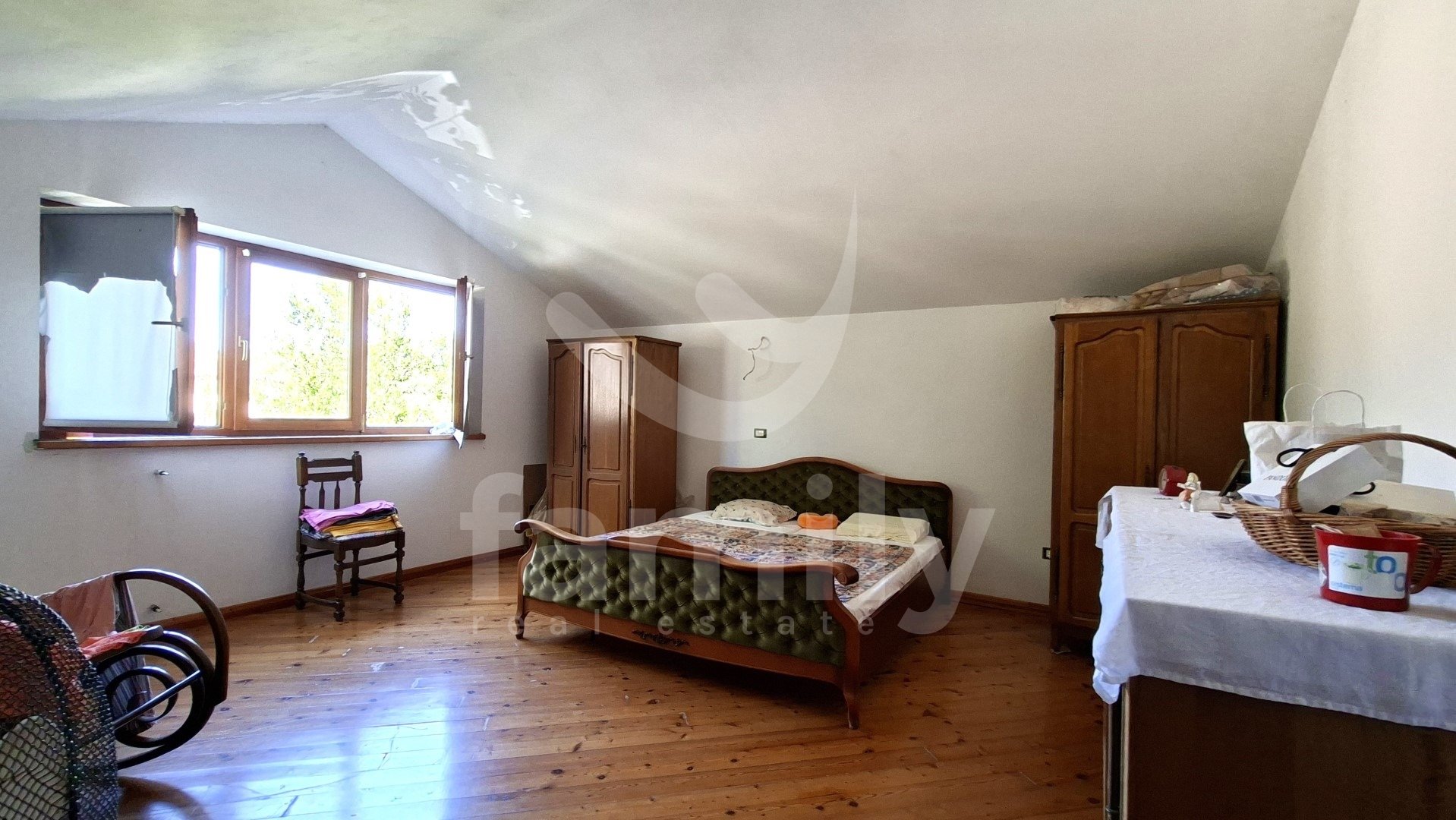 Nel Comune di Medolino, più precisamente a Pomer, a pochi minuti a piedi dal mare, si trova questa spaziosa casa di 250 m², che si estende su tre piani e un giardino di 440 m². L'ingresso al piano terra della proprietà ci conduce attraverso un ampio corridoio da cui si accede a una cucina ben attrezzata con tutti i comfort necessari, nonché a un confortevole soggiorno con zona pranzo e accesso a una terrazza coperta con barbecue in muratura e a un cortile con ulivi. Sempre al piano terra troviamo un comodo bagno e un ripostiglio. I pavimenti della cucina e del bagno sono piastrellati, mentre l'impianto di riscaldamento è tramite stufa a legna e aria condizionata, ed è stato installato il riscaldamento centralizzato, attualmente non in funzione. Il secondo piano della casa e la mansarda sono in fase di completamento e dispongono di due camere da letto con accesso alla terrazza, cucina, soggiorno e bagno. L'ultimo piano, la mansarda, comprende anche una cucina, un bagno e una zona giorno open space con accesso alla terrazza. L'intera casa è dotata di infissi in legno.