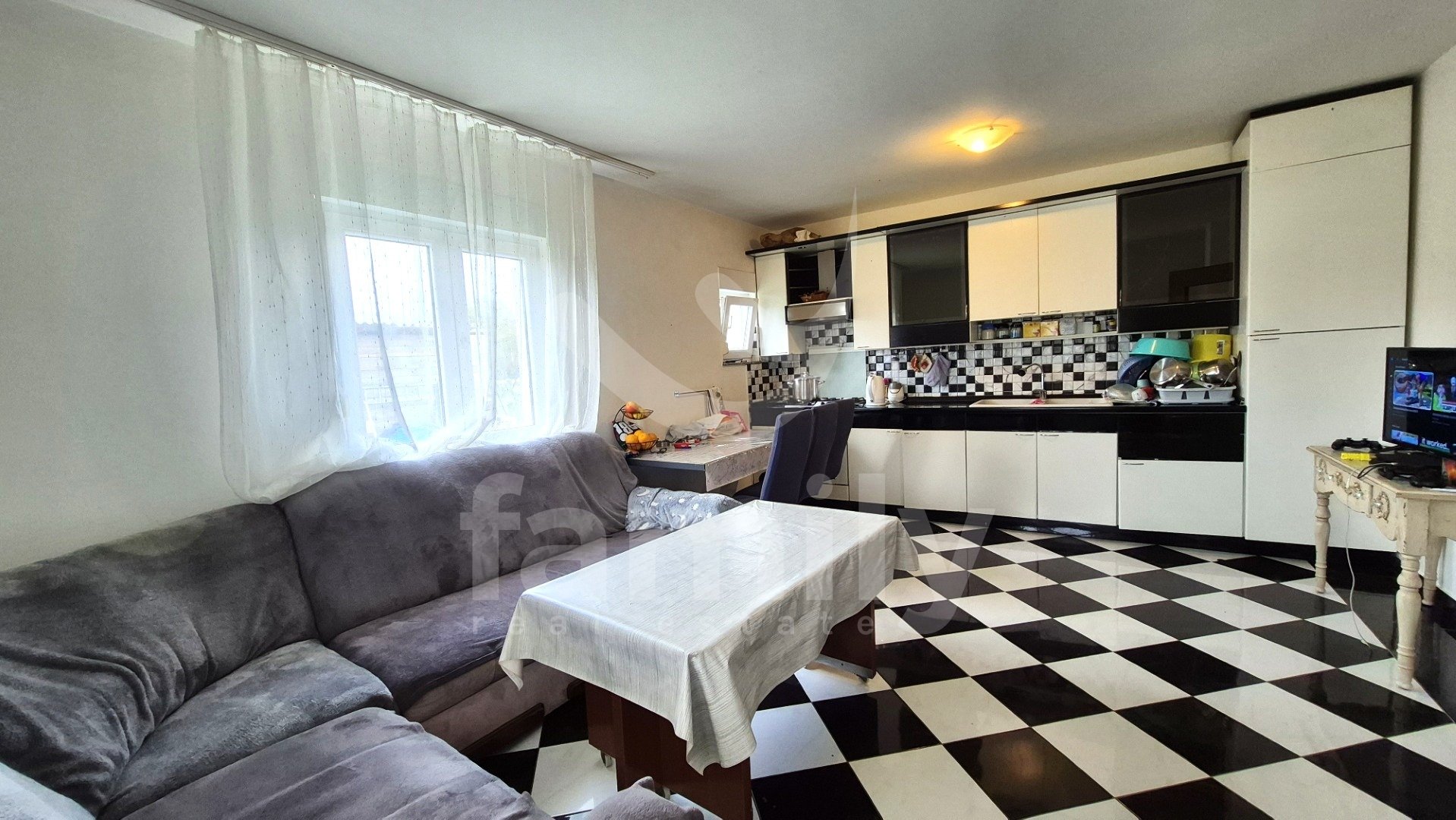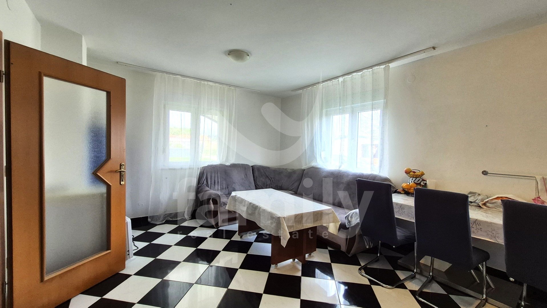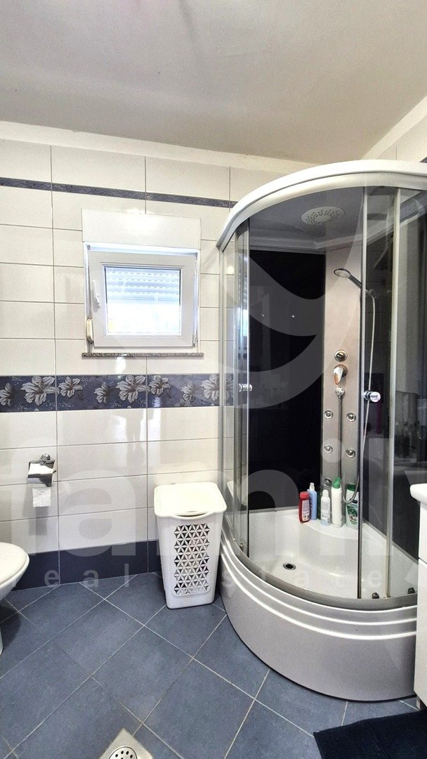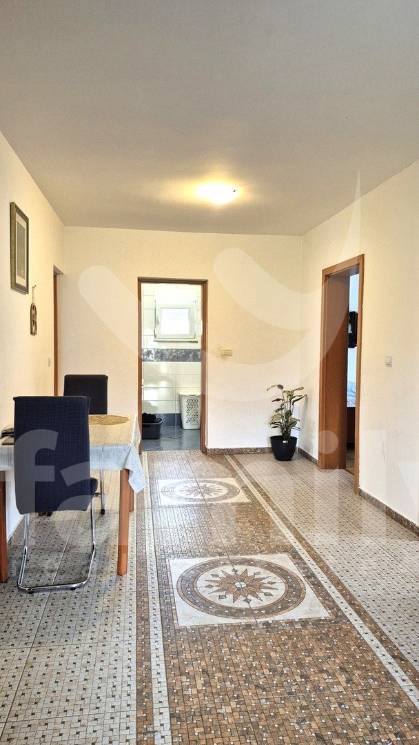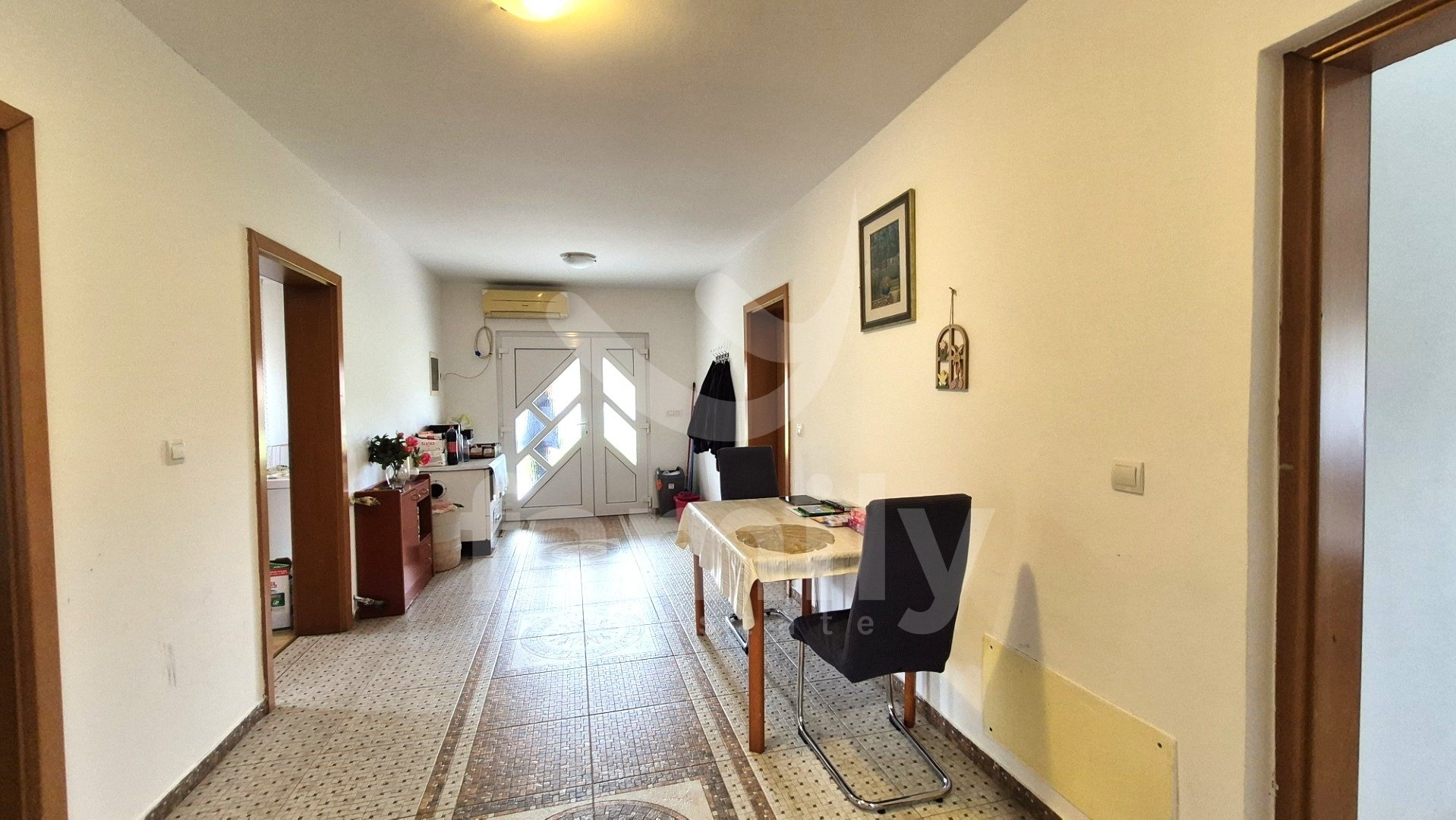 Entrando nella proprietà si accede a un ingresso estremamente spazioso. L'immobile dispone di una cucina funzionale, spaziosa e illuminata, con pavimenti completamente piastrellati in ceramica. Il soggiorno è previsto nella seconda parte come spazio separato, anch'esso soleggiato e dotato di due aperture che illuminano la luce del giorno. Anche questa parte è spaziosa e confortevole, con pavimenti rivestiti in laminato. La stanza menzionata è ora utilizzata come camera da letto e non come una stanza che potrebbe fungere da soggiorno. Alla fine dell'ampio e ampio corridoio si trova un comodo bagno completamente piastrellato in ceramica. Il bagno è dotato di cabina doccia, bidet e tutti i sanitari, con spazio per una lavatrice all'interno e un'apertura che illumina la luce del giorno, il che è sicuramente un vantaggio. L'immobile dispone anche di due camere da letto, una delle quali è estremamente spaziosa e l'altra leggermente più piccola. Tutti i pavimenti delle stanze sono rivestiti in laminato. L'intera proprietà è in ordine, ci vive una famiglia e ha anche un ampio potenziale per ulteriori decorazioni e ammodernamenti. L'intera proprietà è dotata di riscaldamento centralizzato nella prima fase, ma non sono stati installati radiatori. Tutte le aperture abitative e le porte d'ingresso sono in PVC bianco e sono dotate di tapparelle.
