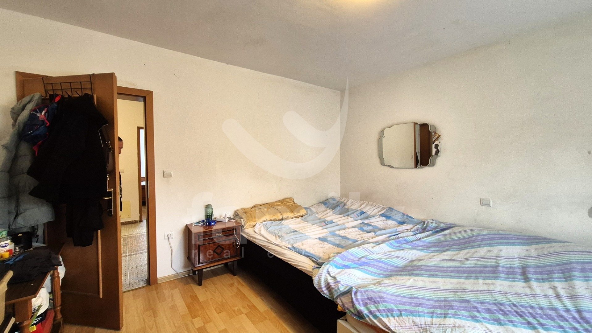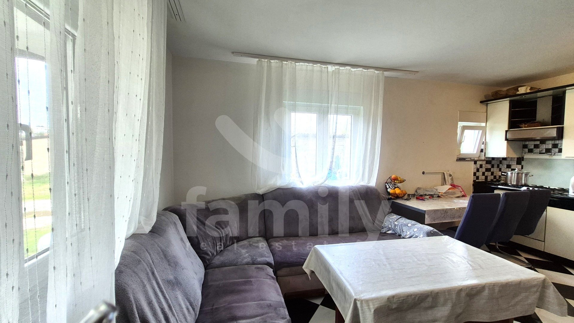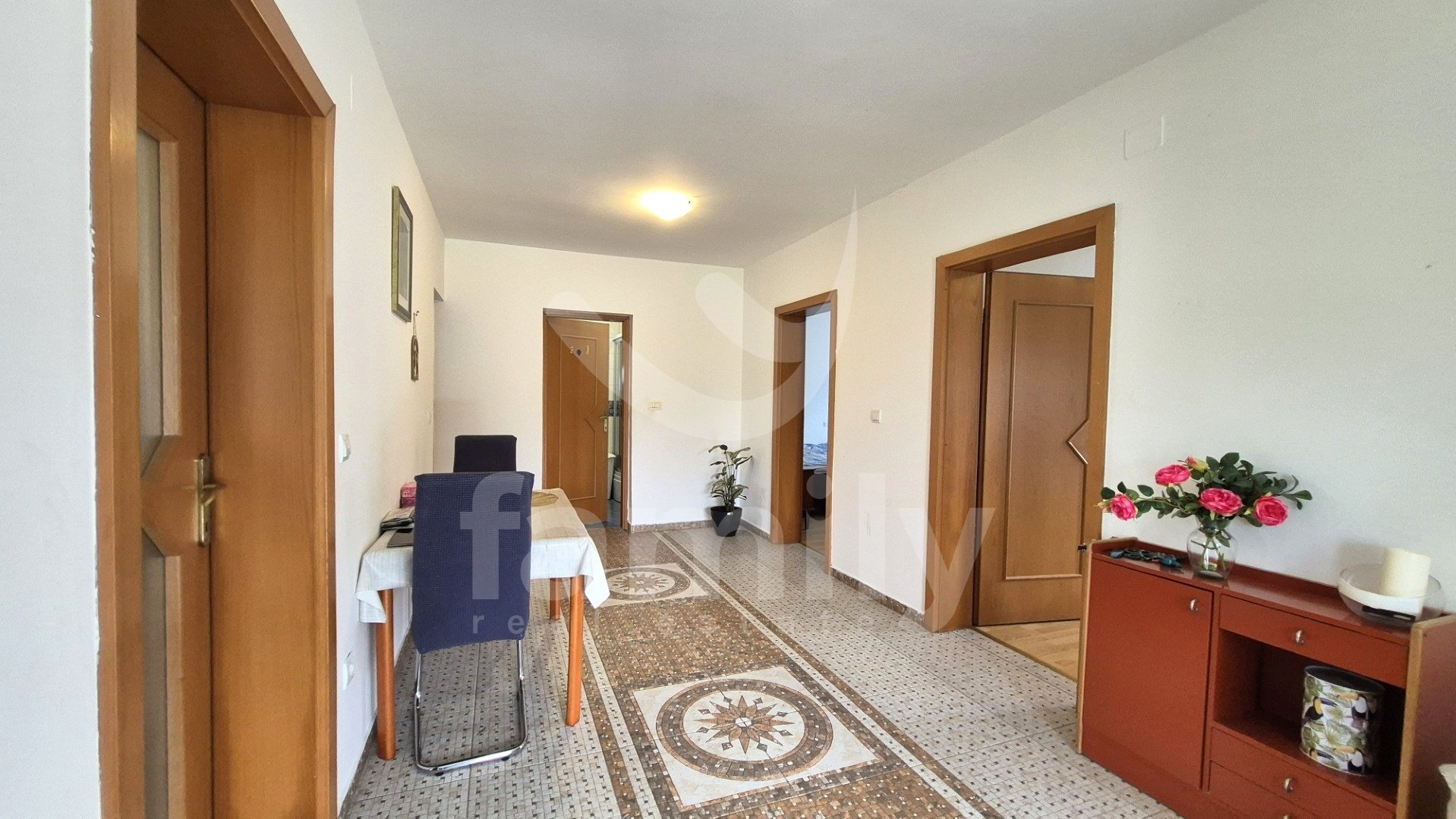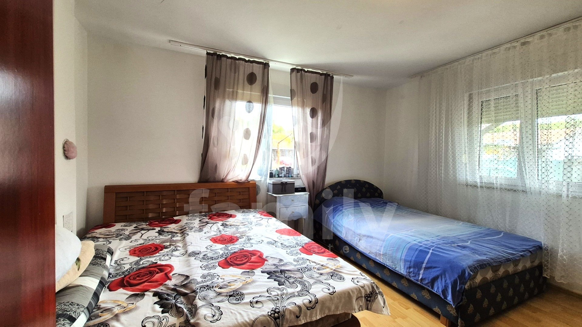 Entrando nella proprietà si accede a un ingresso estremamente spazioso. L'immobile dispone di una cucina funzionale, spaziosa e illuminata, con pavimenti completamente piastrellati in ceramica. Il soggiorno è previsto nella seconda parte come spazio separato, anch'esso soleggiato e dotato di due aperture che illuminano la luce del giorno. Anche questa parte è spaziosa e confortevole, con pavimenti rivestiti in laminato. La stanza menzionata è ora utilizzata come camera da letto e non come una stanza che potrebbe fungere da soggiorno. Alla fine dell'ampio e ampio corridoio si trova un comodo bagno completamente piastrellato in ceramica. Il bagno è dotato di cabina doccia, bidet e tutti i sanitari, con spazio per una lavatrice all'interno e un'apertura che illumina la luce del giorno, il che è sicuramente un vantaggio. L'immobile dispone anche di due camere da letto, una delle quali è estremamente spaziosa e l'altra leggermente più piccola. Tutti i pavimenti delle stanze sono rivestiti in laminato. L'intera proprietà è in ordine, ci vive una famiglia e ha anche un ampio potenziale per ulteriori decorazioni e ammodernamenti. L'intera proprietà è dotata di riscaldamento centralizzato nella prima fase, ma non sono stati installati radiatori. Tutte le aperture abitative e le porte d'ingresso sono in PVC bianco e sono dotate di tapparelle.