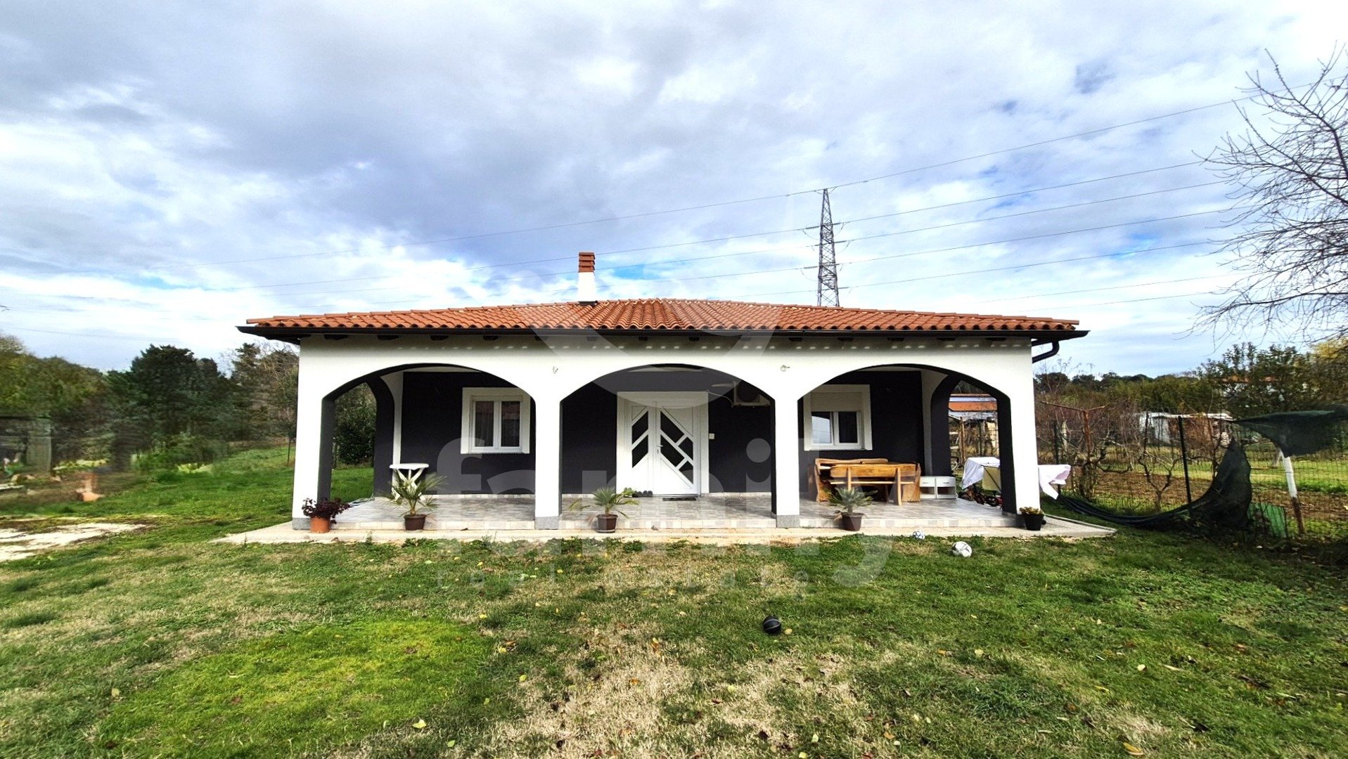 Proprio nella periferia di Pola, è in vendita una casa unifamiliare con una superficie totale di 135 m² con un ampio giardino in una posizione tranquilla. La proprietà indipendente, situata all'estremità del terreno, offre ulteriori possibilità di decorazione. Le aree verdi e un comodo parcheggio all'interno del terreno con una superficie totale di 971 m² rendono la proprietà davvero speciale. Il terreno è completamente recintato con una recinzione e parzialmente con un muro. All'ingresso del terreno c'è un cancello telecomandato.