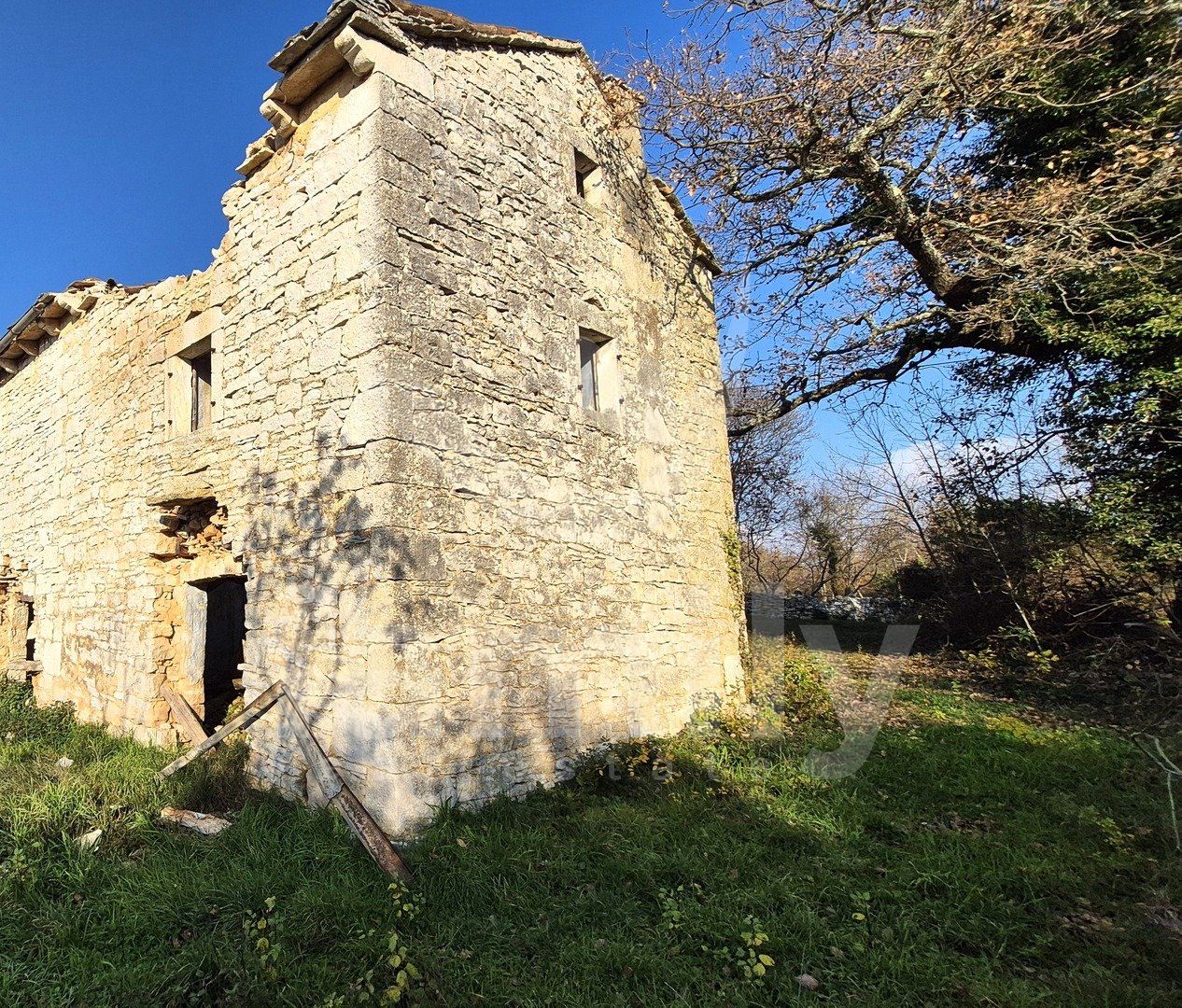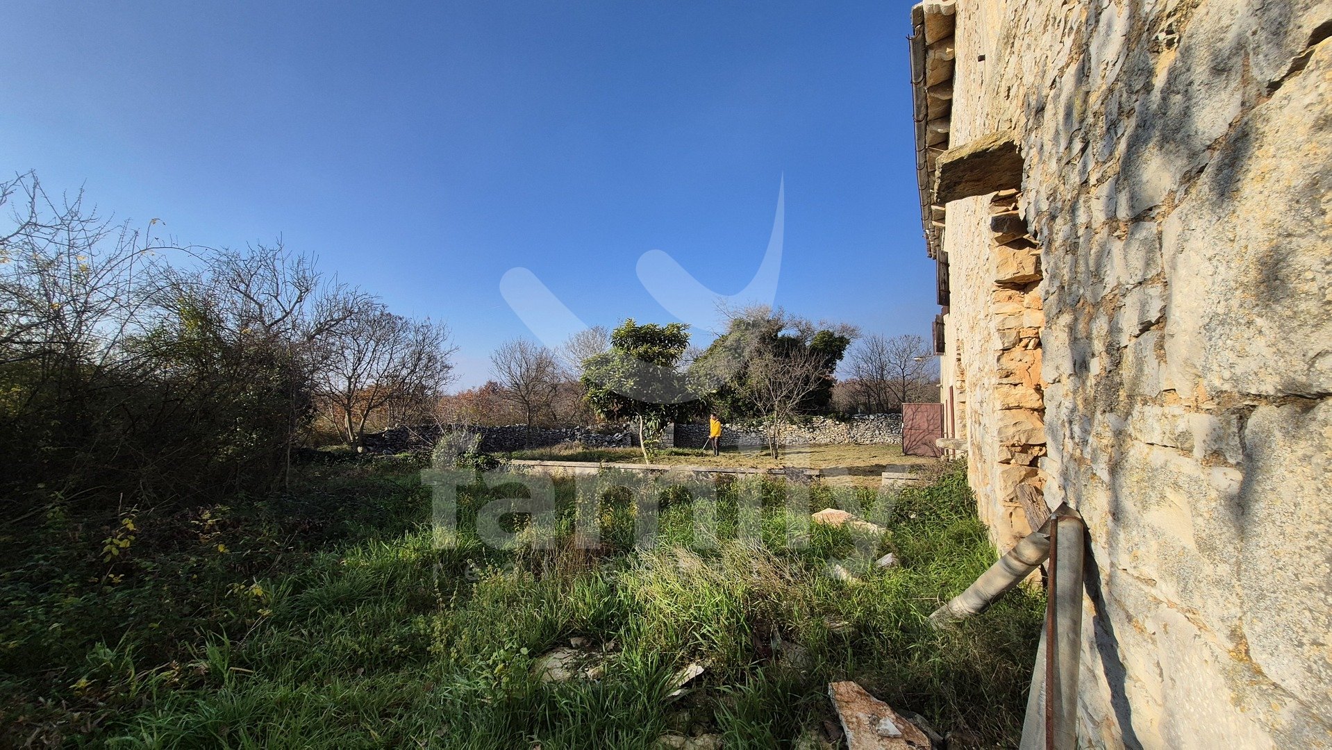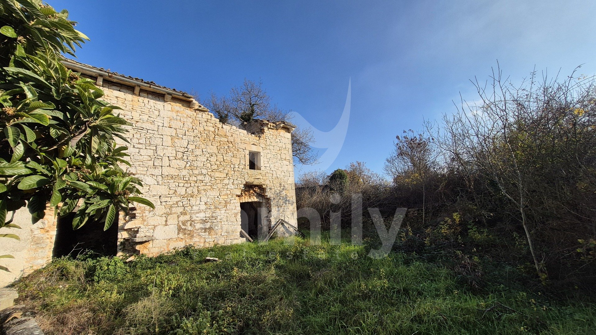 Non lontano da Vodnjan, è in vendita una spaziosa proprietà con una superficie totale di 29 794 m², di cui 3 602 m² edificabili. Il terreno dista solo 30 metri dalla strada asfaltata. Sul terreno si trova una casa bifamiliare in pietra con una superficie totale di 75 m², distribuita tra piano terra, primo piano e mansarda, per una superficie abitabile di circa 200 m². Di fronte alla proprietà si trova un'area verde estremamente spaziosa. Il terreno è posizionato in leggera pendenza, offrendo una vista aperta e dal piano terra si può vedere parzialmente il mare. A circa 20 metri dalla casa si trova un altro edificio parzialmente in pietra, adibito a fienile, con una superficie totale di 90 m². Di fronte alla proprietà si trova anche un casone estremamente spazioso, con una superficie totale di circa 10 m². Il terreno è caratterizzato da basse querce, mentre il resto è adibito a pascolo e vigneto. Grazie all'elevato numero di muri a secco, il terreno è recintato con una grande quantità di pietre. Accanto alla proprietà è presente anche una cisterna per l'acqua. Tutti gli immobili sono dotati di certificato di costruzione precedente al 1968.