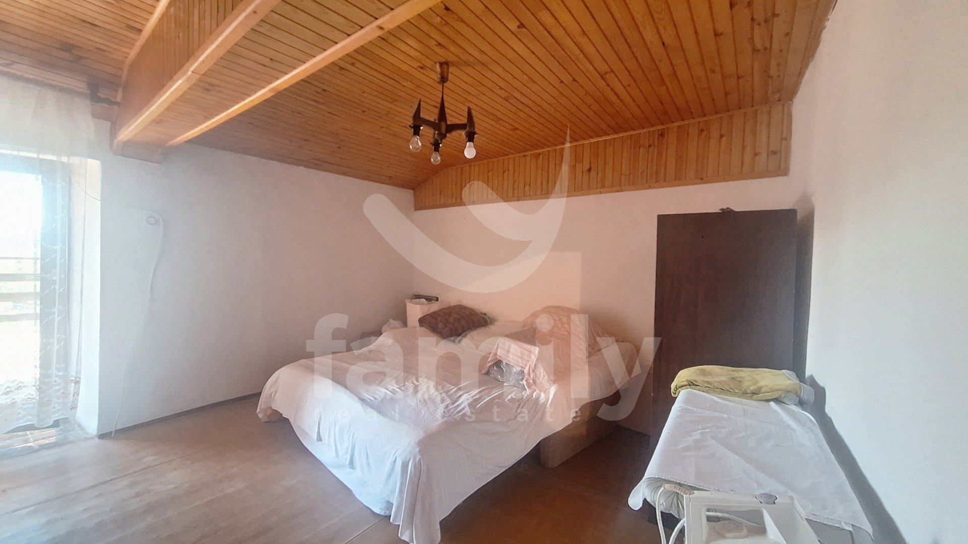 Al piano terra si trova una taverna tradizionale, perfetta per socializzare, degustare prodotti locali o trasformarla in una sala rustica secondo i vostri desideri. La scala conduce alla casa, che dispone di una splendida cucina con zona pranzo, un ampio soggiorno con una grande camera da letto, un bagno e un pratico WC. Una scala interna conduce al piano superiore, che comprende altre due spaziose camere da letto che offrono molta luce e comfort, e c'è anche un ampio balcone, ideale per il caffè del mattino, godersi la vista sulla natura circostante o rilassarsi nelle calde serate estive. Il riscaldamento e il raffreddamento sono regolati da un condizionatore, i pavimenti sono rivestiti in laminato e piastrelle in ceramica e gli infissi in legno sono installati in tutto l'edificio.