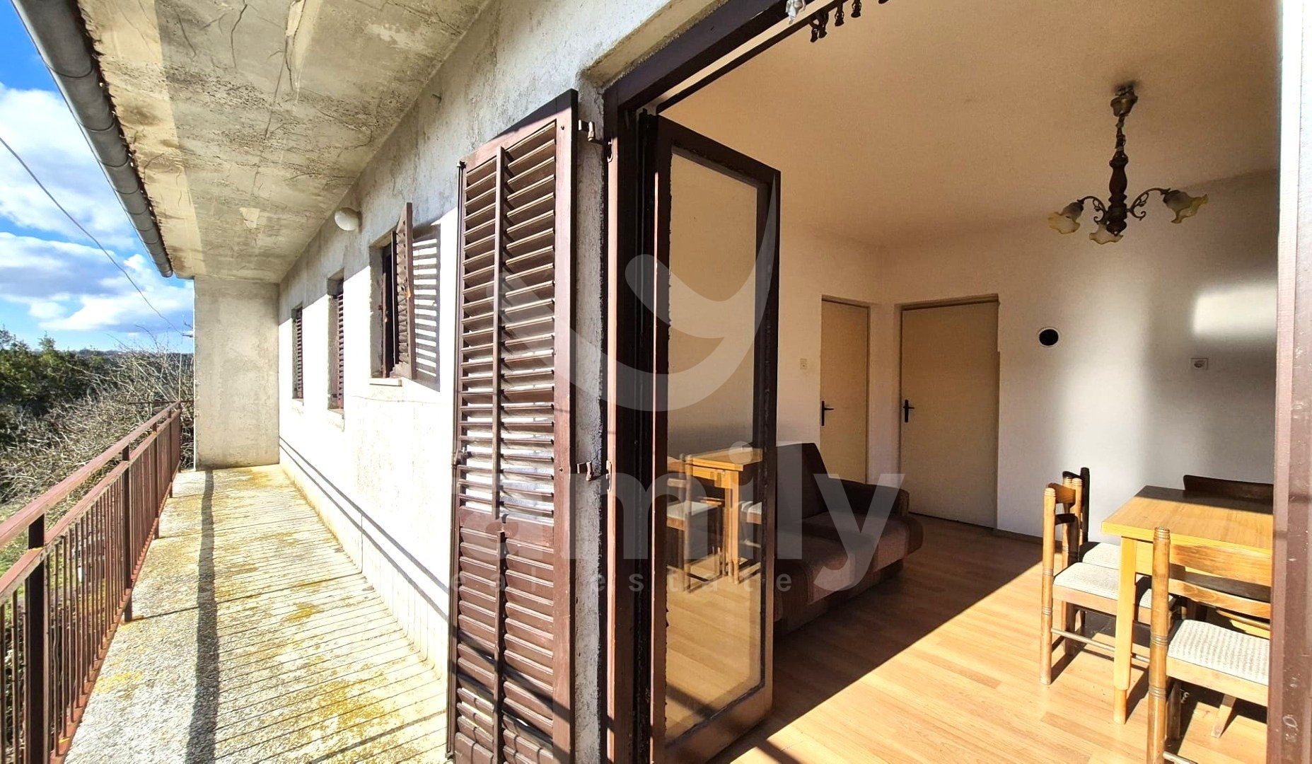 In vendita una casa indipendente situata in una posizione estremamente tranquilla e piacevole vicino a Pisino, con una superficie totale di 260 m². La casa è composta da piano terra, primo piano e mansarda. Al primo piano si trovano tre camere da letto, di cui una più piccola, un ampio soggiorno collegato alla cucina e alla sala da pranzo, e due balconi, uno dei quali è molto lungo e offre molta luce naturale e una splendida vista. L'ampio ingresso che collega la zona giorno con la zona notte offre anche spazio per un grande armadio a muro e un ripostiglio. La casa è dotata di infissi in legno con persiane. La pavimentazione è una combinazione di piastrelle in ceramica nella zona giorno e nel bagno e laminato nelle camere da letto. Nella zona giorno troviamo un camino e un condizionatore d'aria che riscalda e raffresca l'intero primo piano della casa.