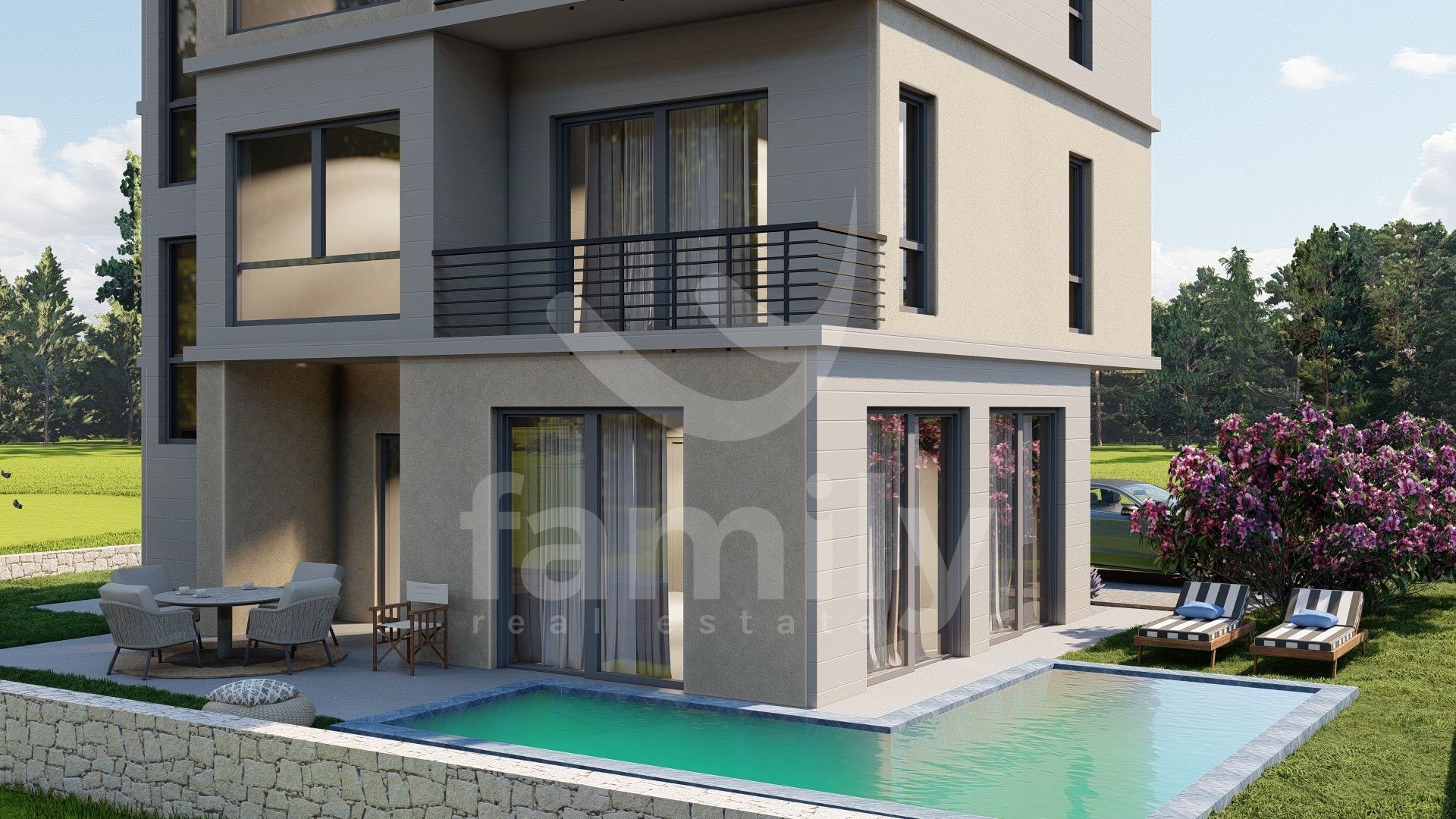 L'offerta comprende un appartamento al piano terra di un piccolo edificio residenziale attualmente in costruzione, composto da un totale di tre unità abitative. Il progetto è stato concepito secondo i moderni standard edilizi, con particolare attenzione alla qualità costruttiva, alla funzionalità e al valore a lungo termine dell'immobile. L'appartamento al piano terra, di 45 m², sarà composto da soggiorno, cucina, una confortevole camera da letto e un bagno. Un valore aggiunto a questa proprietà è dato dalla piscina privata di 20 m², che offre un ulteriore tocco di lusso e comfort, ideale per godersi la bella stagione. L'appartamento dispone inoltre di un posto auto privato. Il riscaldamento sarà a pavimento nel soggiorno e nel bagno e in tutto l'edificio saranno installati rivestimenti ceramici di qualità. Gli infissi in PVC color antracite saranno installati sulle aperture del soggiorno e le tapparelle elettriche saranno installate sulle pareti scorrevoli, il che contribuirà ulteriormente al comfort, alla funzionalità e all'aspetto moderno dell'immobile. L'edificio è progettato con una struttura in cemento armato, che garantisce stabilità e durata nel tempo.