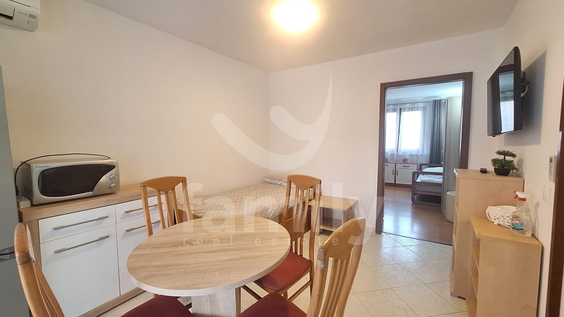 To čudovito enosobno stanovanje v prvem nadstropju velikosti 37 m2 se nahaja v občini Fažana v naselju Valbandon. Stanovanje se nahaja v manjši družinski hiši na manj prometni ulici, stanovanje pa sestavlja skupni vhodni prostor z drugo stanovanjsko enoto, prostorna in svetla dnevna soba s kuhinjo in jedilnico, kopalnica, velika spalnica, skupni balkon in shramba na zaprtem stopnišču, s katerega se dostopa do stanovanjske enote. Poleg stanovanjskega dela ima tudi eno parkirno mesto, nahaja pa se zelo blizu vseh spremljajočih objektov, sprehajališč, igrišč, trgovin, čudovitih plaž, središča naselja in nedaleč od središča Pulja. Kot je razvidno, ima stanovanje novo PVC stavbno pohištvo, eno klimatsko napravo in se oddaja popolnoma opremljeno z vsemi gospodinjskimi aparati in elementi.