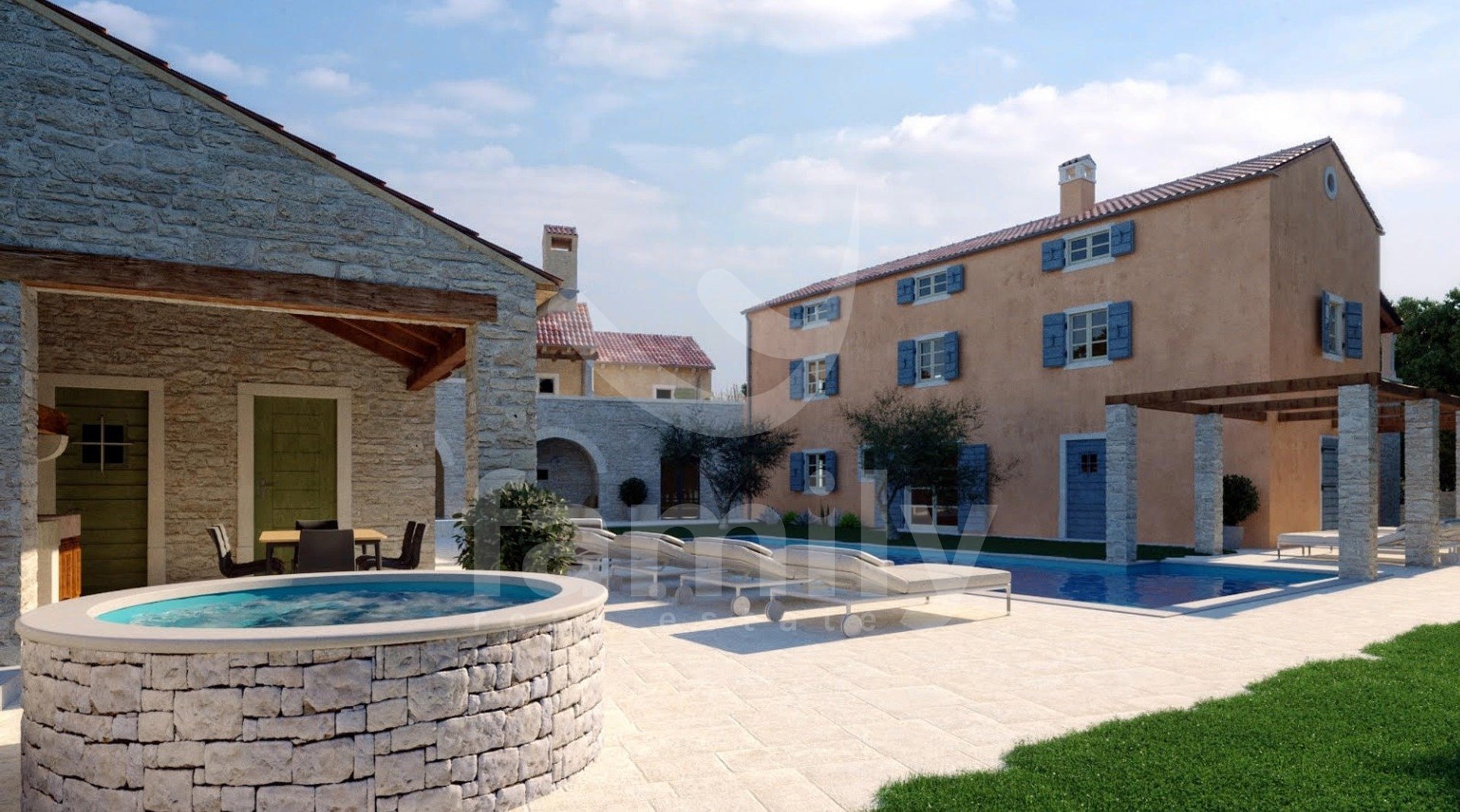 Rustikalna nepremičnina je lahko kompleks kamnitih hiš za namene turizma ali družinskega življenja oziroma za ukvarjanje s turistično-kmetijsko dejavnostjo, družinsko kmetijo in podobno.