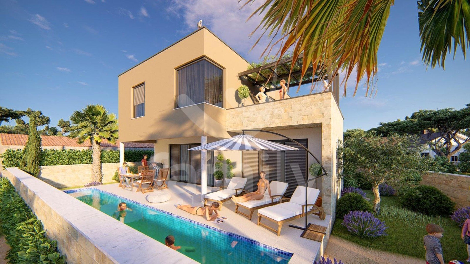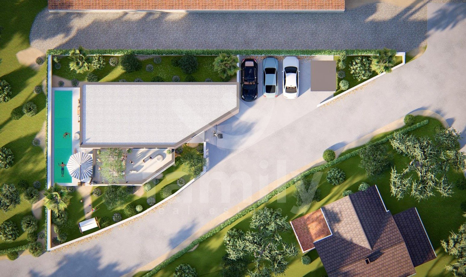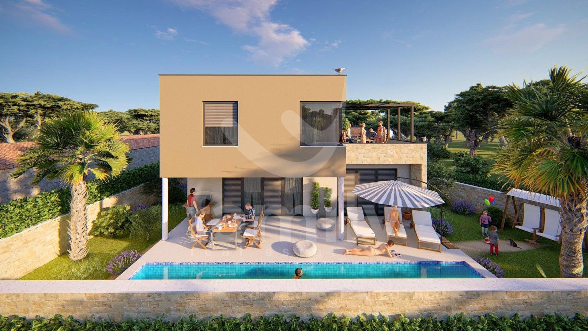 V Šišanu se prodaja hiša v gradnji s skupno bivalno površino 243 m2. Nahaja se na parceli velikosti 506 m2 kot samostojna stavba, ki jo sestavljata pritličje in prvo nadstropje. Je moderne gradnje, pri gradnji so bili uporabljeni vrhunski materiali in PVC okna. Pritličje je odprtega tlorisa in vsebuje kuhinjo z jedilnico in dnevnim prostorom z dostopom do terase in bazena, dve spalnici in kopalnico.