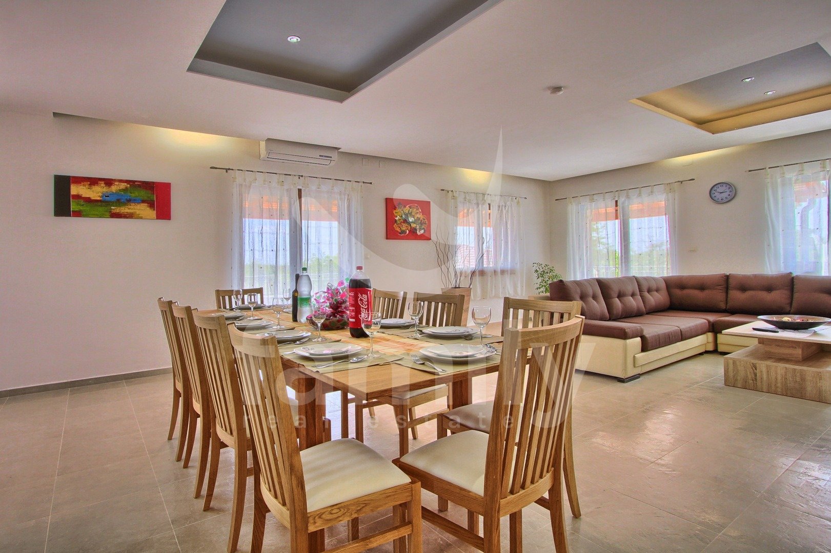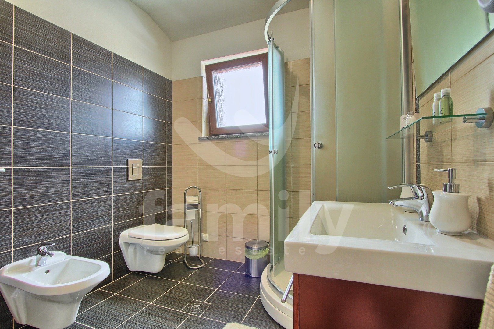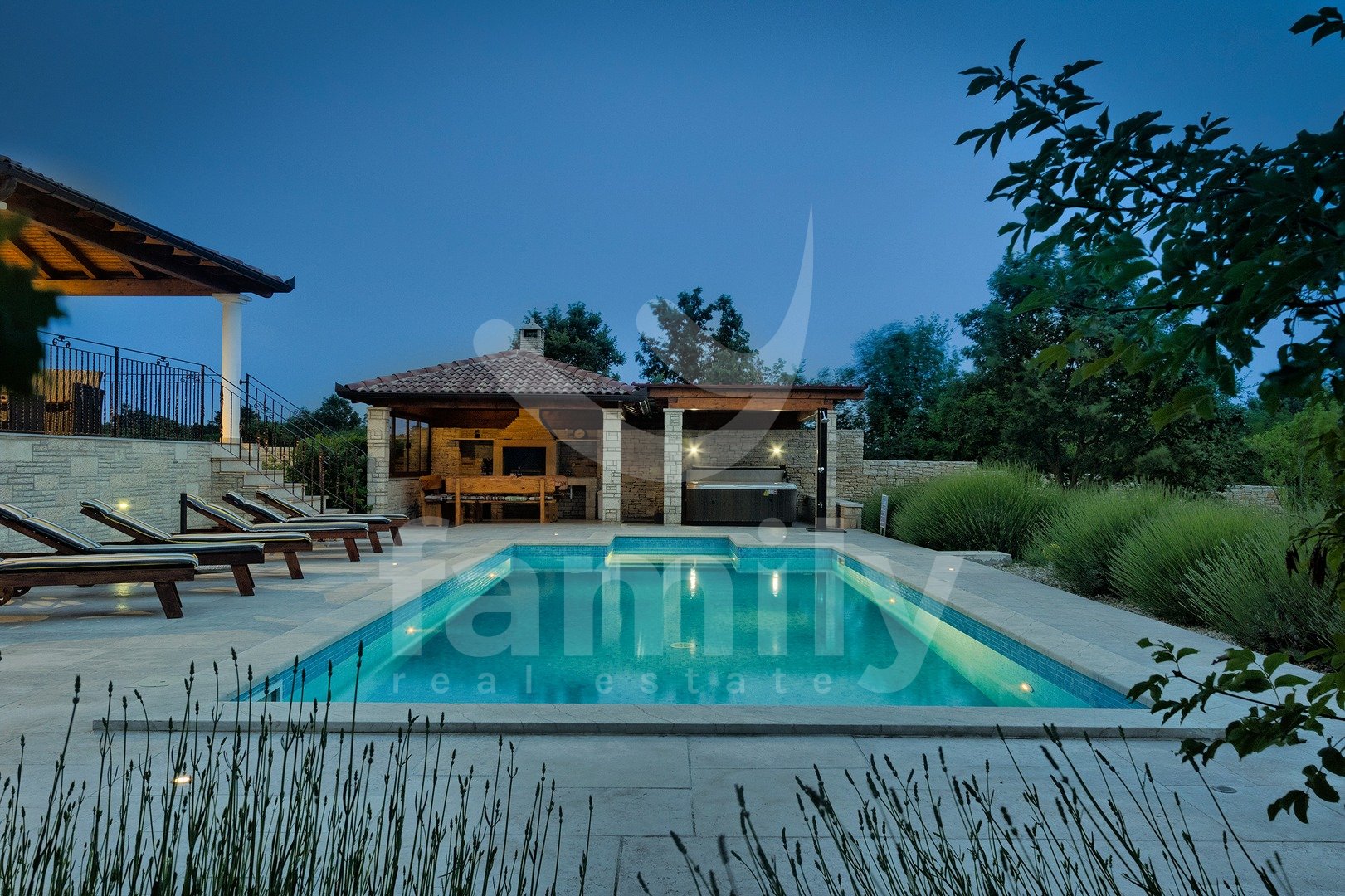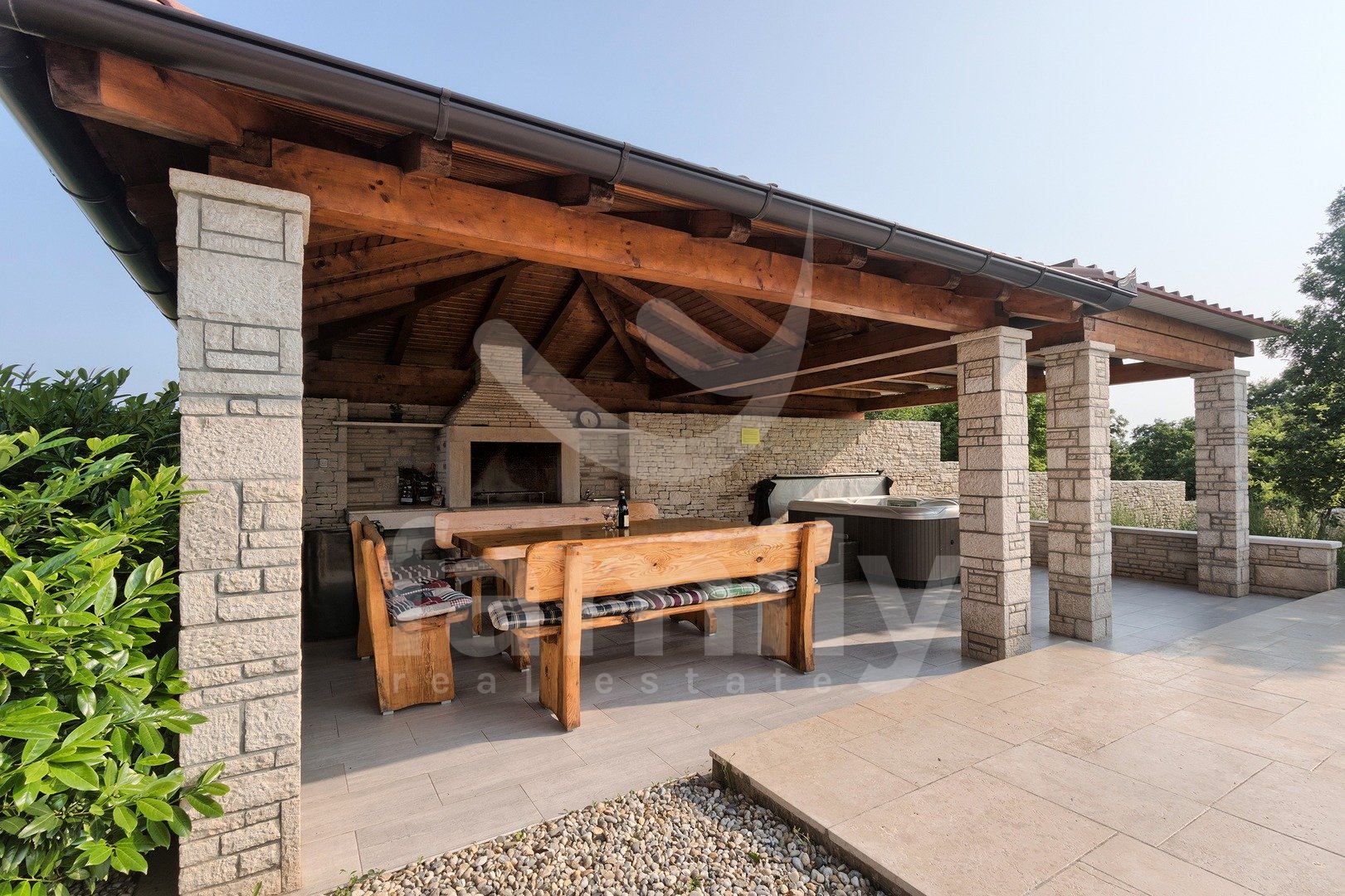 Tik v bližini Svetvinčenta se nahaja ta skrbno zasnovana luksuzna vila v mirni vasici Štokovci, velika 294 m2, ki predstavlja popolno kombinacijo sodobnega dizajna, energetske učinkovitosti in udobja. Stavba ima energetski certifikat A+, zahvaljujoč visokokakovostni izolaciji (10 cm grafitnega polistirena) in troslojnemu PVC stavbnemu pohištvu z nizkoemisijskim plinskim steklom, ki znatno zmanjšuje stroške ogrevanja in hlajenja. Stavba je opremljena s centralnim ogrevanjem, vsaka soba pa ima klimatsko napravo, kar zagotavlja udobje skozi vse leto. Vila se nahaja na prostorni in zelo premišljeno zasnovani parceli velikosti 2000 m2.