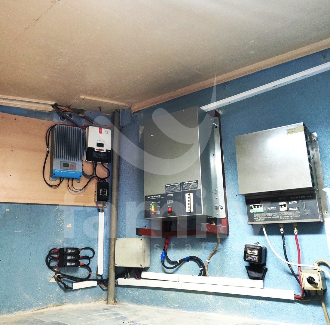Celotna nepremičnina je energetsko zavarovana s 24 novimi sončnimi paneli z baterijami moči 70 kW, kar znatno zmanjša stroške električne energije in zagotavlja trajnostno energetsko neodvisnost. Gradbeni materiali vključujejo termo fasado, betonske bloke in PVC stavbno pohištvo, streha pa je iz visokokakovostne pločevine. Ogrevanje je zagotovljeno s pečjo na drva in invertersko klimatsko napravo, kar omogoča udobno bivanje skozi vse leto. Na voljo je tudi greznica s prostornino 40 kubičnih metrov.