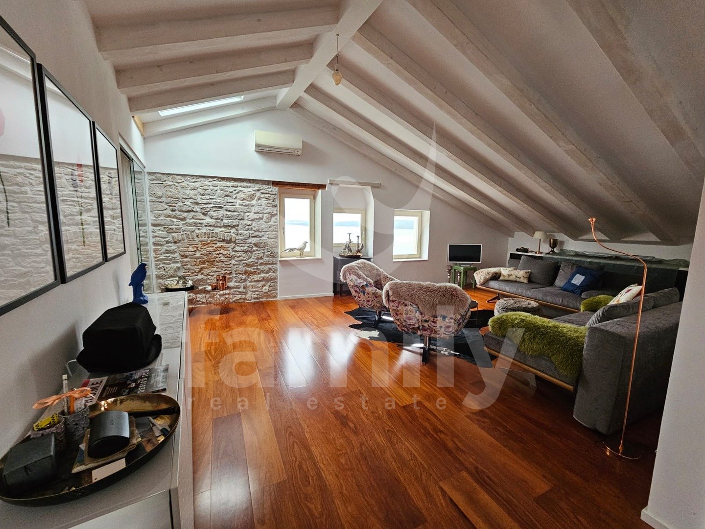 To čudovito 101 m² veliko stanovanje se nahaja v Rovinju, v samem središču Rovinja. Kombinacija rustikalnega šarma in modernega dizajna ga dela izjemno privlačnega, idiličen, neposreden pogled na morje, z lego, ki jo upravičeno lahko imenujemo prva vrsta ob morju, pa ponuja izkušnjo, ki jo lahko ponudi le malo stanovanj.