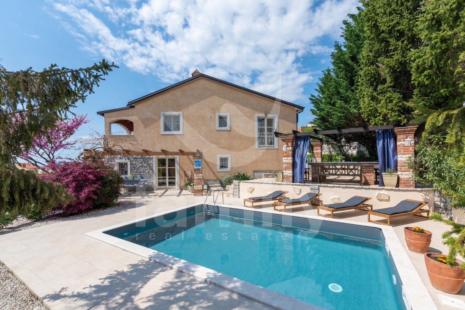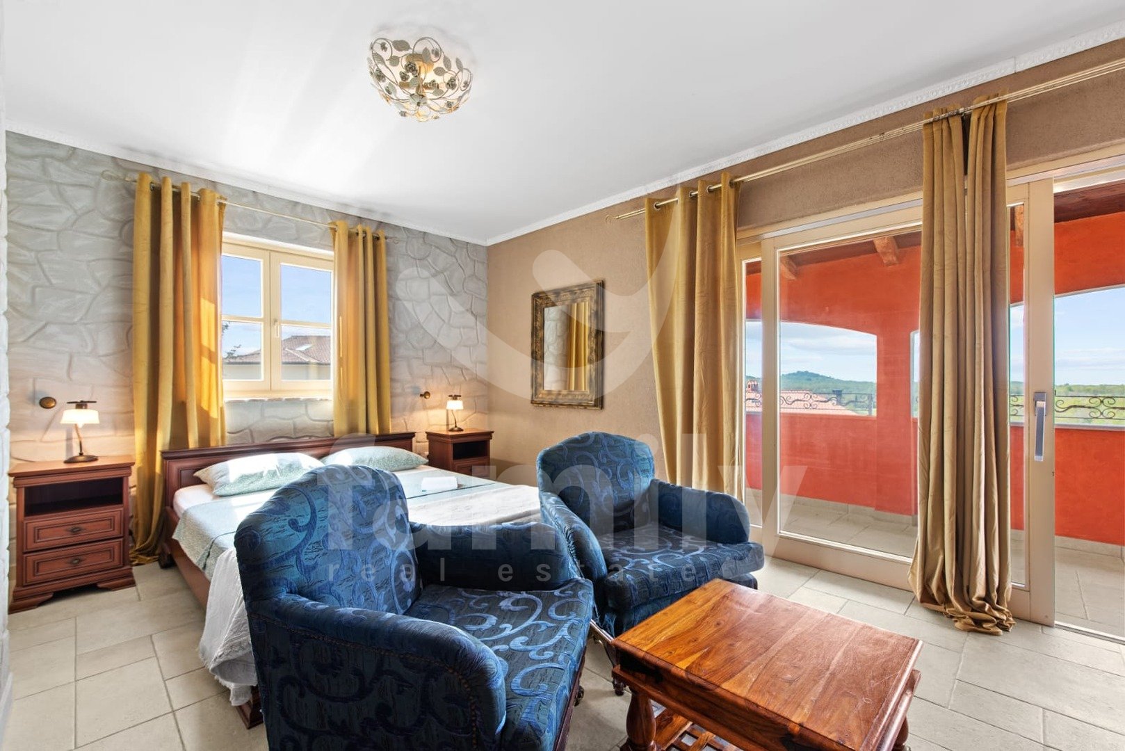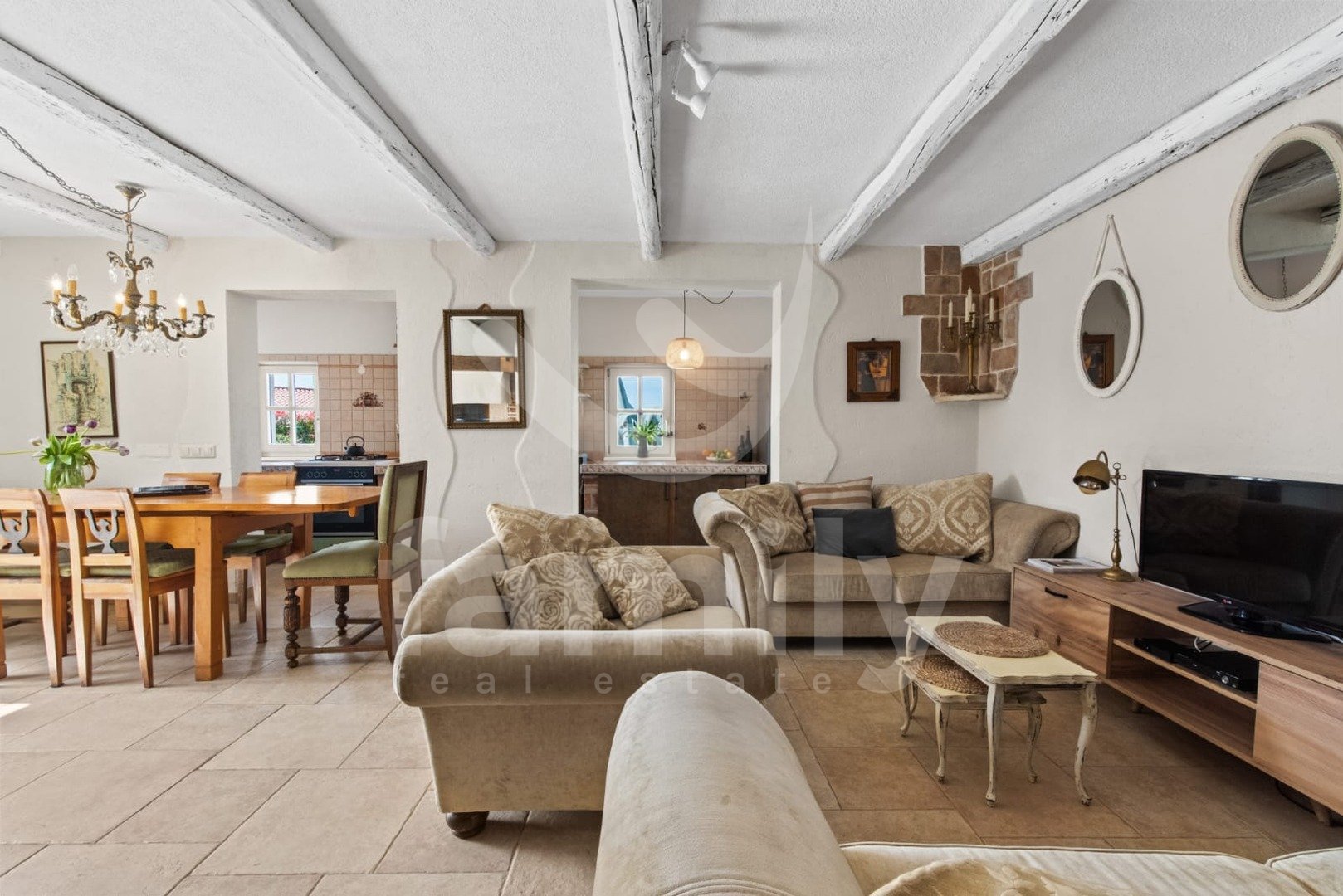 Le 4 km od mesta Poreč in njegovih čudovitih plaž se nahaja ta čudovita, samostojna mediteranska hiša. Ta očarljiva hiša je idealna za mirno in sproščujoče življenje, saj se nahaja v mirnem in urejenem naselju. Celotna parcela je obdana z okrasnimi rastlinami in lepo ograjo, kar ji zagotavlja dodatno zasebnost. Hiša se razprostira na površini 180 m² in ponuja prostorno dnevno sobo v pritličju, idealno za družinska srečanja, z odprtim prostorom do jedilnice in popolnoma opremljeno kuhinjo za skupne obroke. V istem prostoru se nahaja tudi tradicionalni istrski kamin za zimsko vzdušje. Ta skupni prostor ima dostop do urejenega vrta z bazenom in žarom. V pritličju se nahaja tudi ena spalnica s francosko teraso in dostopom do vrta. Prostoren hodnik s stopnicami vodi v prvo nadstropje. Zelo praktični prostori v pritličju sta dve popolnoma opremljeni kopalnici, ena se nahaja na hodniku, druga pa ločeno v skupnem dnevnem prostoru.