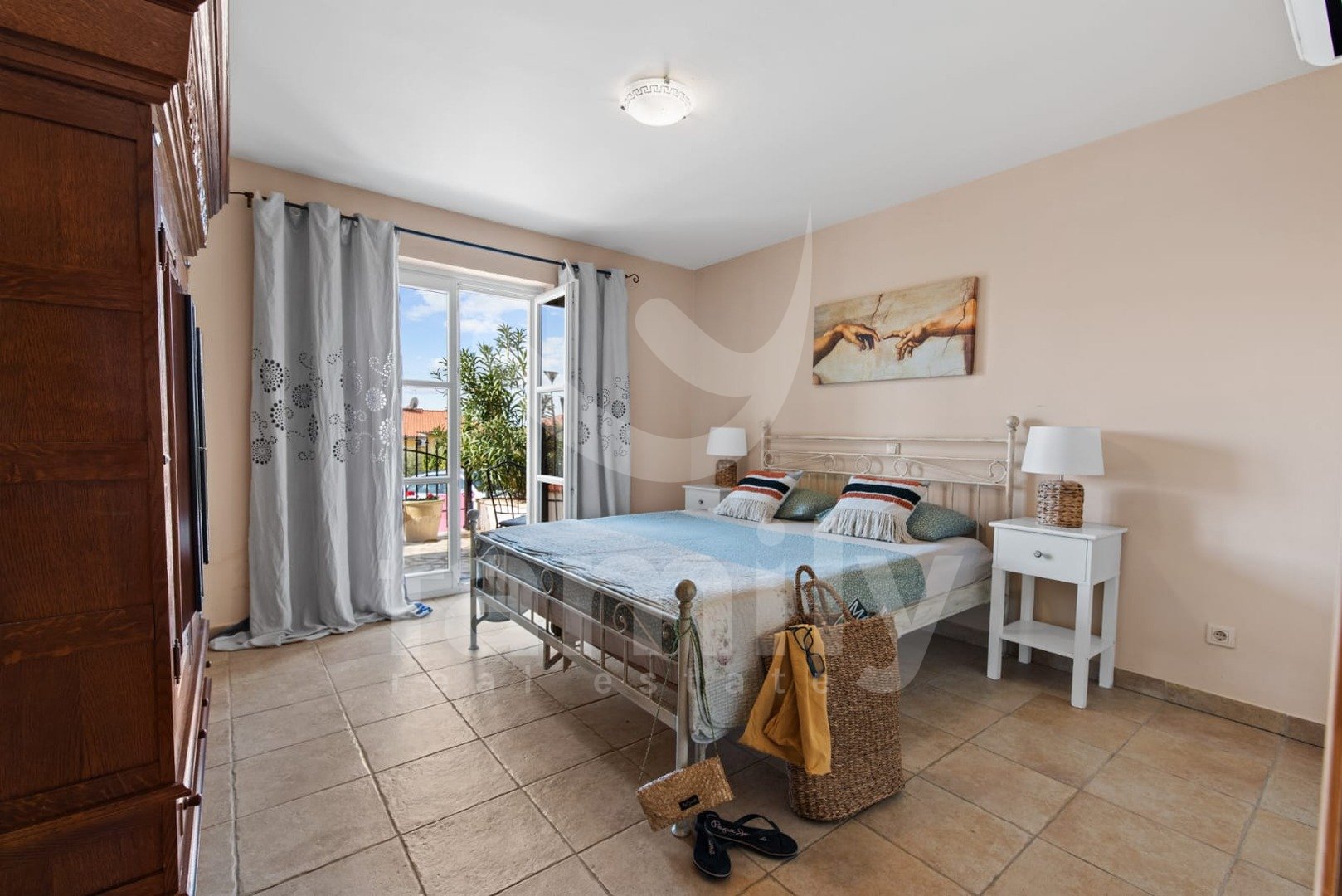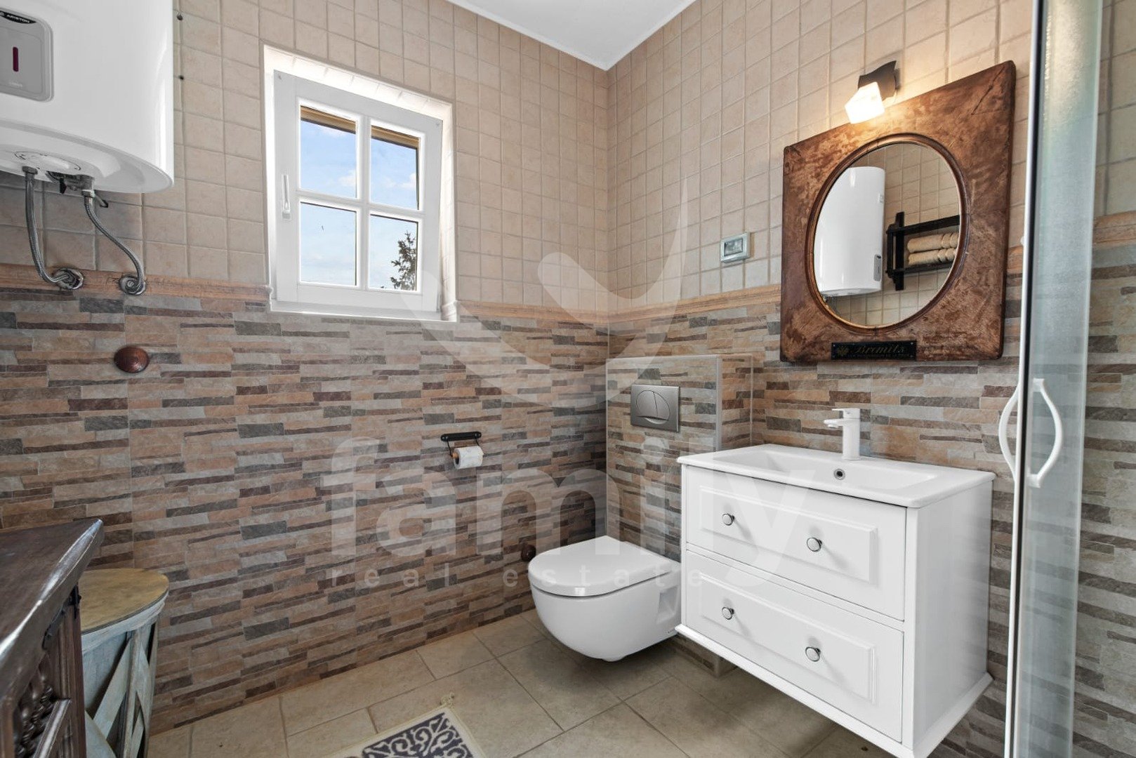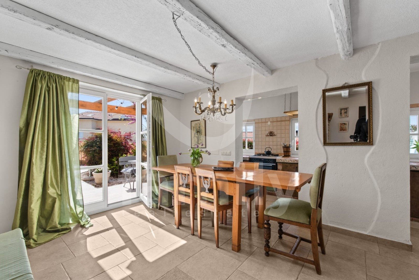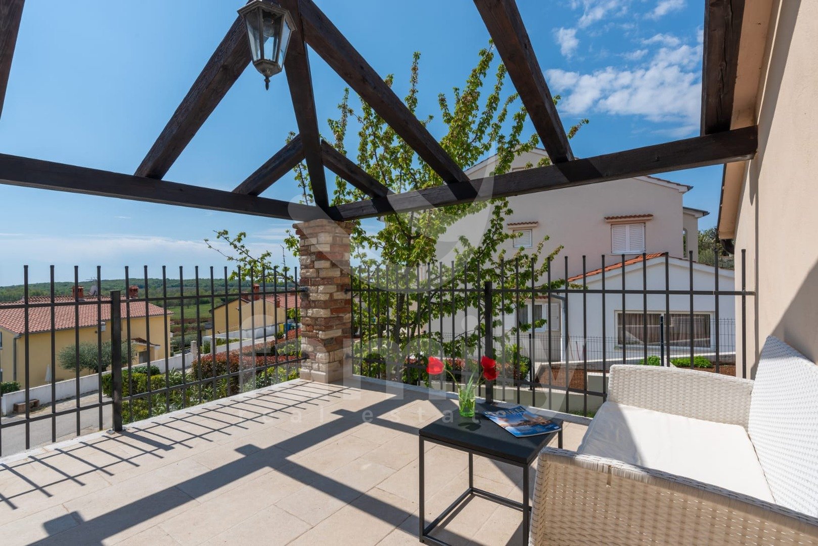 Le 4 km od mesta Poreč in njegovih čudovitih plaž se nahaja ta čudovita, samostojna mediteranska hiša. Ta očarljiva hiša je idealna za mirno in sproščujoče življenje, saj se nahaja v mirnem in urejenem naselju. Celotna parcela je obdana z okrasnimi rastlinami in lepo ograjo, kar ji zagotavlja dodatno zasebnost. Hiša se razprostira na površini 180 m² in ponuja prostorno dnevno sobo v pritličju, idealno za družinska srečanja, z odprtim prostorom do jedilnice in popolnoma opremljeno kuhinjo za skupne obroke. V istem prostoru se nahaja tudi tradicionalni istrski kamin za zimsko vzdušje. Ta skupni prostor ima dostop do urejenega vrta z bazenom in žarom. V pritličju se nahaja tudi ena spalnica s francosko teraso in dostopom do vrta. Prostoren hodnik s stopnicami vodi v prvo nadstropje. Zelo praktični prostori v pritličju sta dve popolnoma opremljeni kopalnici, ena se nahaja na hodniku, druga pa ločeno v skupnem dnevnem prostoru.