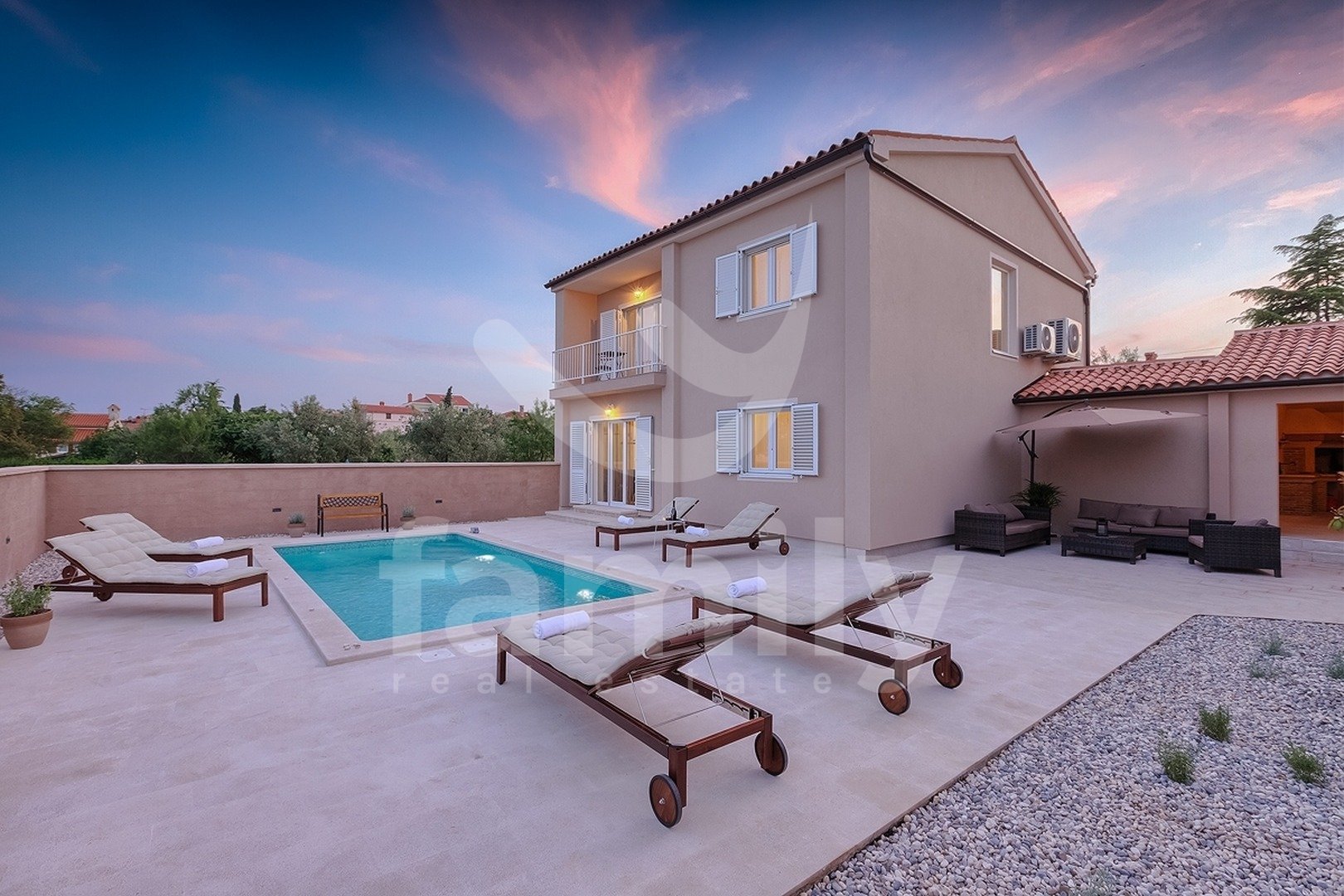 Omenjena vila glede na svojo površino, število spalnic, zunanji prostor z bazenom, konobo, bližino morja in vse spremljajoče objekte (kot so trgovine, lekarne, šole, vrtci itd.) predstavlja zelo zanimivo, odlično in donosno nepremičnino za bodočega lastnika, tako z vidika družinskega življenja za veliko družino kot tudi za ukvarjanje z gostinsko in oddajno dejavnostjo ter hitrim donosom naložbe.