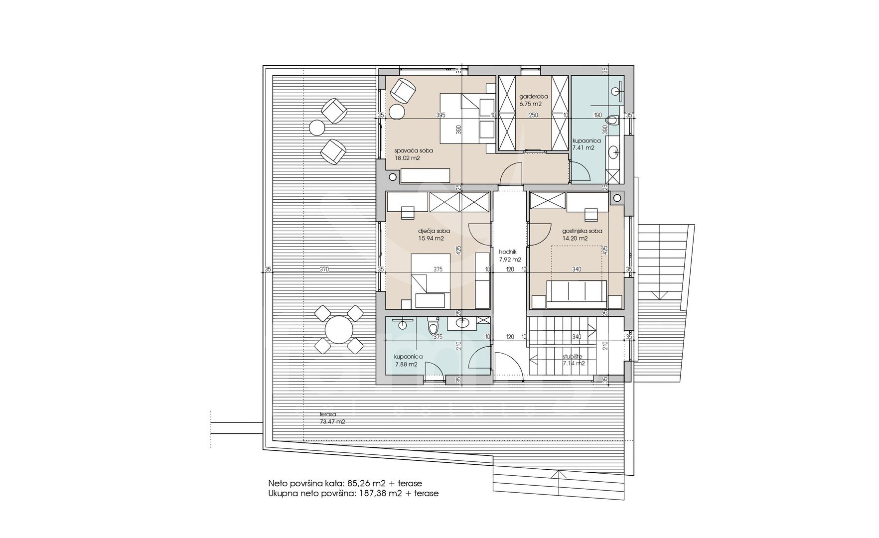 Ta prostorna, privlačna gradbena parcela velikosti 1960 m2 se nahaja v Banjolah, le 290 metrov od morja. Parcela je pravilne oblike z urejeno dostopno cesto in priključki v bližini. Gradbeno dovoljenje za čudovito vilo z bazenom je pridobljeno in je pravnomočno, ta čudovita vila pa bi se po projektu raztezala v dveh nadstropjih, v pritličju bi bila prostorna dnevna soba s kuhinjo in jedilnico, kopalnica, dve prostorni shrambi, pralnica in prostorna terasa z žarom, v prvem nadstropju pa bi bile tri spalnice z dvema kopalnicama in prostorna terasa velikosti 70 m2. Sobe v pritličju so dovolj velike, da jih je mogoče po potrebi ali želji preurediti v spalnice. Na parceli je predvideno parkirišče za štiri parkirna mesta, 35 m2 velik bazen in del zemljišča, ki bi predstavljal zeleno površino. Priključki so kanalizacija na parceli, prav tako voda, elektrika je oddaljena nekaj metrov, komunalne storitve pa so tudi plačane. Lokacija je idealna, glede bližine morja in plaž ter vsega potrebnega za vsakdanje življenje.