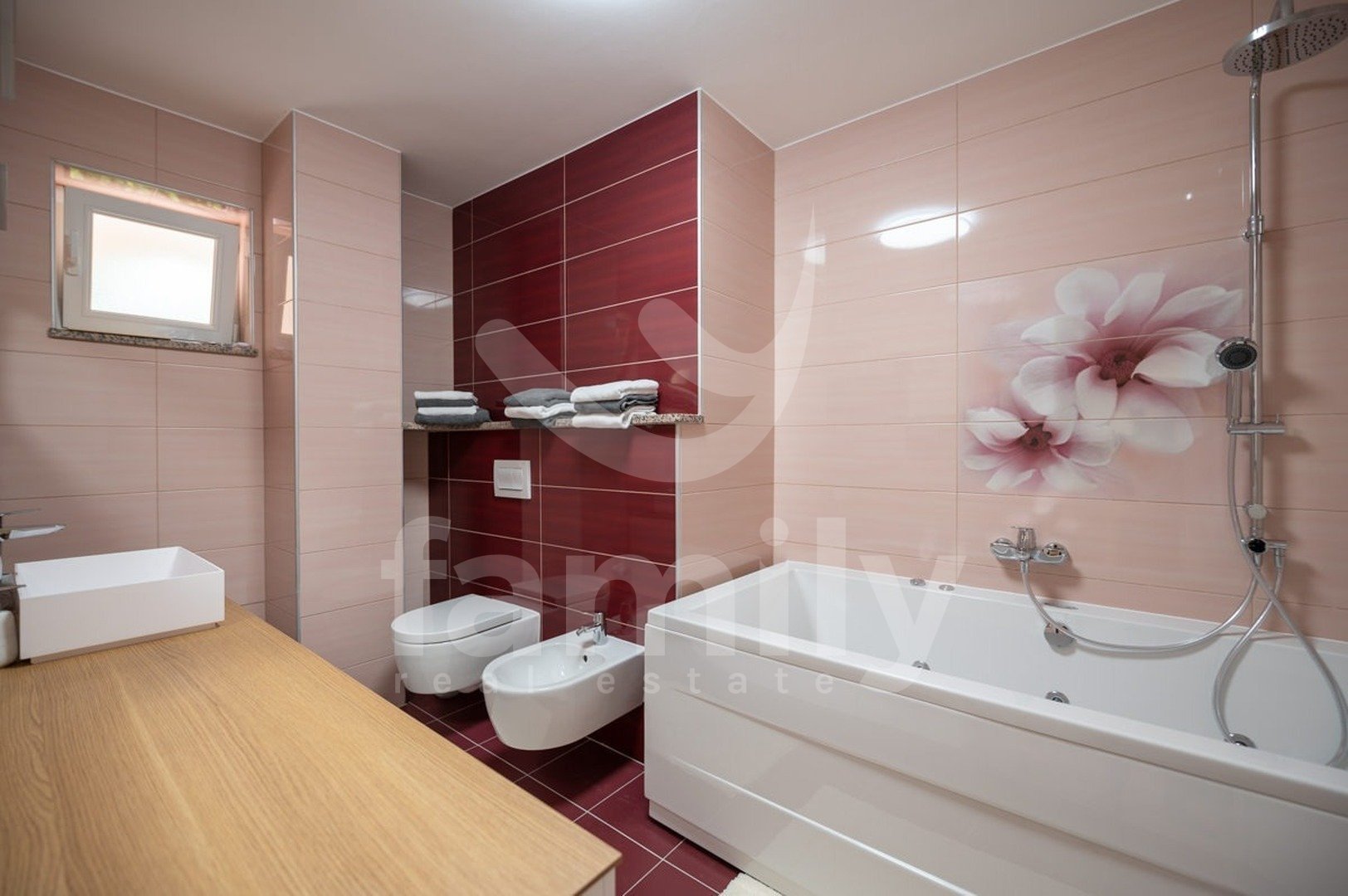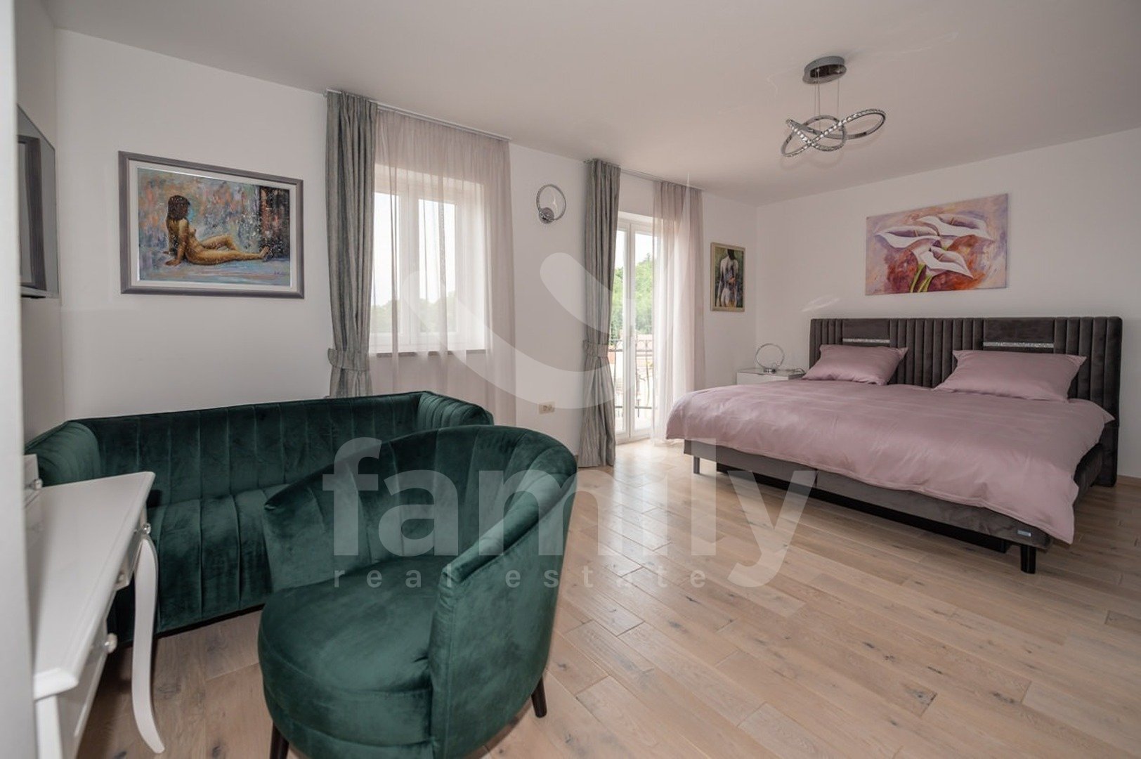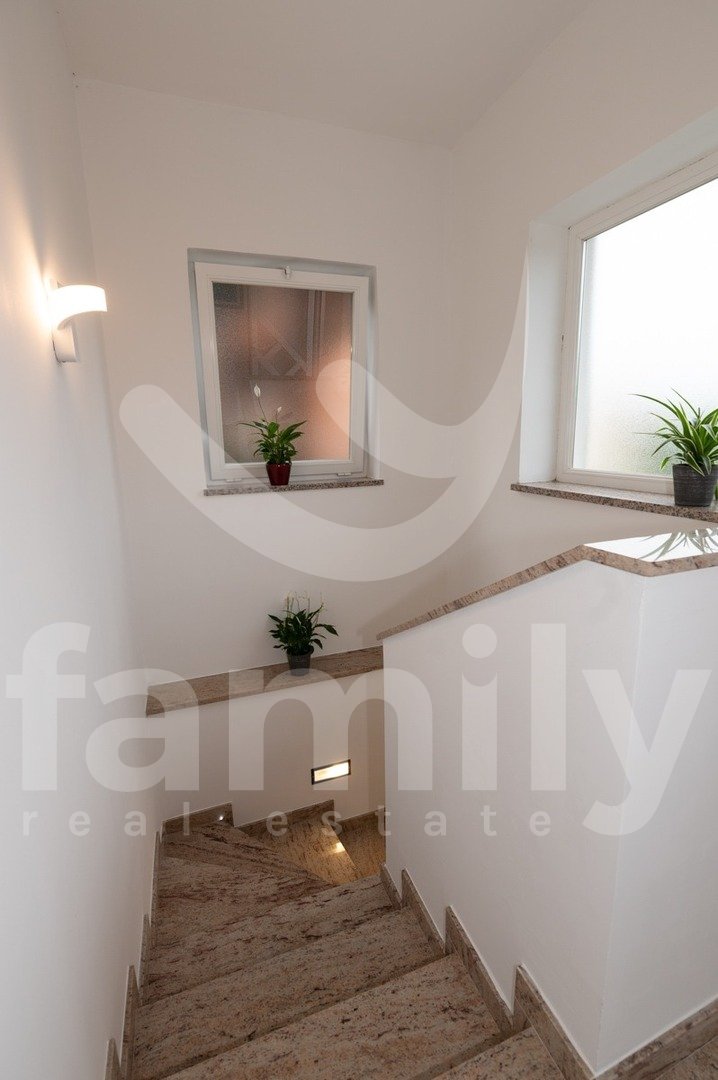Celotna stavba je opremljena s 7 klimatskimi napravami, satelitsko anteno in domofonom, vsa tla pa so obložena s kakovostno keramiko, stopnišče pa je prav tako obloženo z granitnimi ploščami. Celotno dvorišče je v celoti obdano z zidovi, vrt pa je hortikulturno urejen in vzdrževan z ljubeznijo. Bazen v čudovitem okolju obsega skupno 32 m2. V omenjeni nepremičnini zagotovo nudimo udobje in lepo dekoracijo. Garaža je dovolj velika za štiri avtomobile, nepremičnina pa ponuja tudi zunanja parkirna mesta.