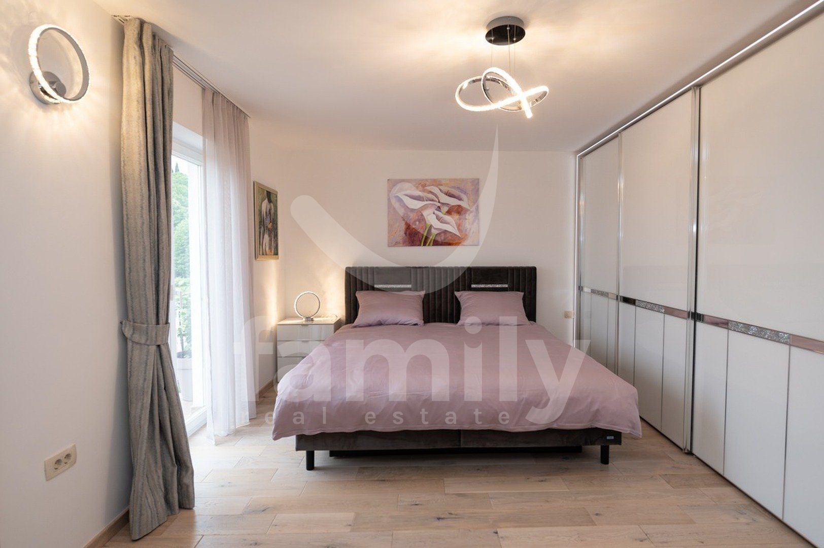 V majhnem naselju znotraj občine Matulji se na mirni lokaciji prodaja vila s skupno neto bivalno površino 430 m2, ki se razprostira v treh nadstropjih, dveh ločenih apartmajih z uveljavljeno turistično dejavnostjo oddajanja nepremičnin. Nepremičnina se nahaja na parceli velikosti 870 m2. V kleti se nahajajo garaža, utility, pralnica in kurilnica. Ogrevanje je urejeno s pečjo na kurilno olje z najnovejšo ekološko pečjo Viessman.