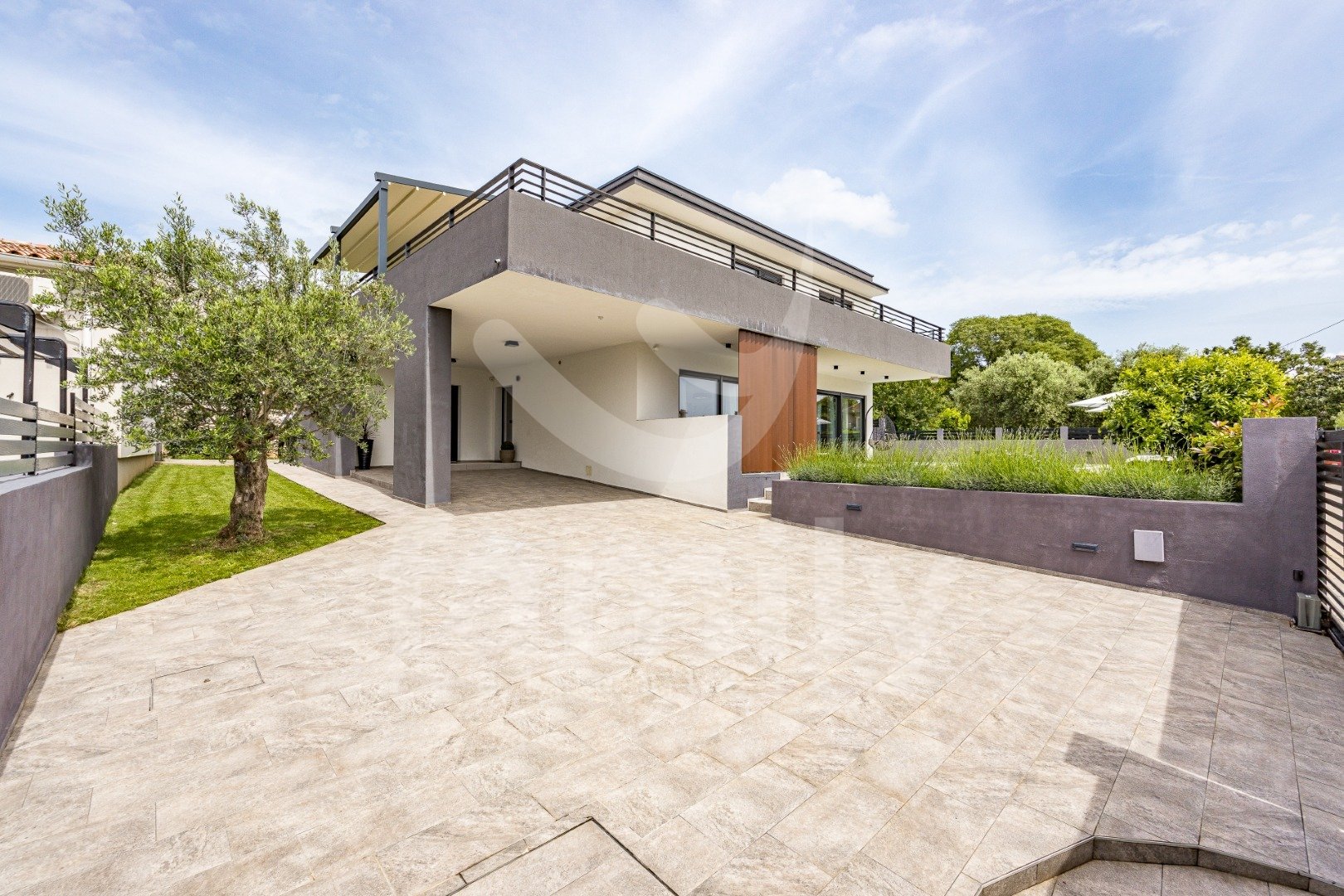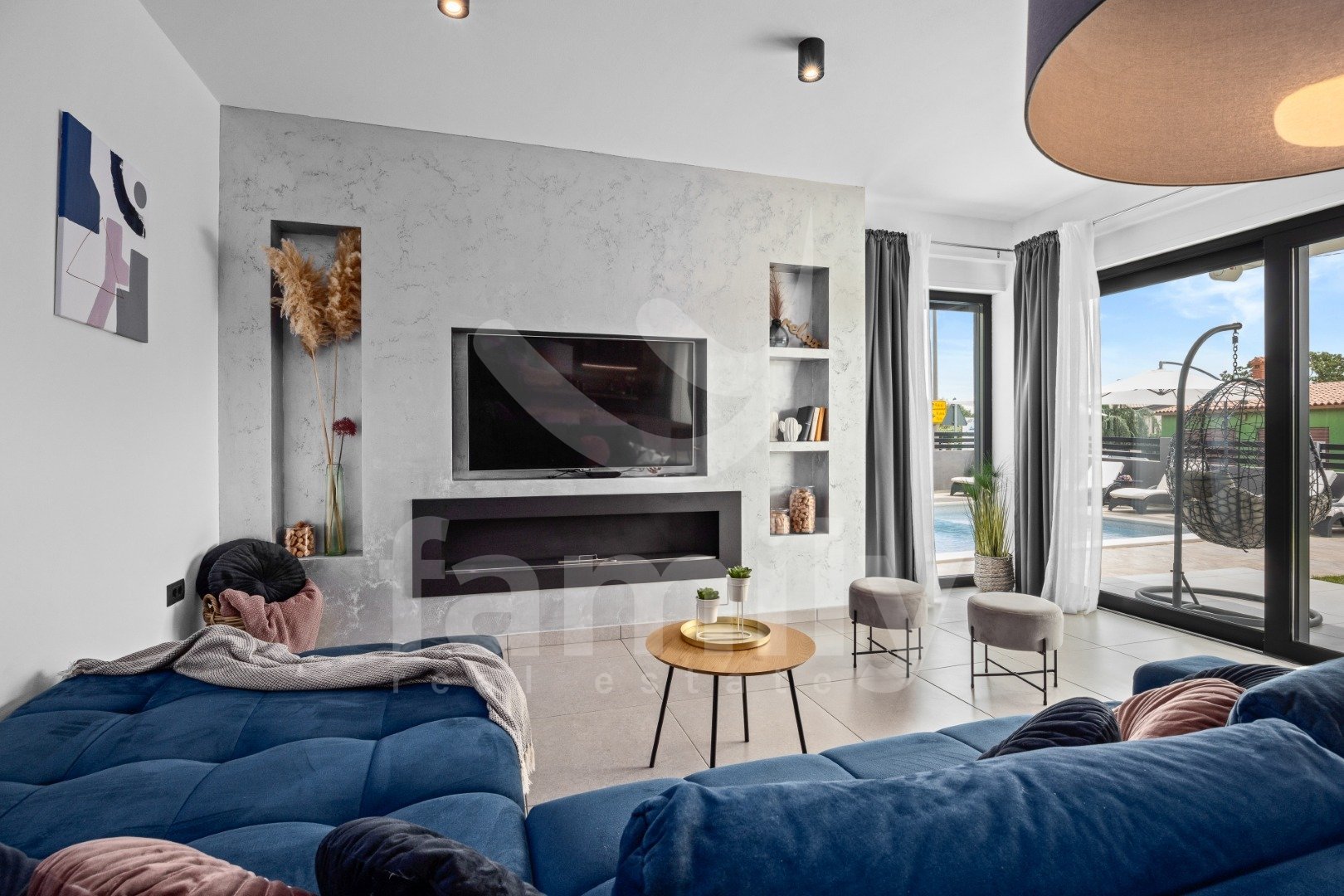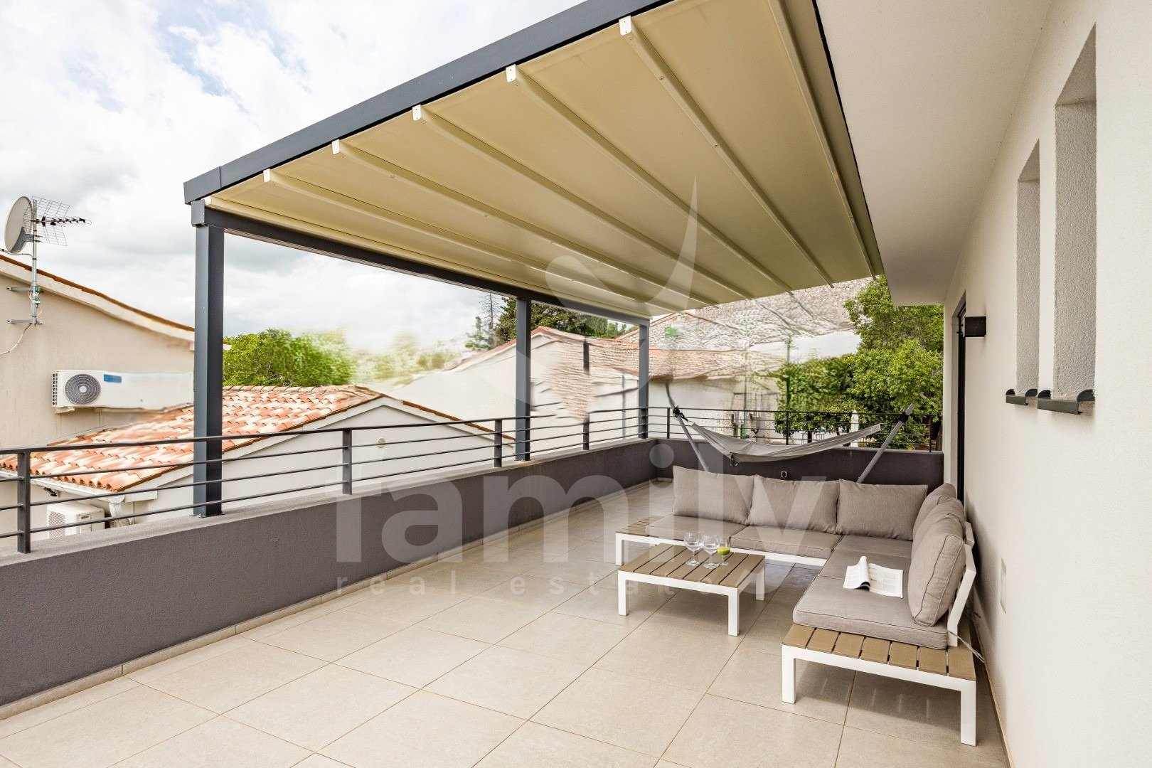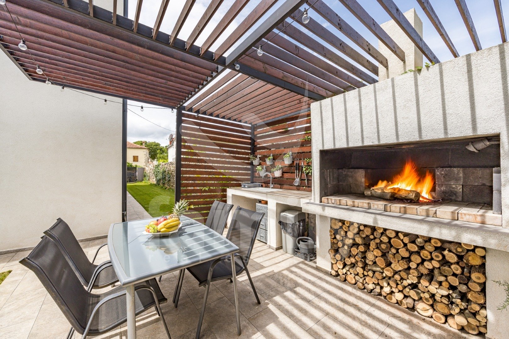 Vila s skupno bivalno površino 220 m2 se prodaja opremljena in opremljena z vsem, kar potrebujete za življenje ali za turizem. Vila je opremljena z modernim, lepim pohištvom s prostornimi sobami. Vhodni prostor je prostoren in vse sobe so povezane - jedilnica, dnevni prostor, ena spalnica in stranišče. Moderno stopnišče vodi v prvo nadstropje, ki je edino, ki nima vgrajenega talnega ogrevanja. V zgornjem nadstropju imamo tri prostorne spalnice z lastnimi kopalnicami in velikimi dnevnimi odprtinami z antracitno obarvanim aluminijastim pohištvom v vseh sobah. Vse sobe in kopalnice so lepo in dobro opremljene. Iz sob imamo dostop do zelo velike terase s skupno površino 80 m2, s katere lahko uživamo v čudovitem razgledu, medtem ko se sproščamo in počivamo. Terase so zelo lepe in v celoti prekrite z moderno keramiko. Celotna hiša je prekrita s keramiko, v sobah in kopalnicah pa je talno ogrevanje. Vse je odprtega tipa, bodisi v prvem nadstropju bodisi v pritličju, z velikimi drsnimi PVC vrati, ki vodijo na teraso, kjer imate na voljo tudi ločene prostore za sprostitev, del z žarom ob nepremičnini, pa tudi del, kjer je pokrit prostor za sprostitev in prostor za prehranjevanje. Celotno spodnje nadstropje je povezano z vhodnim prostorom, zunanjim prostorom in parkiriščem, kjer imamo ob prihodu v hišo 3 parkirna mesta.