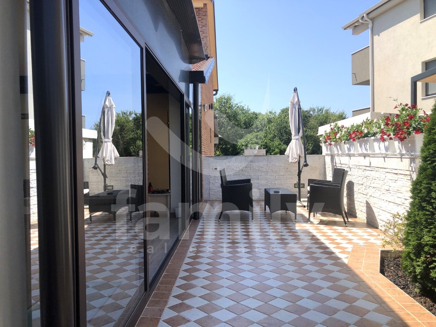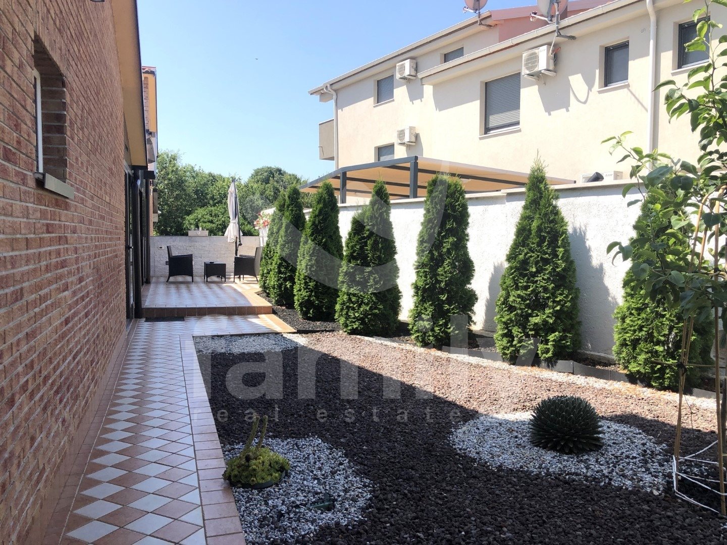 Takoj v Pomerju, nedaleč od plaže, se nahaja moderna visokokakovostna vila velikosti 500 m2 in lepo urejenim vrtom velikosti 200 m2. Nepremičnina se razprostira na dveh nadstropjih. V pritličju se nahaja pokrita konoba velikosti 45 m2 s prostornim prostorom za sedenje, kakovostnim kaminom in opremljeno kuhinjo s plinskim štedilnikom. Večina materialov, uporabljenih za dekoracijo konobe kot dvorišča, je bil kamen. V pritličju se nahaja odprta kuhinja z vsemi kuhinjskimi aparati, velika dnevna soba z ročno izdelanim kamnitim kaminom, tri prostorne spalnice in prostorna kopalnica s skupno površino 180 m2.