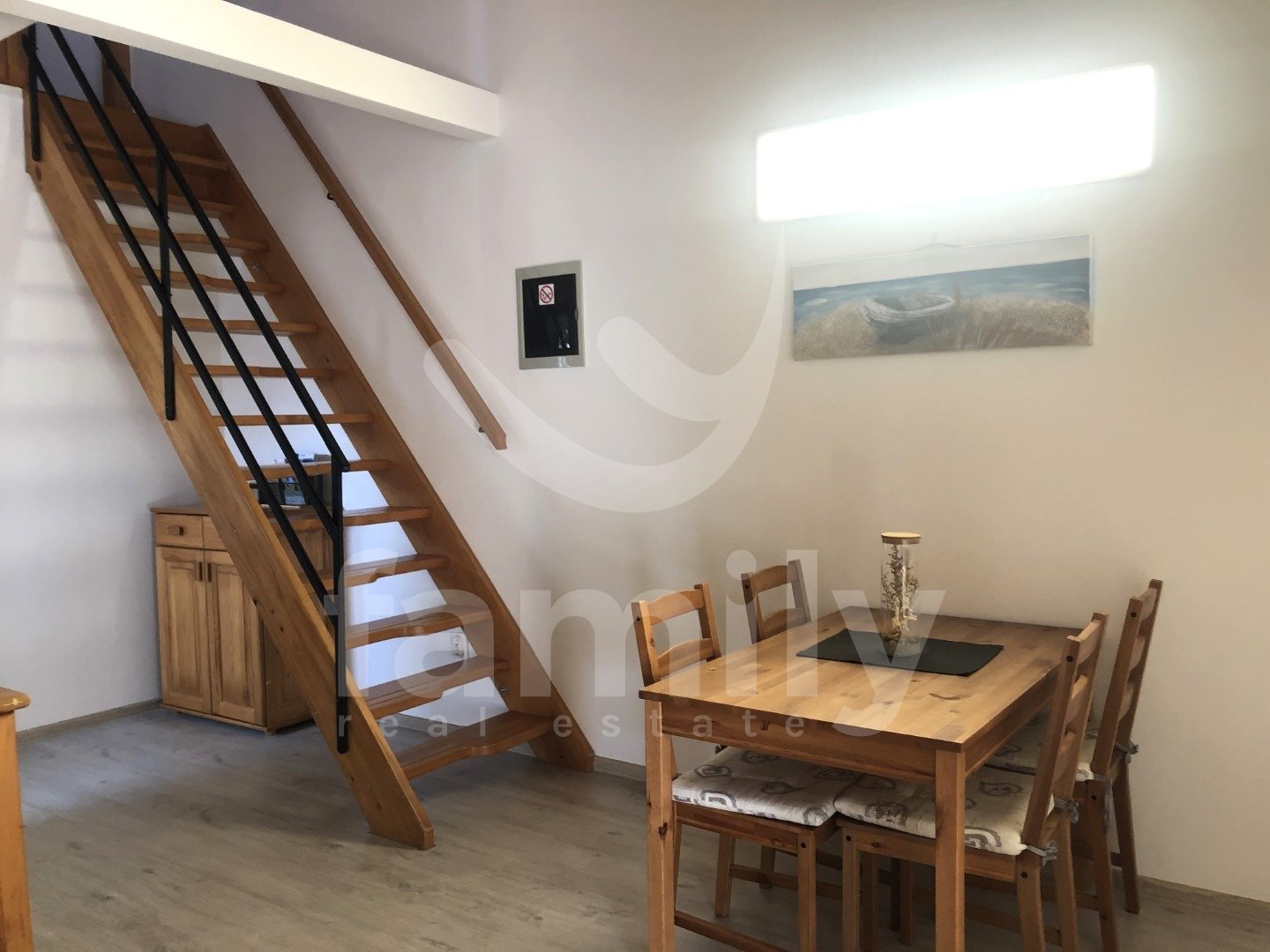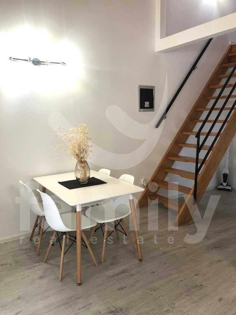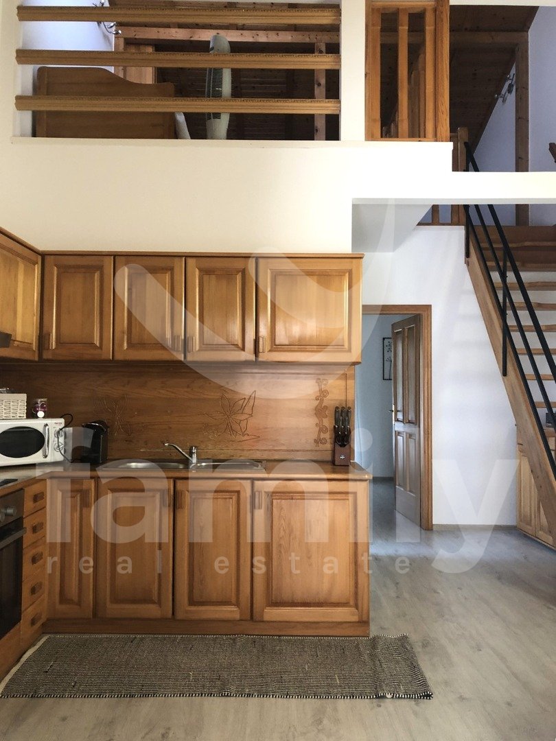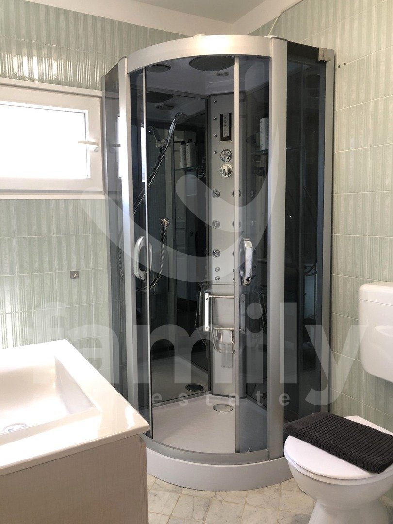 Prvo nadstropje nepremičnine sestavlja pokrita jedilnica, tla in pločniki ter stopnice so obloženi s kamnom. Osrednji del hiše, velike 100 m2, je opremljen z veliko sedežno garnituro, televizorjem in biljardno mizo. Na levi in desni strani osrednjega dela je vhod v apartmaje v prvem nadstropju. Dva od štirih apartmajev sta bila prenovljena in moderno opremljena z novimi kuhinjskimi aparati z indukcijsko kuhalno ploščo ter sta sestavljena iz dnevne sobe, spalnic in nove kopalnice. Celotna stavba je opremljena s klimatskimi napravami v vseh sobah. Vsak apartma ima v bivalnem in spalnem prostoru visokokakovostne laminatne talne obloge, kopalnice so opremljene s ploščicami in imajo dostop do kamnitih teras, ki pripadajo apartmaju. Vila se nahaja na zelo prijetni in dobro osvetljeni parceli, kar pomeni, da so tudi njeni prostori dovolj osvetljeni. Je bogata z vsebino in v celoti visokokakovostnim dizajnom. Pred nepremičnino so tri pokrita parkirna mesta, za njo pa dve parkirni mesti na samem dvorišču. Nepremičnina je opremljena z pohištvom, video nadzorom, Wifi napravami in priključkom za kanalizacijo.