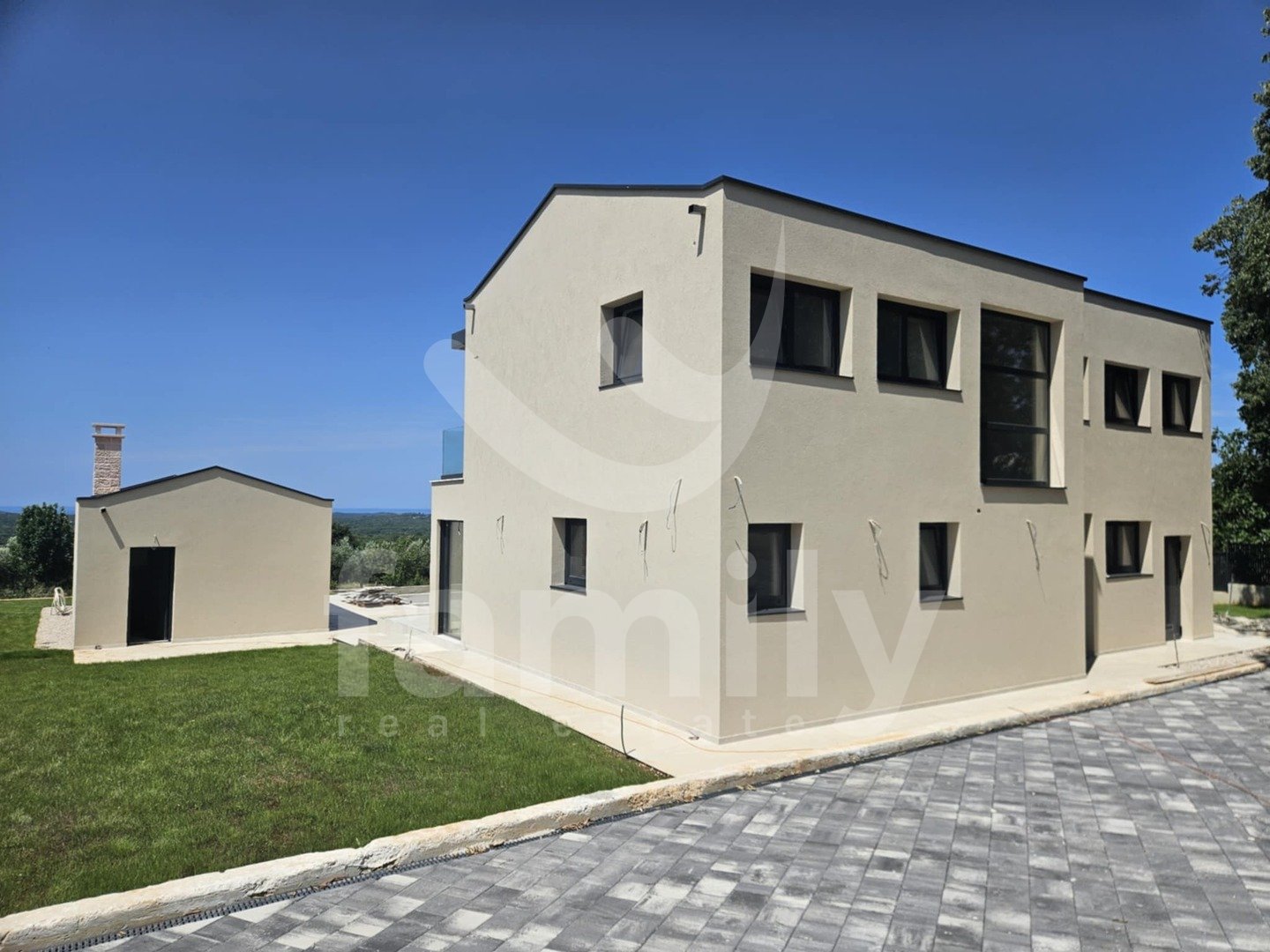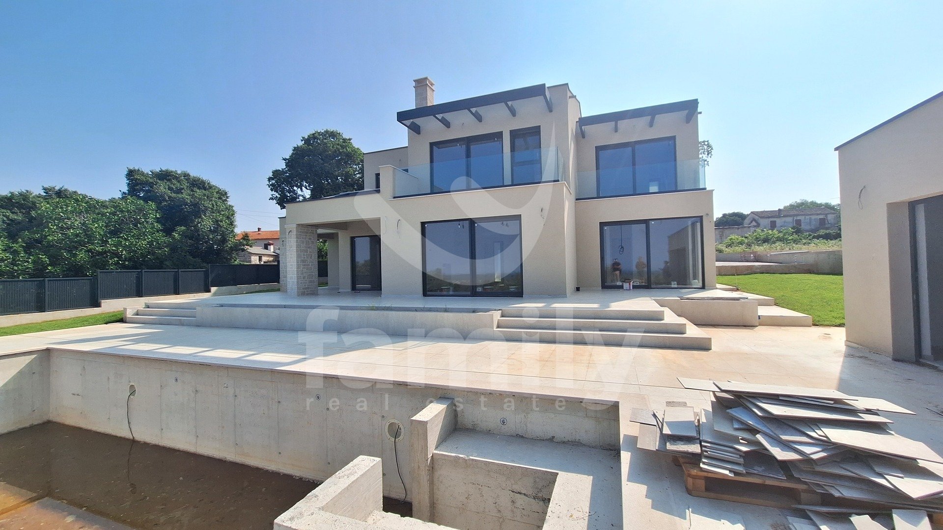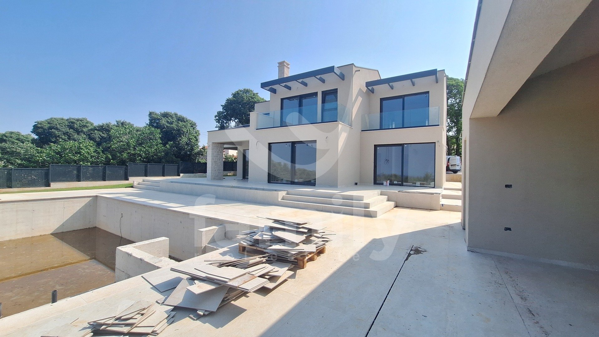 Nedaleč od mesta Poreč se prodaja impozantna vila s pogledom na naravo in morje. Nahaja se v očarljivem naselju s panoramskim razgledom na morje, Alpe in okolico, obdana z zelenjem, vinogradi, oljčnimi nasadi, družinskimi hišami in počitniškimi hišami, zgrajena pa je bila po najvišjih standardih stanovanjske gradnje. Privlačna zunanjost nepremičnine je popolnoma vključena v okoliško pokrajino, hkrati pa so zasnovane enako harmonično notranjost in harmonično načrtovani prostori. Veliko število steklenih sten zagotavlja maksimalno prodiranje zunanje svetlobe, kar poudarja prostor in hkrati povezuje notranjost z zunanjostjo. Vila je zasnovana kot ena stanovanjska enota, ki se razteza čez dve nadstropji.
