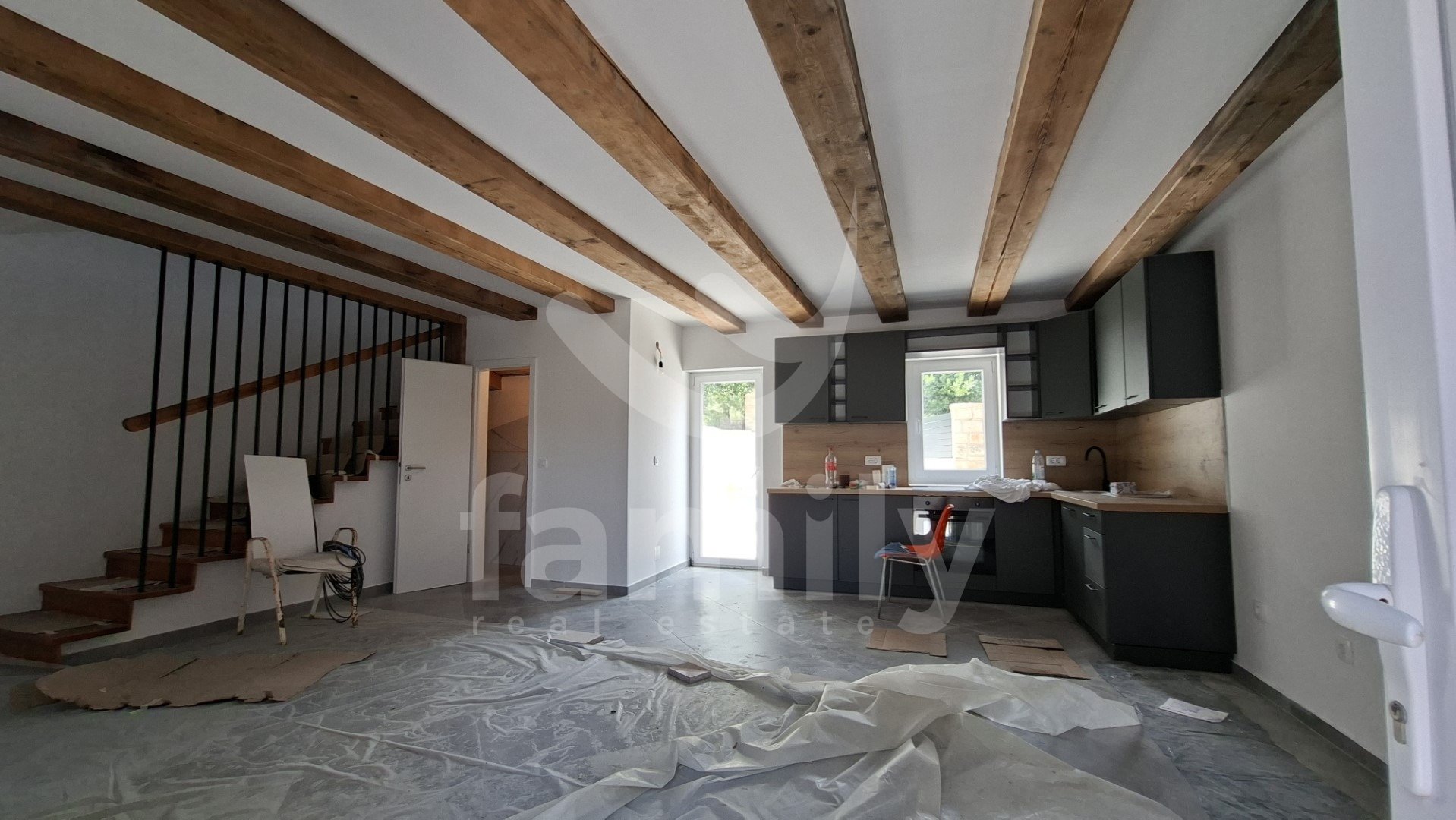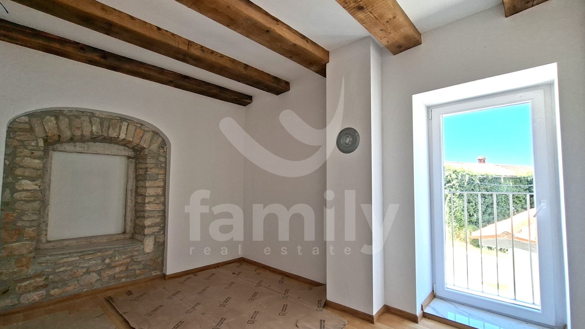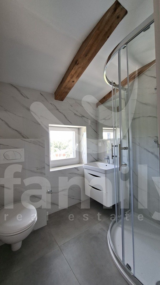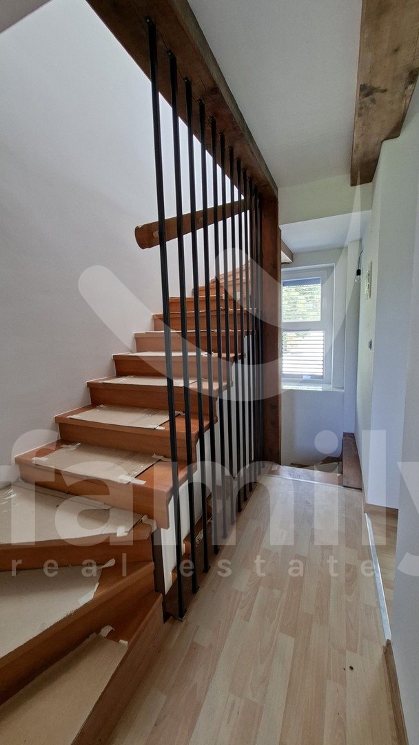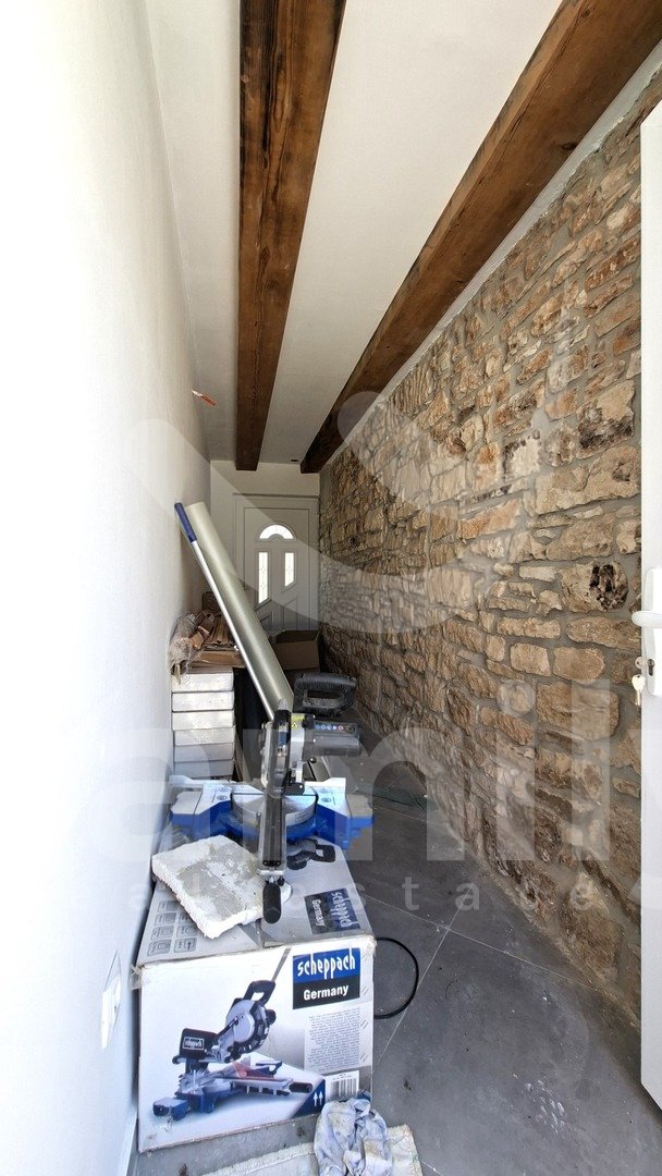 V tem čudovitem in slikovitem okolju v majhni vasi se nahaja ta čudovita novozgrajena kamnita hiša, ki se razprostira čez tri nadstropja, s skupno površino 140 m2. Sestavljena je iz pritličja in dveh nadstropij. Pritličje hiše sestavljajo stranišče, dnevna soba s kuhinjo v odprtem konceptu z dostopom do prostorne terase velikosti približno 130 m2 z udobno jedilno mizo, bazenom in prostorom za sončenje. Tla so prekrita z laminatom. Lepo izdelane lesene stopnice vodijo v prvo nadstropje, ki ga sestavljajo tri spalnice in kopalnica. Iz prvega nadstropja vodijo lesene stopnice tudi v drugo nadstropje, ki ga sestavljajo tri spalnice in kopalnica. Celotna nepremičnina ima PVC stavbno pohištvo in aluminijasta polkna. V spalnicah je nameščen laminat, preostali del hiše pa ima kakovostno keramiko. Na parceli se nahaja pomožni objekt, ki ga sestavljajo dnevna soba s kuhinjo, ena spalnica in kopalnica. Pred hišo je prostor za tri parkirna mesta.