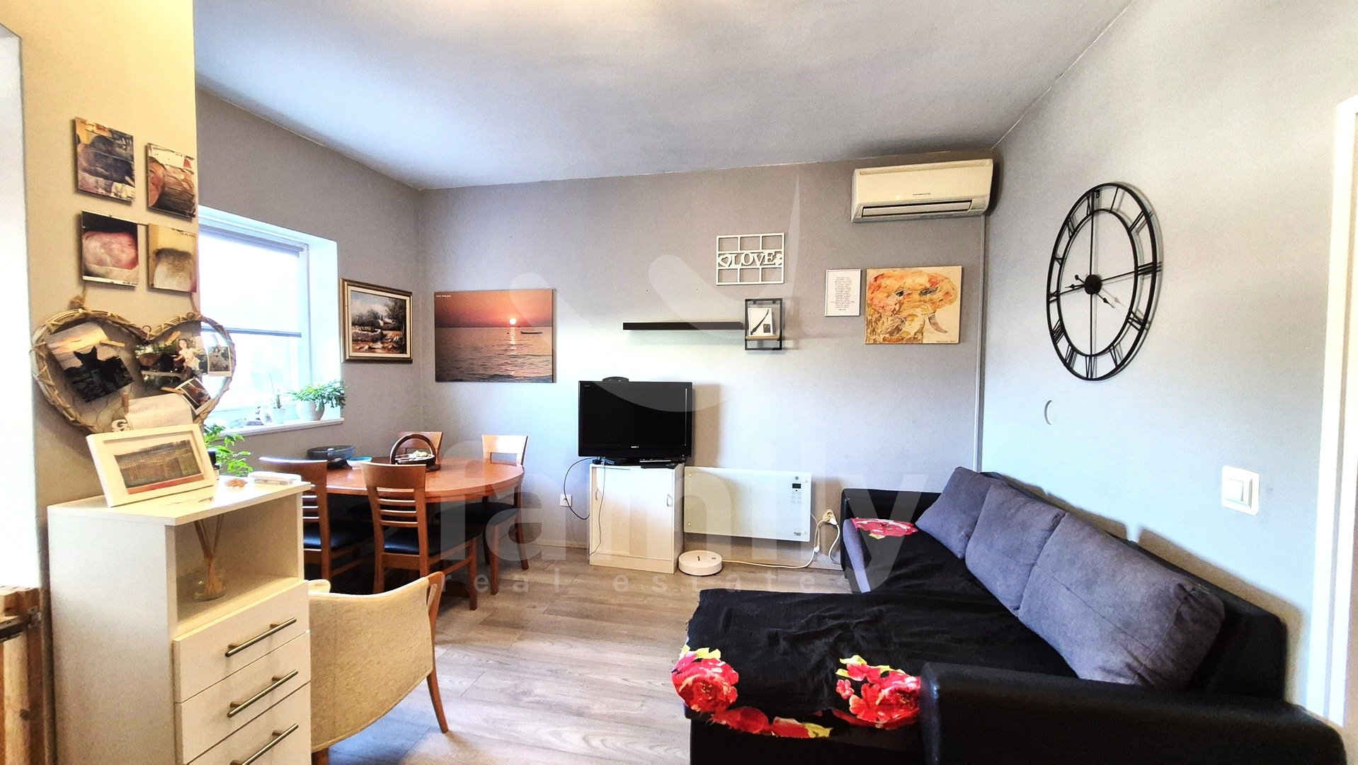 Prav v naselju Peroj se nahaja apartma s pogledom na morje in del Brionskega otočja. Apartma se nahaja v stanovanjski stavbi v prvem nadstropju in ima površino 42 m2. Sestavljen je iz hodnika, kopalnice s tušem, kuhinje, ki je povezana z dnevno sobo in je odprtega tipa. Dnevna soba je sončna in povezana z ložo, ki so jo lastniki zaprli v belo PVC mizarsko pohištvo. Apartma je zelo svetel in zračen. Spalnica ima laminatna tla z dostopom do majhne očarljive terase s pogledom na morje in zelenje. Del stavbnega pohištva v stanovanju je bil zamenjan z belim PVC stavbnim pohištvom z dvojno zasteklitvijo, del pa je lesen. Nepremičnina ima varnostna vhodna vrata. Stanovanje je glede na velikost dobro in premišljeno opremljeno. V stavbi je na voljo brezplačno parkiranje.