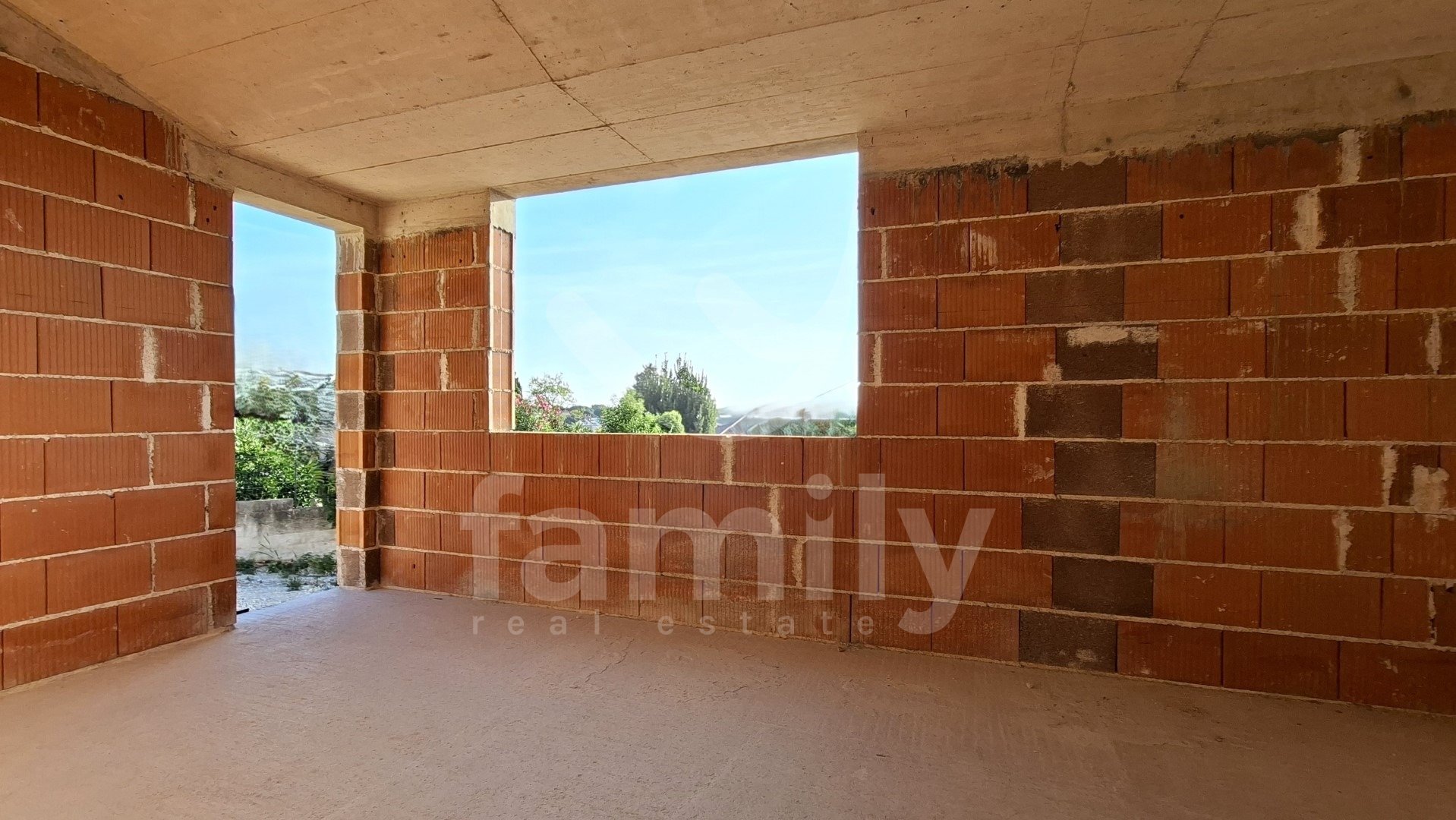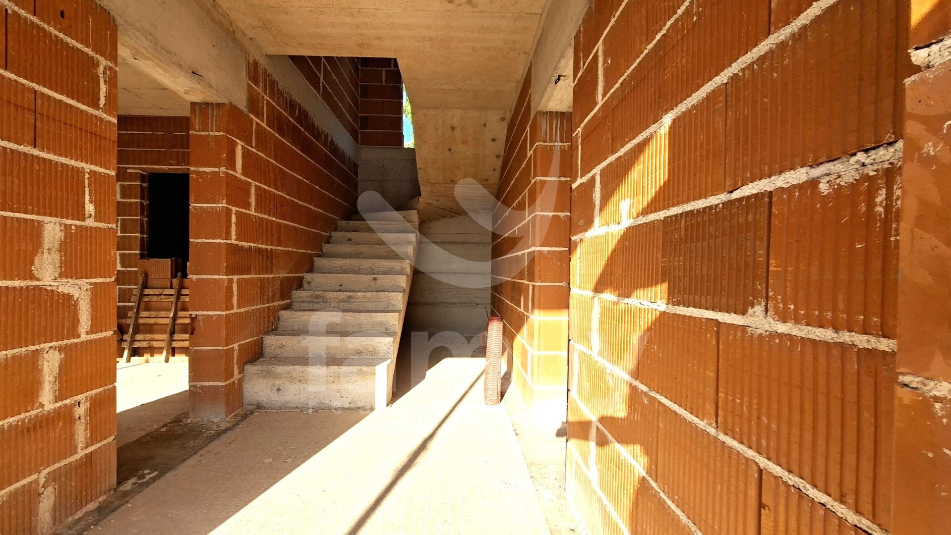 Notranje stopnice vodijo v vhodno dvorano, 2 spalnici, 2 kopalnici in pokrito teraso z delnim pogledom na morje. Komunalne storitve za hišo in priključek na kanalizacijo so plačani, elektrika in voda pa sta pred parcelo. Projekt vključuje tudi 22 m2 velik bazen in 5 parkirnih mest.