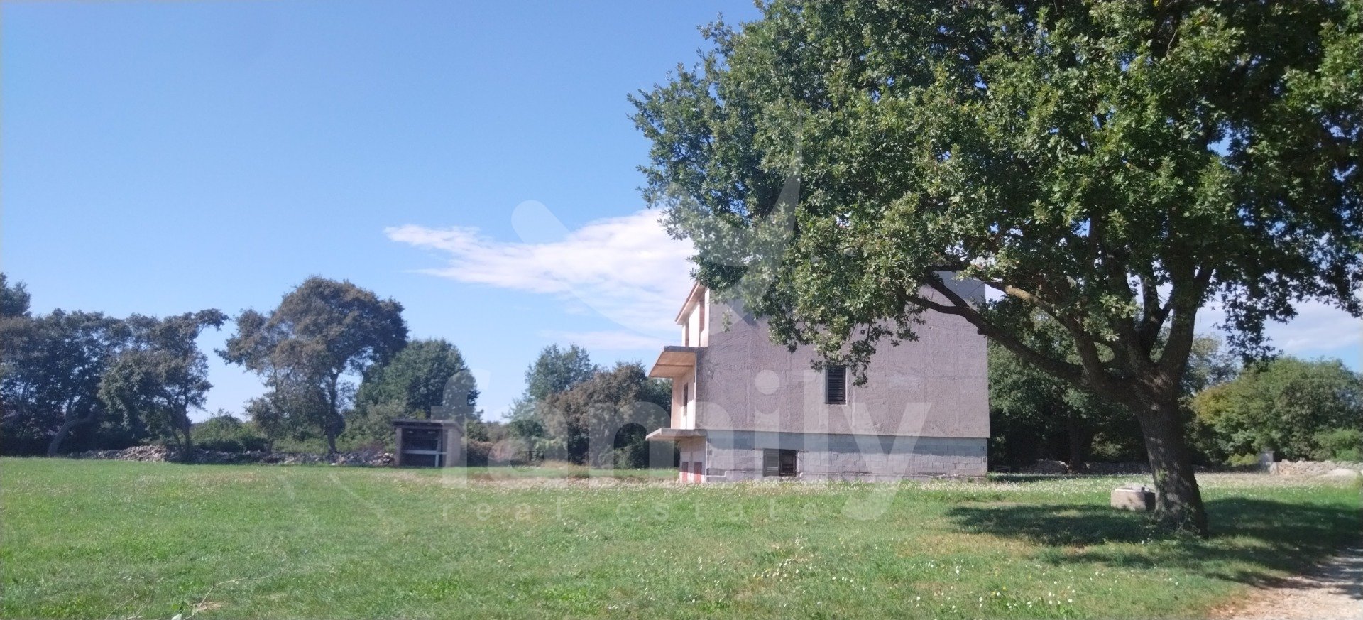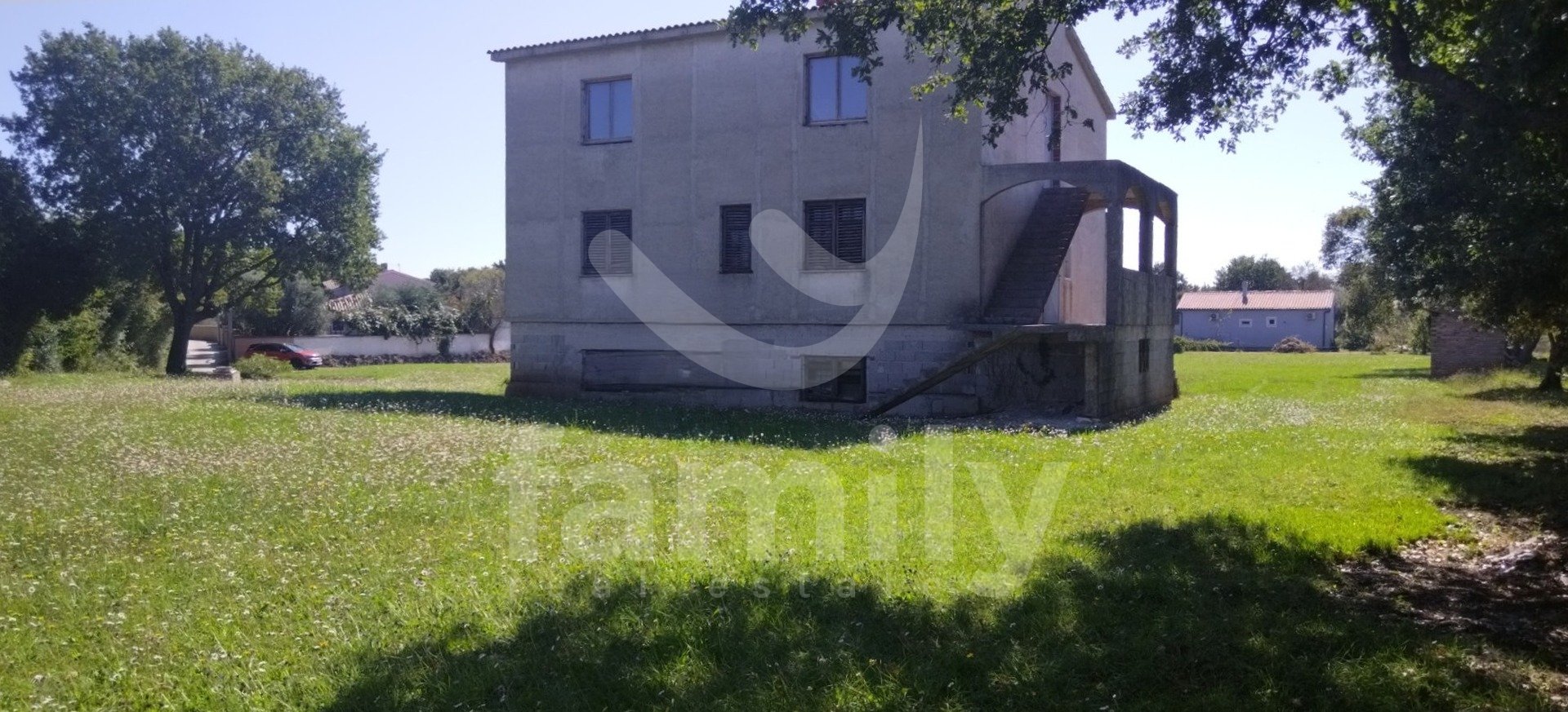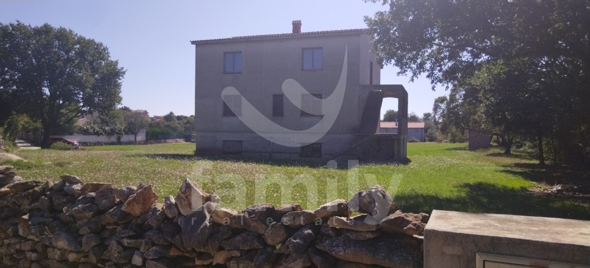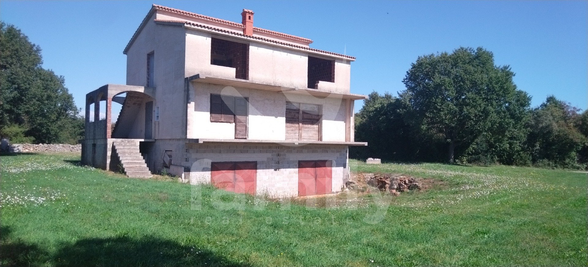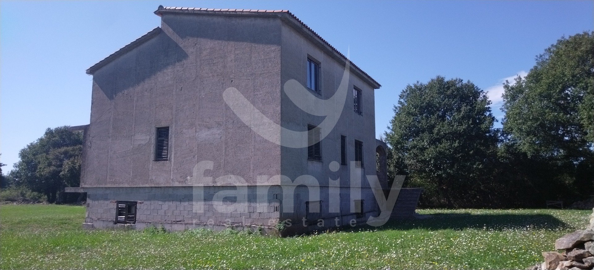 Naprodaj je ta izjemna nepremičnina z velikim potencialom, ki se nahaja v mirnem in zelenem okolju. Ta prostorna hiša je v nedokončani fazi s 360 m2 bivalne površine, razporejene v treh nadstropjih. Hiša ponuja nešteto možnosti za dekoracijo, izbiro zaključnih materialov, razporeditev prostorov in celotno notranjo opremo, s čimer ustvarja prostor, ki v celoti ustreza vašim potrebam in željam. Prostorna družinska hiša, vila, počitniška hiša z več apartmaji ali kombinacija stanovanjskega in poslovnega prostora. Hiša se nahaja na prostorni parceli velikosti 1210 m2, ki zagotavlja popolno zasebnost in dovolj prostora za izgradnjo bazena, vrta, otroškega igrišča in zavarovanje več parkirnih mest. Dostop je zagotovljen neposredno z javne ceste, priključki za elektriko in vodo pa se že nahajajo ob parceli, kar bistveno olajša in pospeši nadaljevanje gradnje. Hiša je delno obdana s suhozidom.